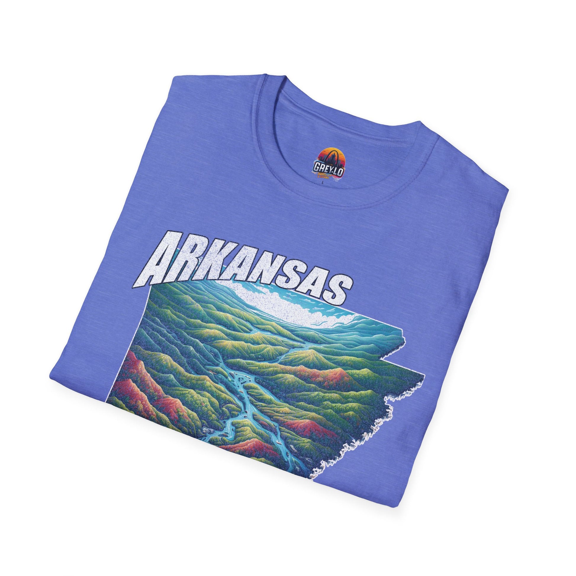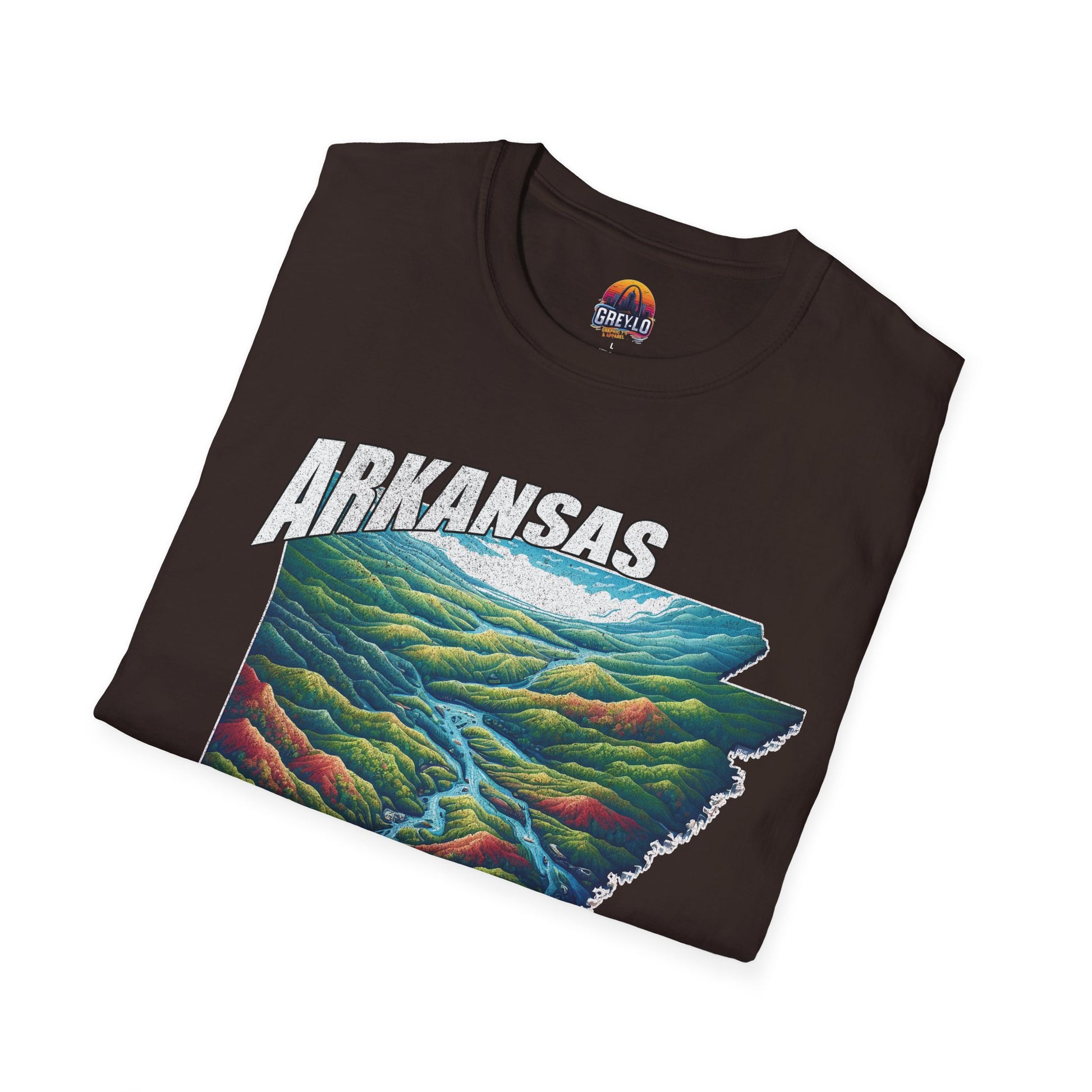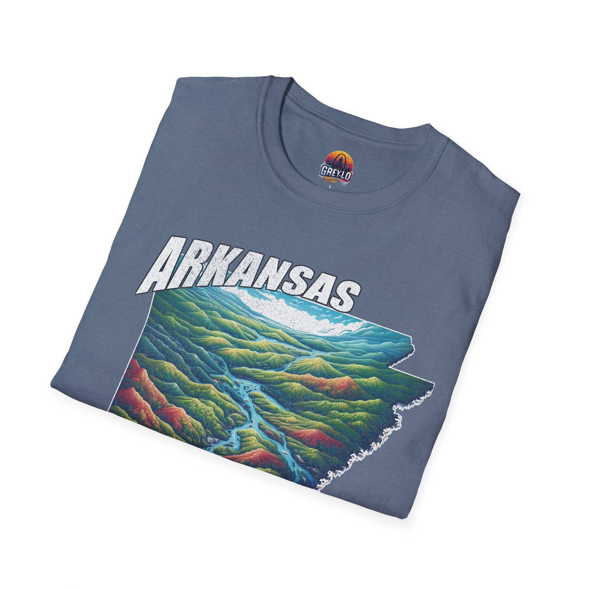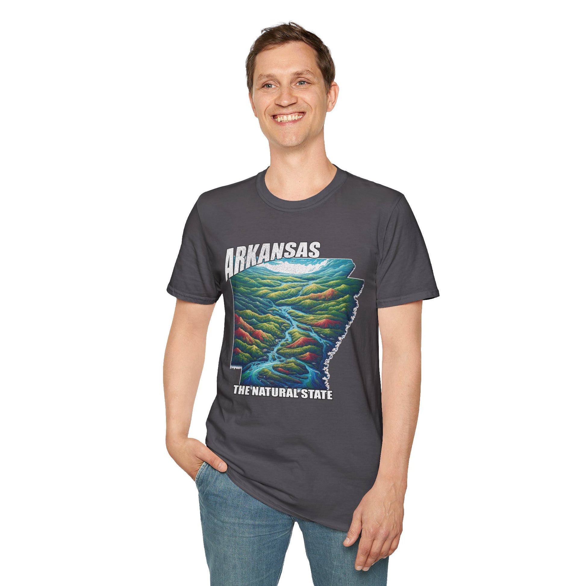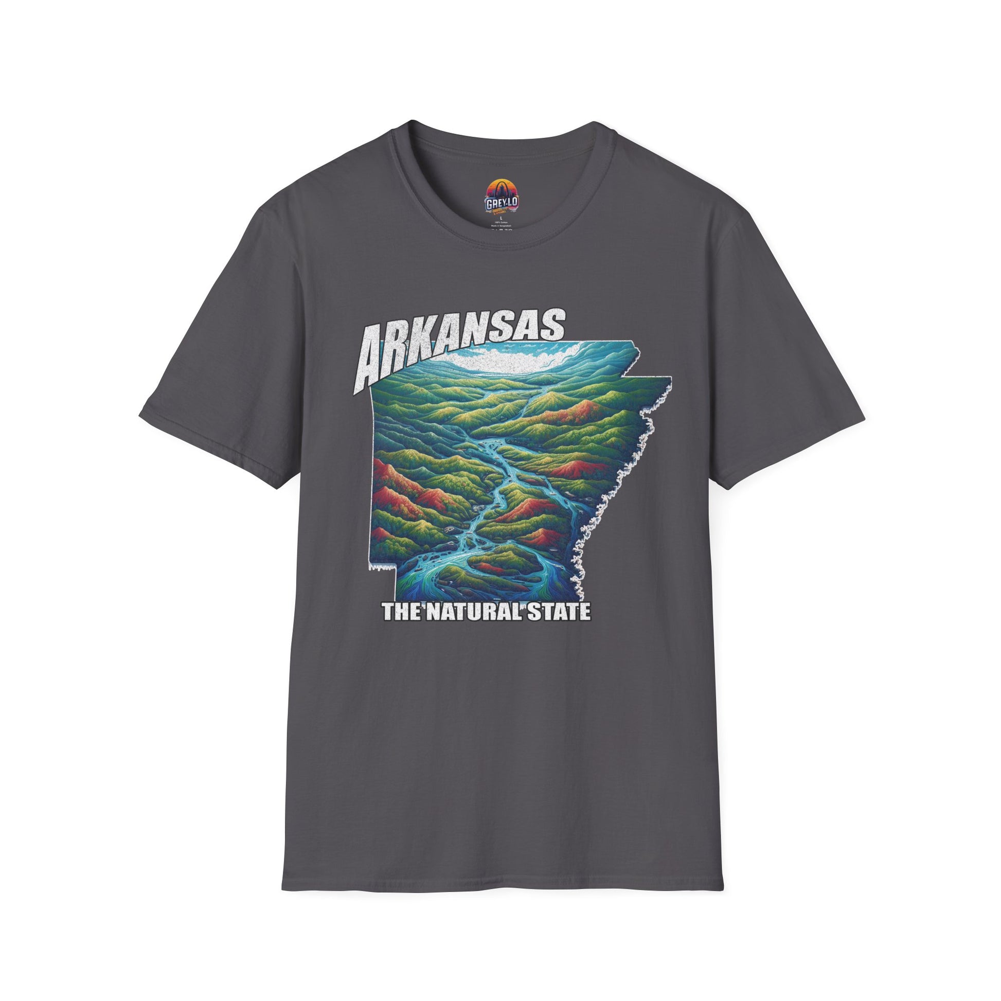 The Arkansas Natural State Graphic Tee is offered on a Gildan 64000 T-Shirt where Comfort Meets Style
