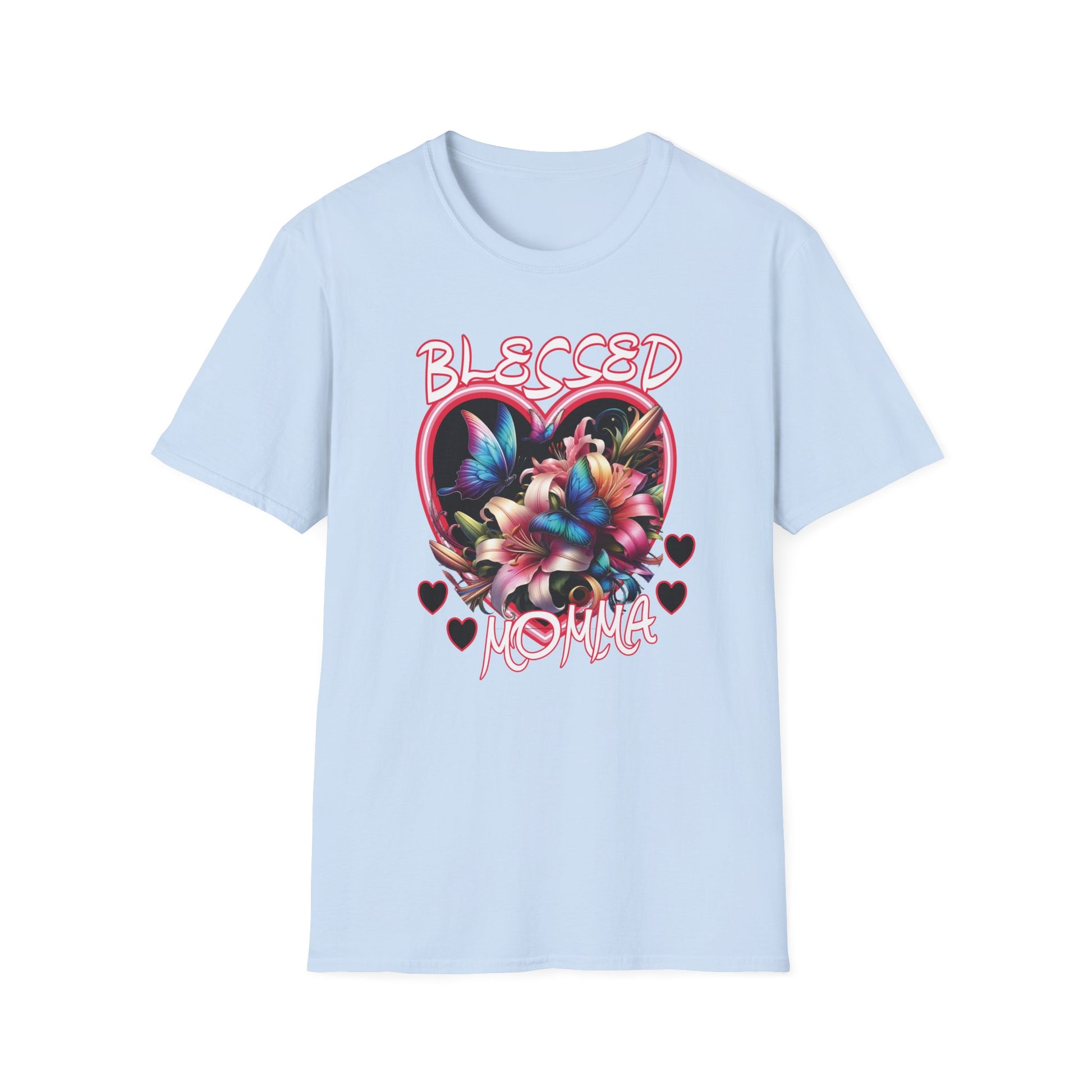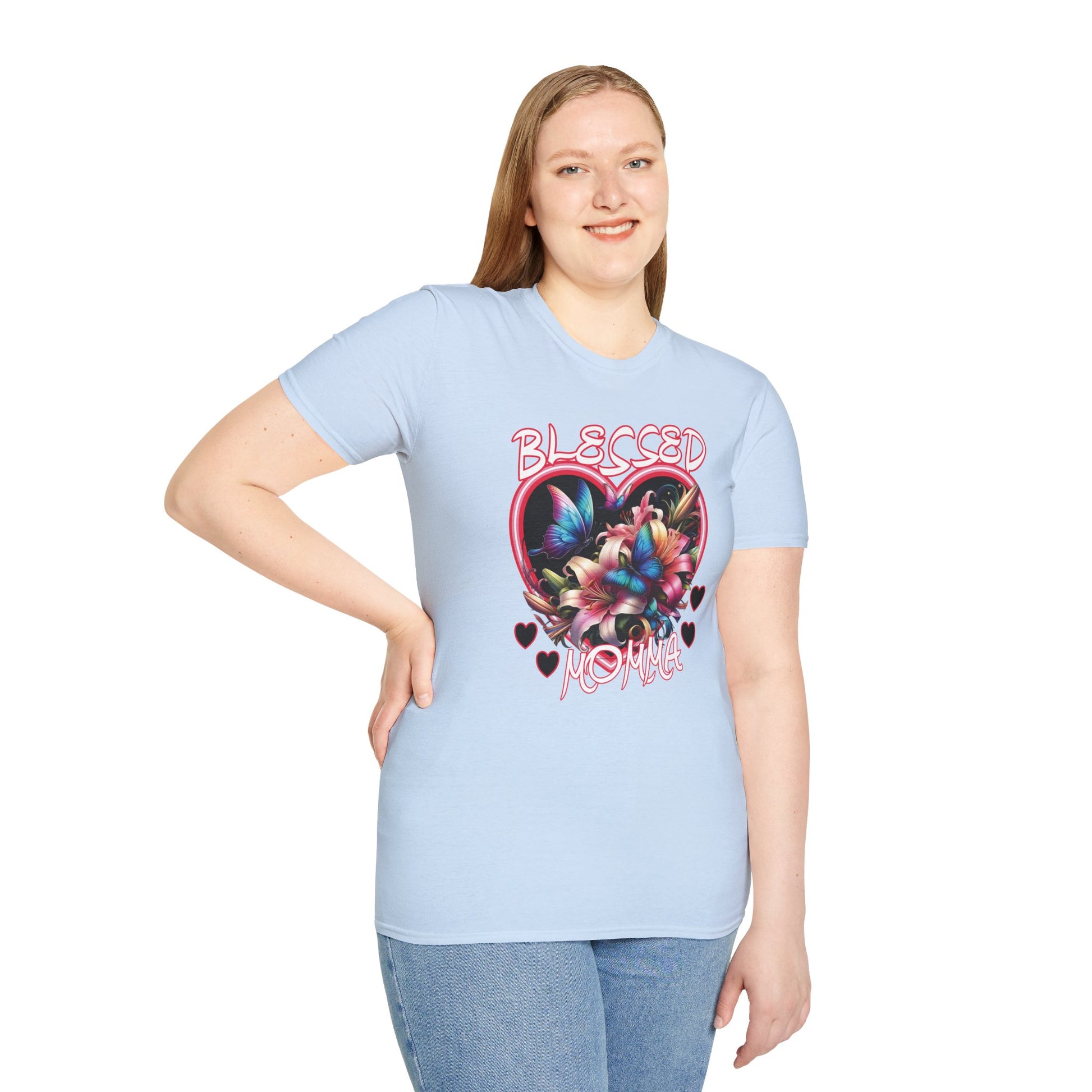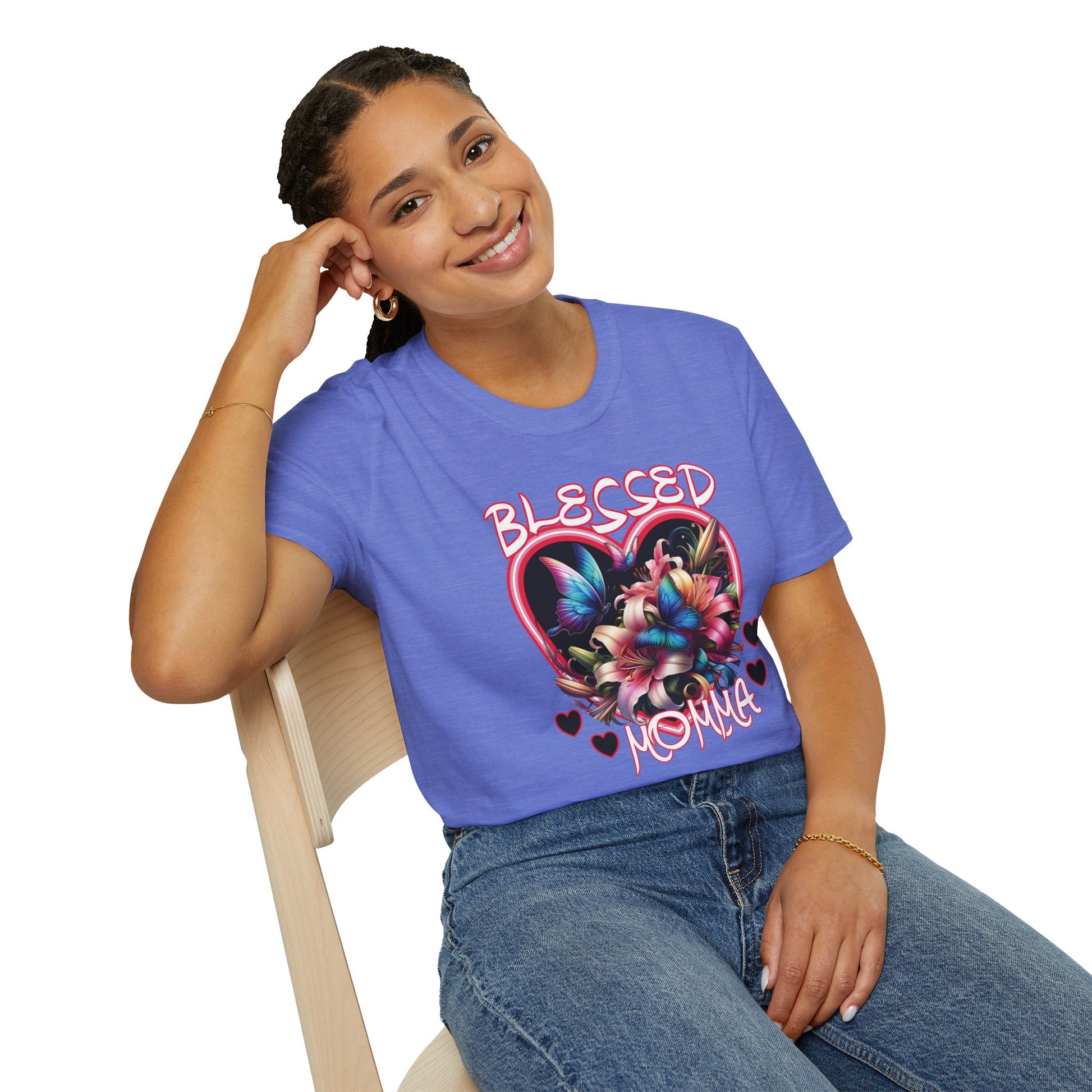 The Blessed Momma Unisex Soft style Tee is offered on a Gildan 64000 T-Shirt where Comfort Meets Style