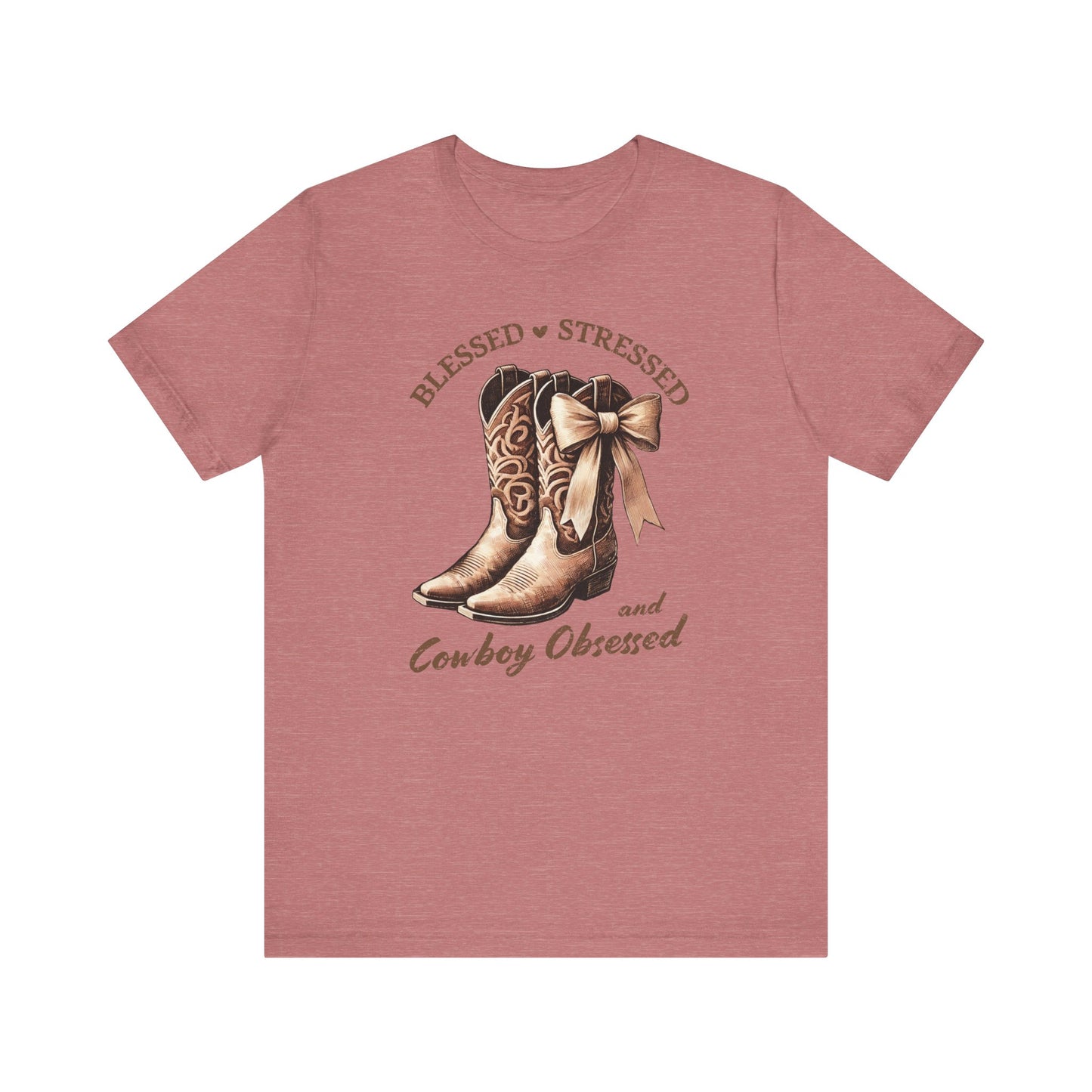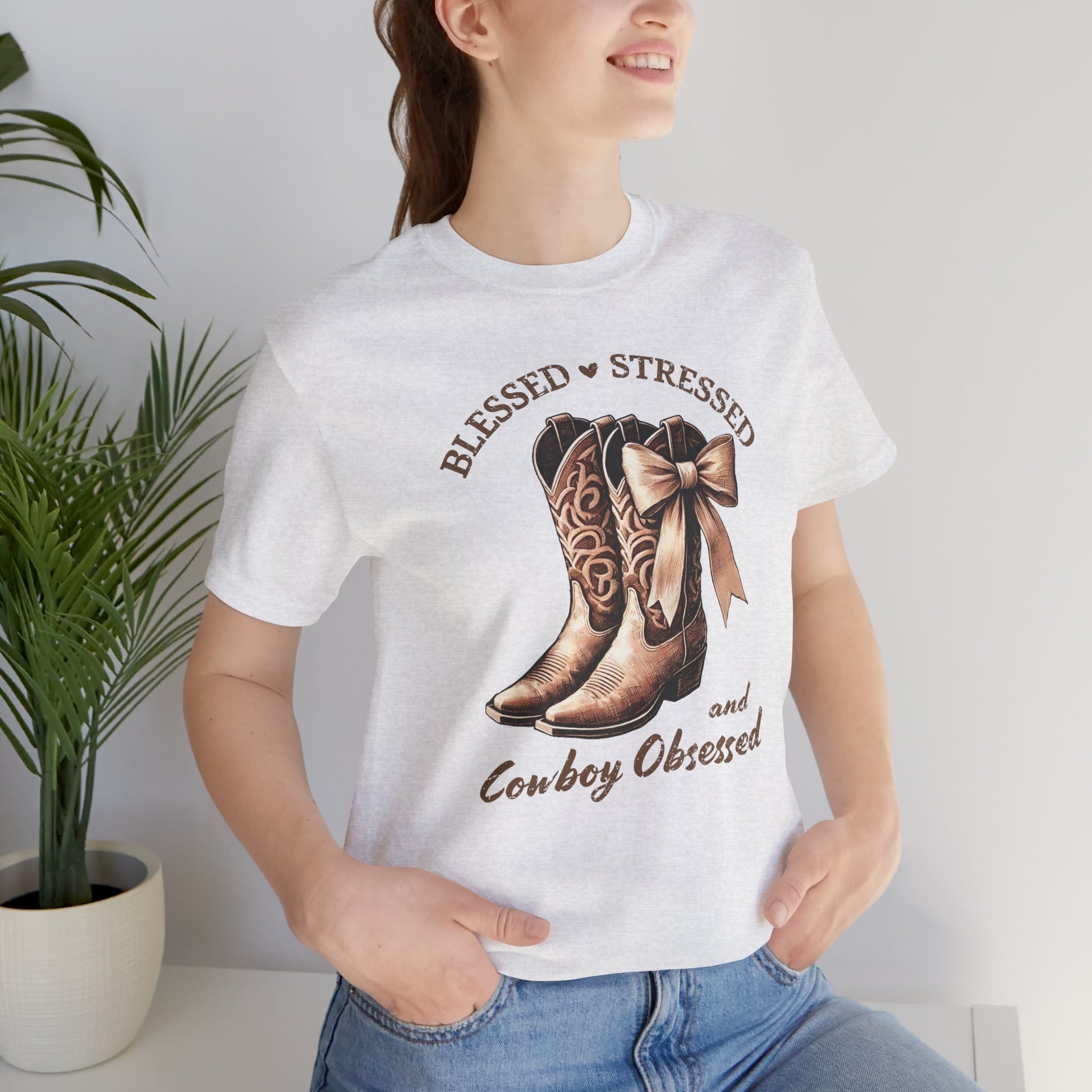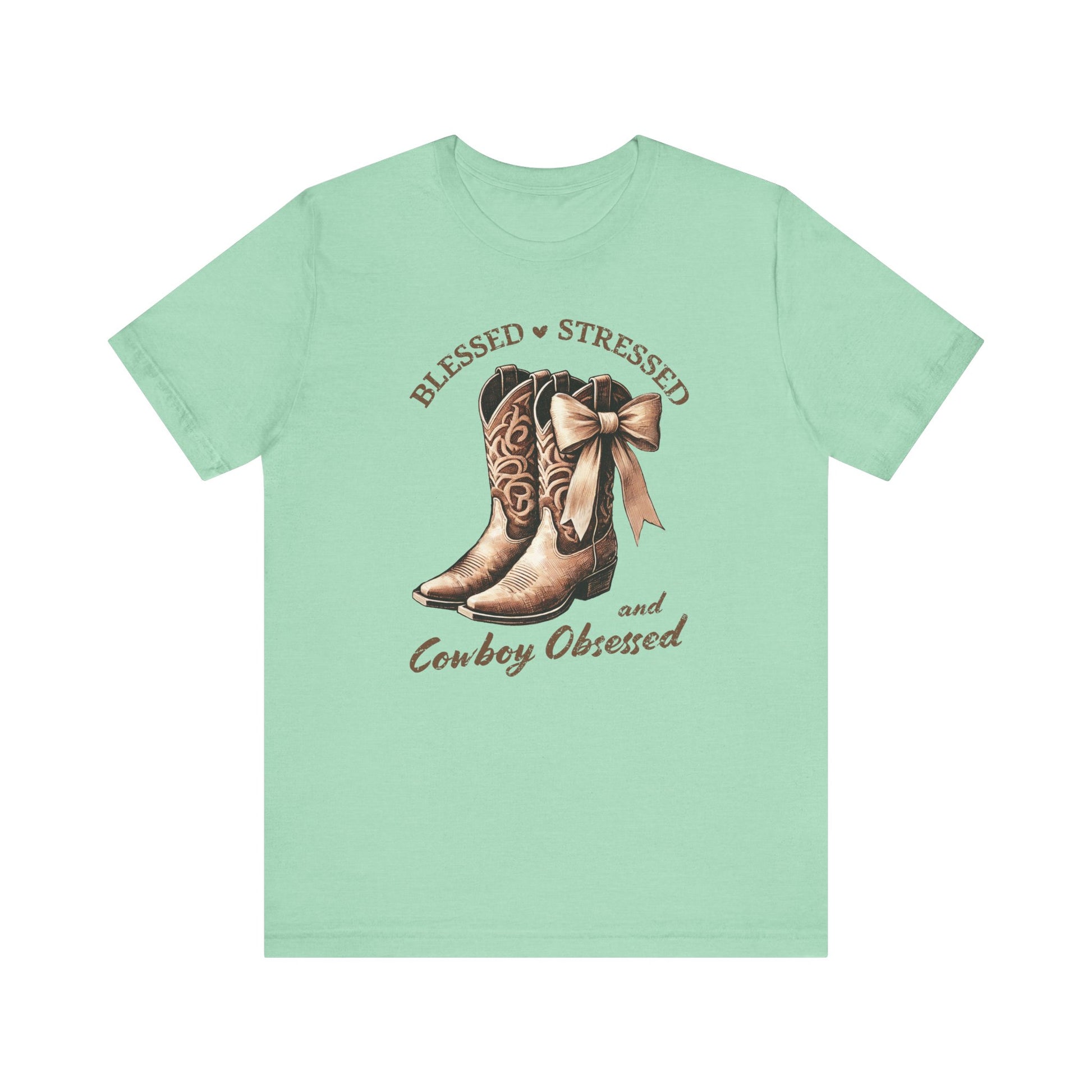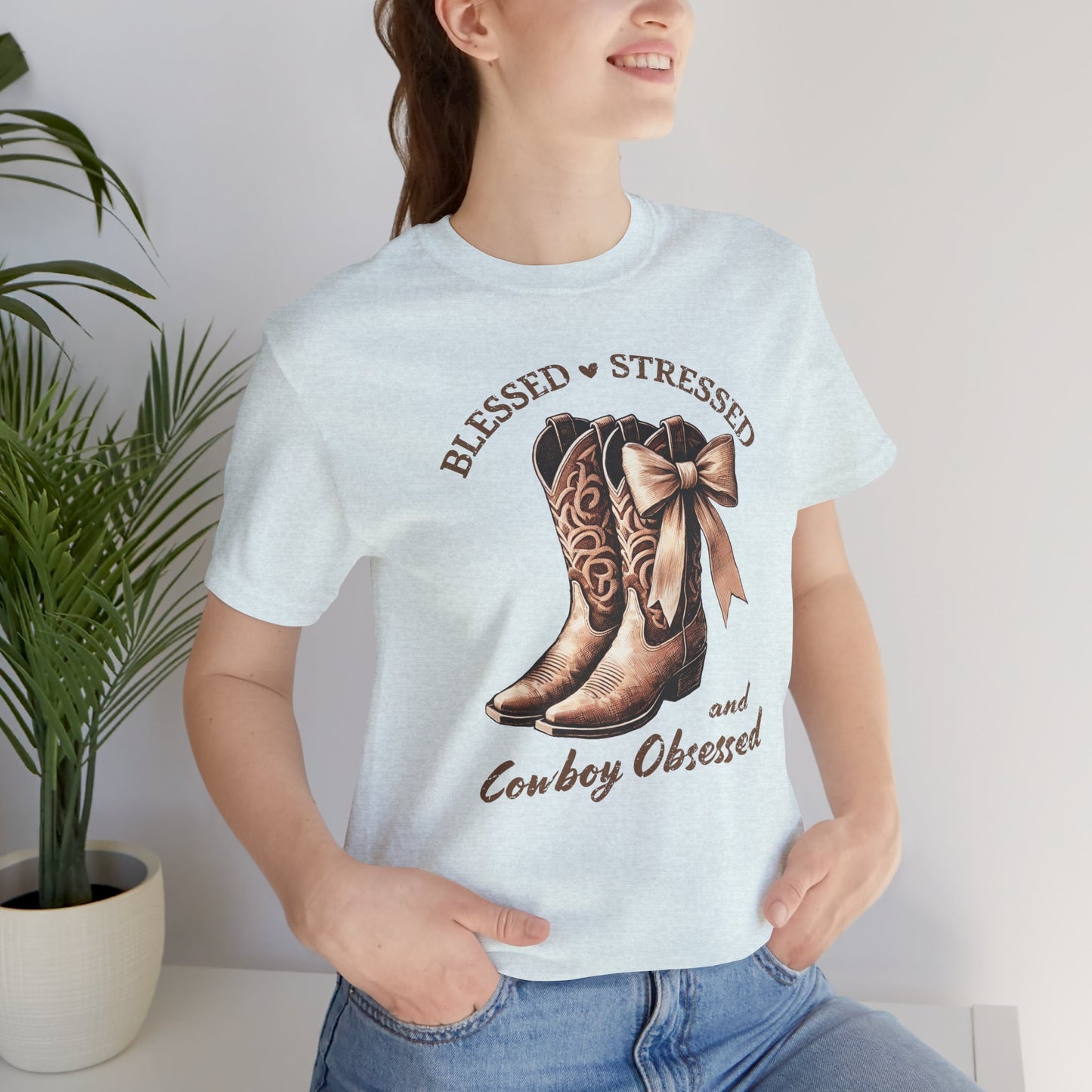 The Blessed Stressed & Cowboy Obsessed Tee is offered on the Unisex Bella Canvas 3001. Bella Canvas T-Shirts are Premium, Versatile and. known for its superior quality and flattering fit, this unisex T-shirt is the go-to choice for fashion-forward individuals.