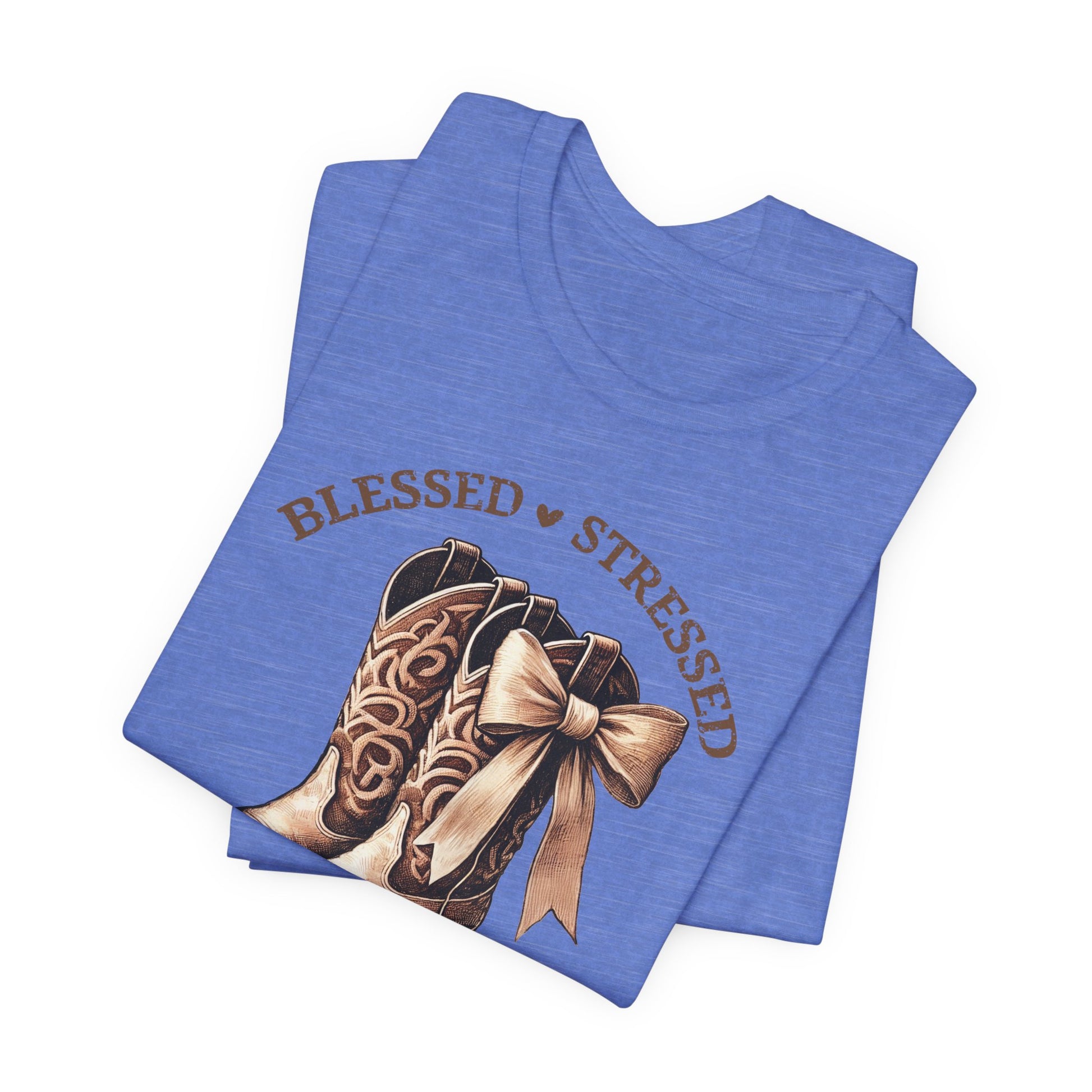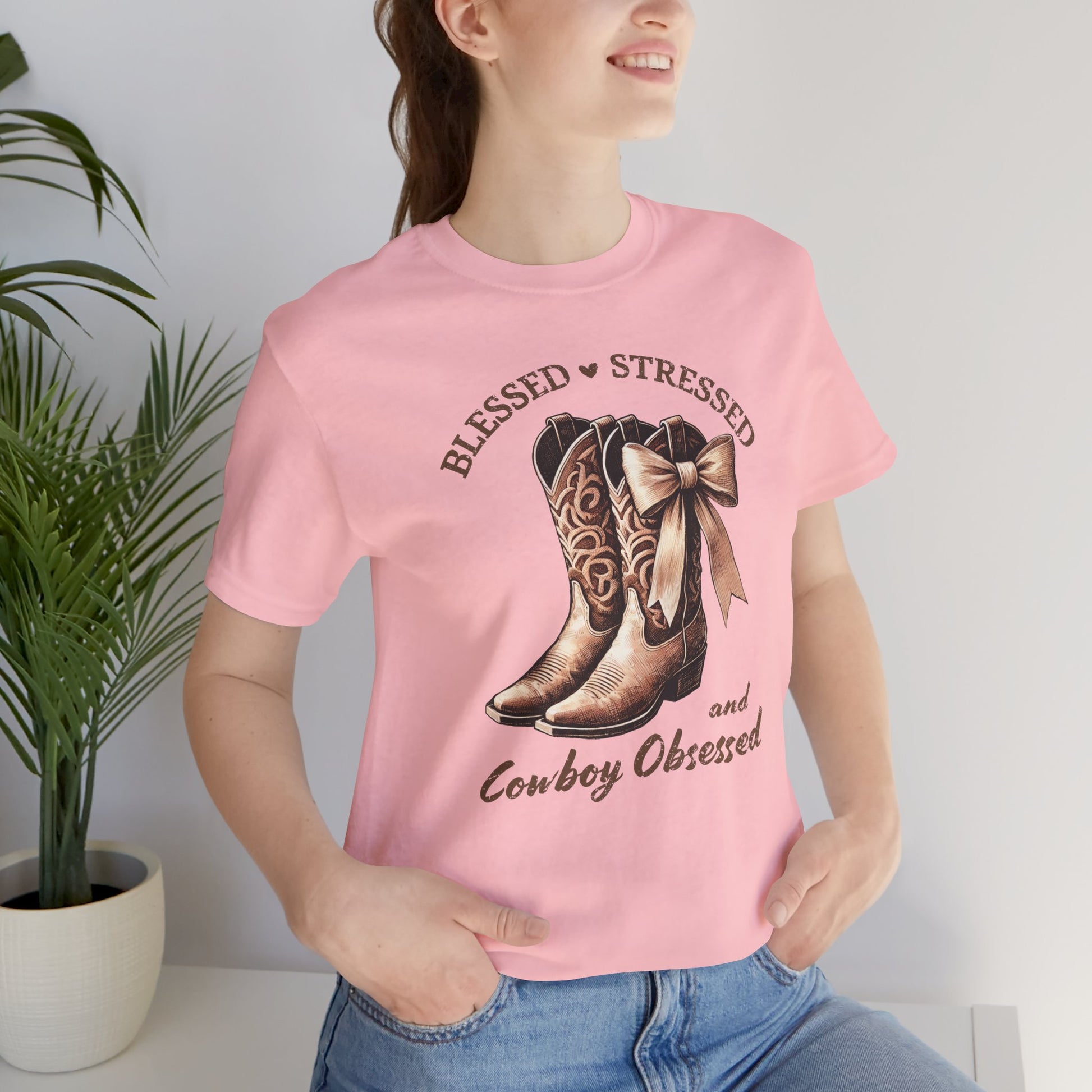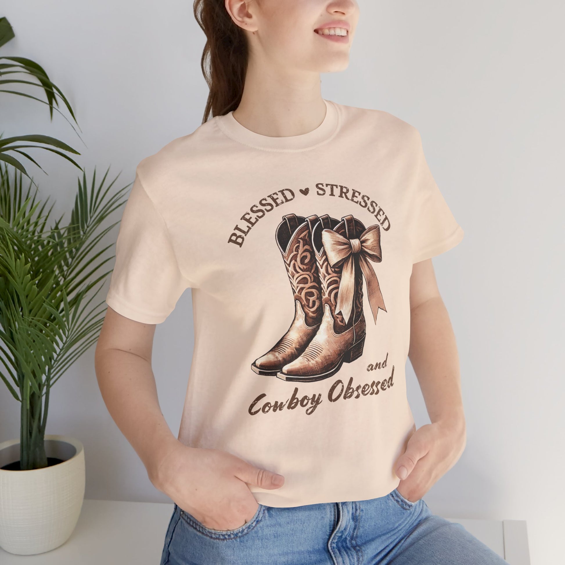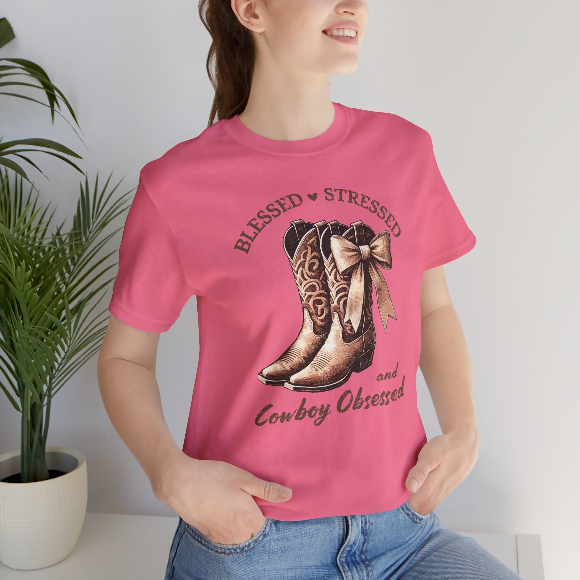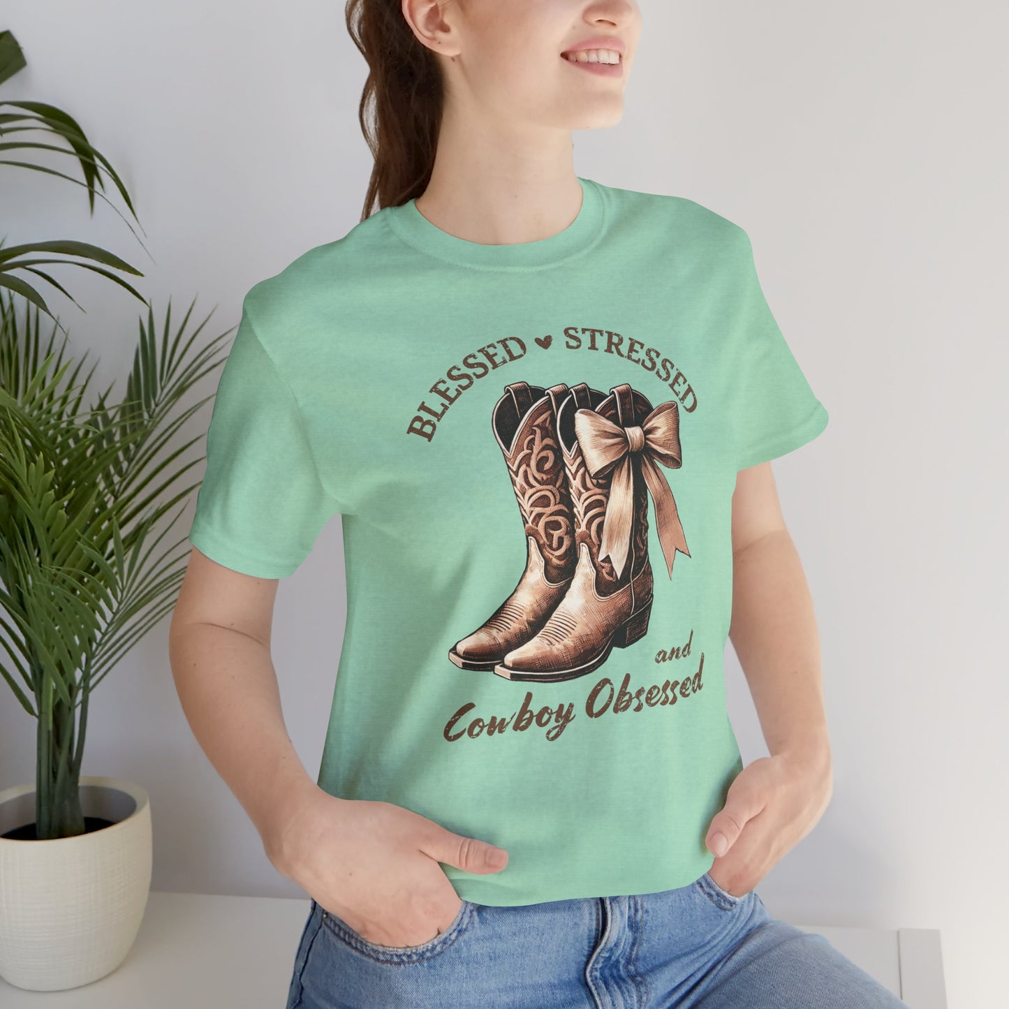 The Blessed Stressed & Cowboy Obsessed Tee is offered on the Unisex Bella Canvas 3001. Bella Canvas T-Shirts are Premium, Versatile and. known for its superior quality and flattering fit, this unisex T-shirt is the go-to choice for fashion-forward individuals.