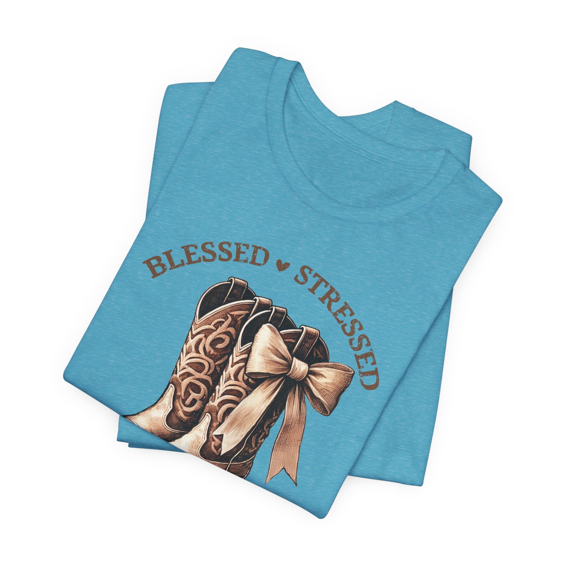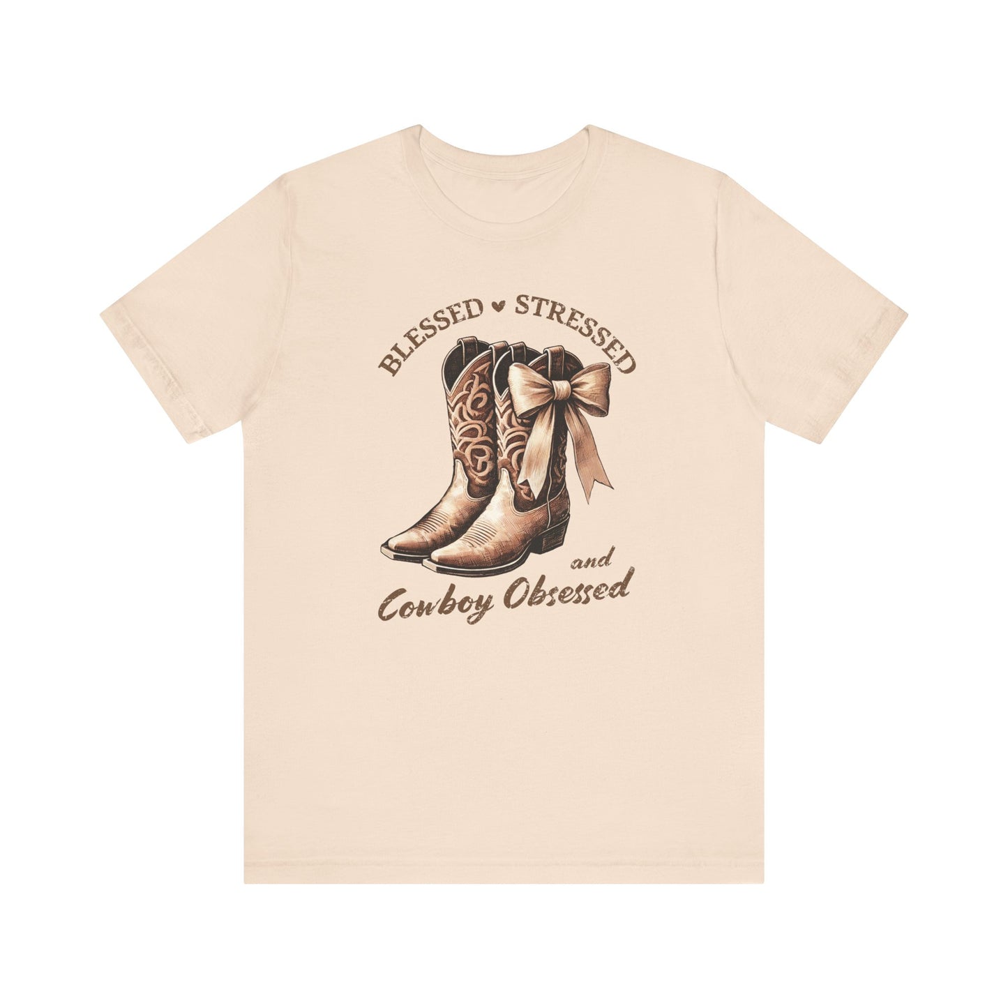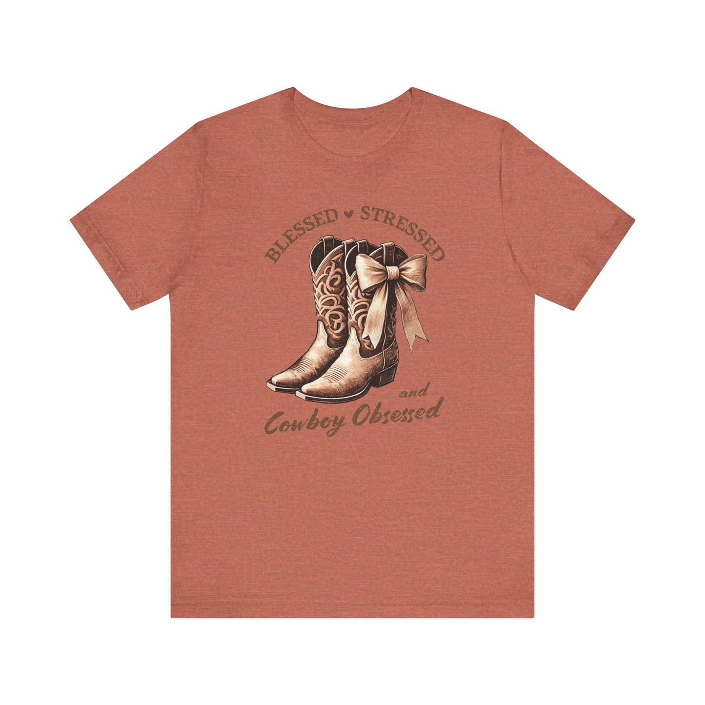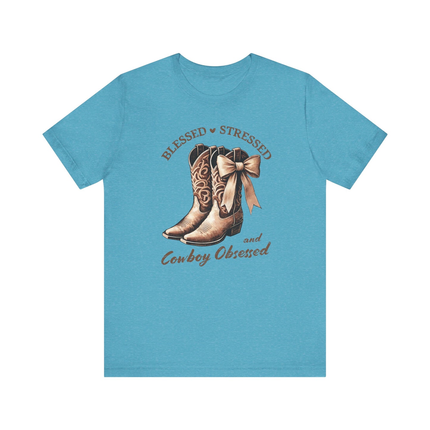 The Blessed Stressed & Cowboy Obsessed Tee is offered on the Unisex Bella Canvas 3001. Bella Canvas T-Shirts are Premium, Versatile and. known for its superior quality and flattering fit, this unisex T-shirt is the go-to choice for fashion-forward individuals.