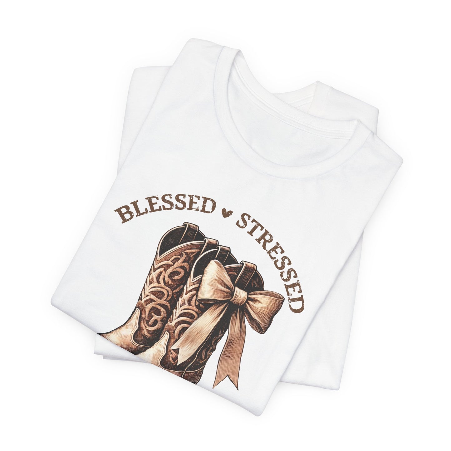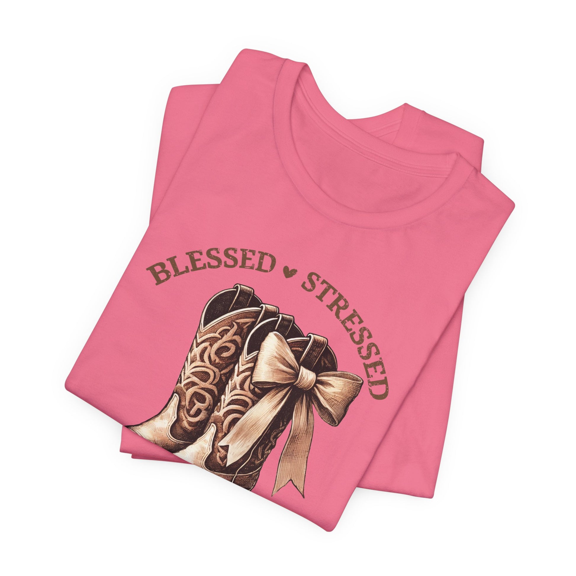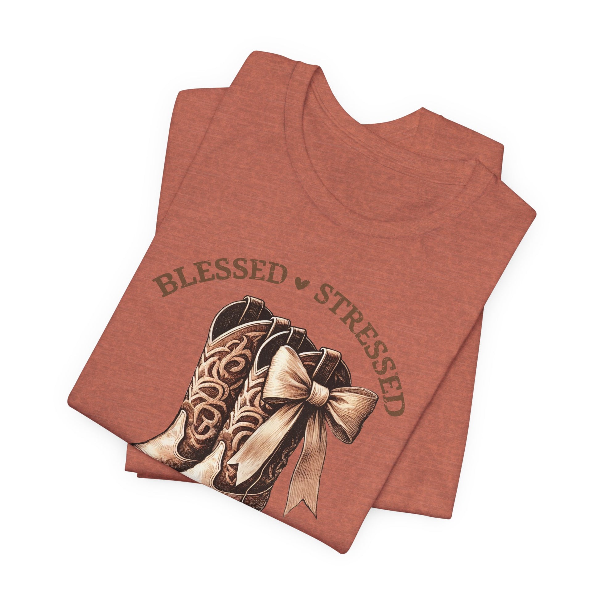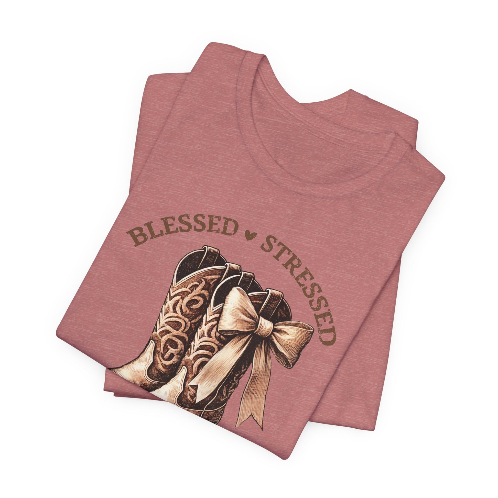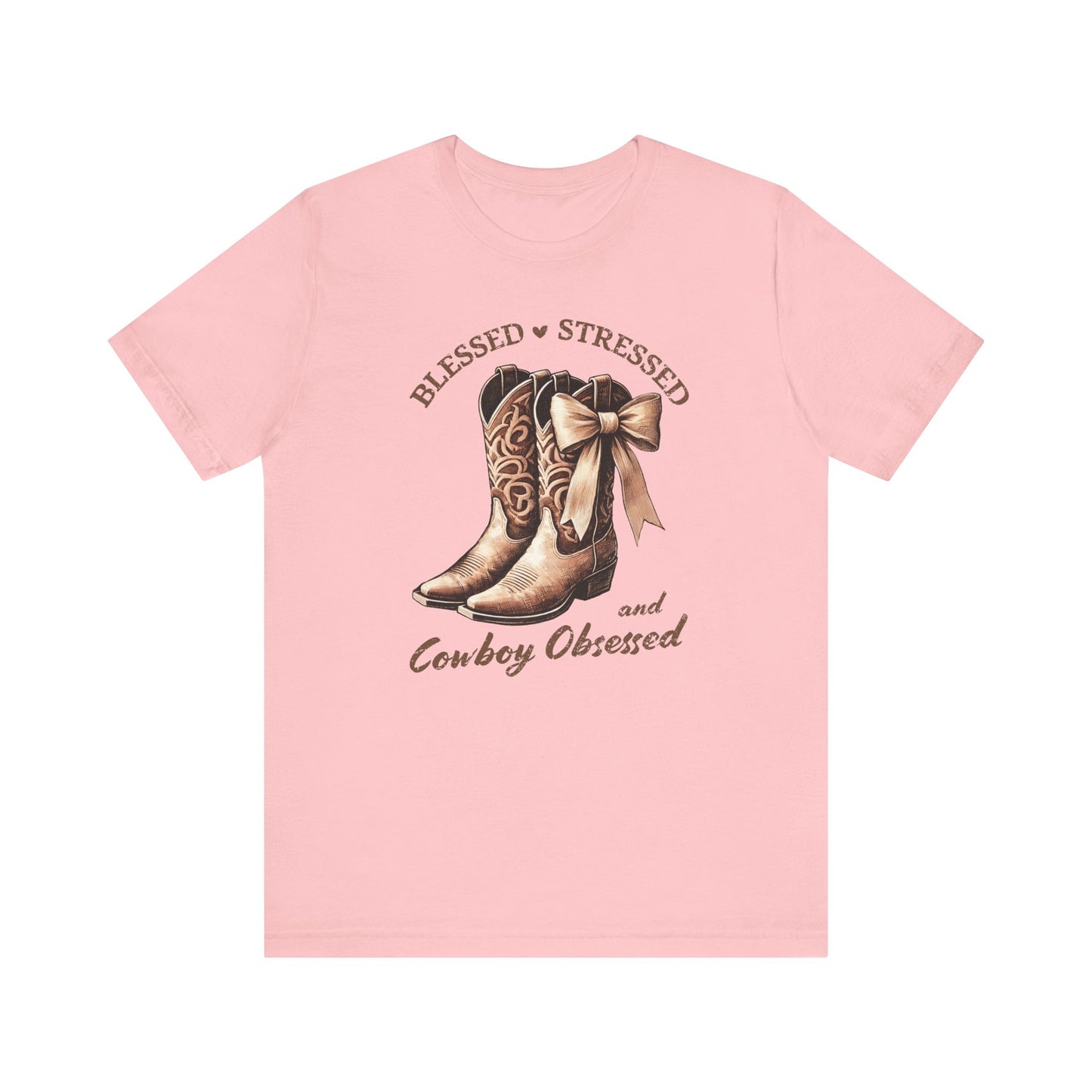 The Blessed Stressed & Cowboy Obsessed Tee is offered on the Unisex Bella Canvas 3001. Bella Canvas T-Shirts are Premium, Versatile and. known for its superior quality and flattering fit, this unisex T-shirt is the go-to choice for fashion-forward individuals.
