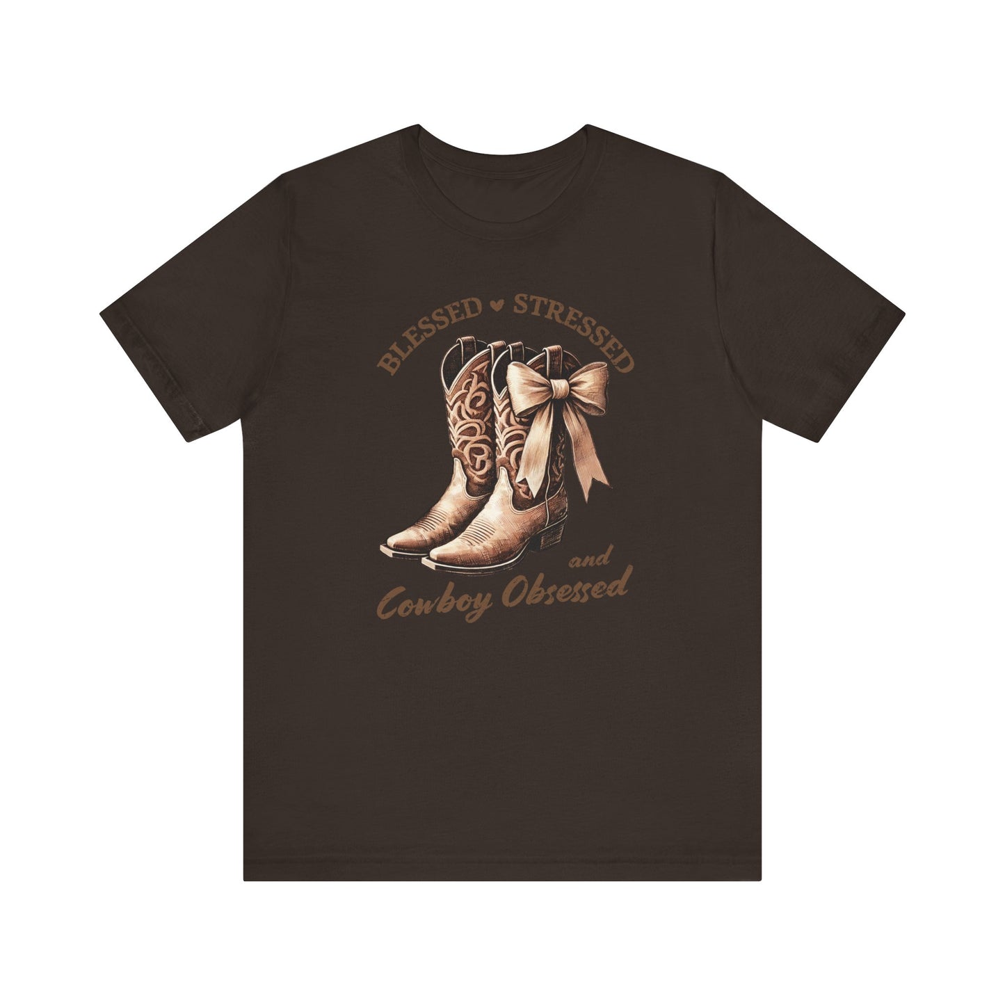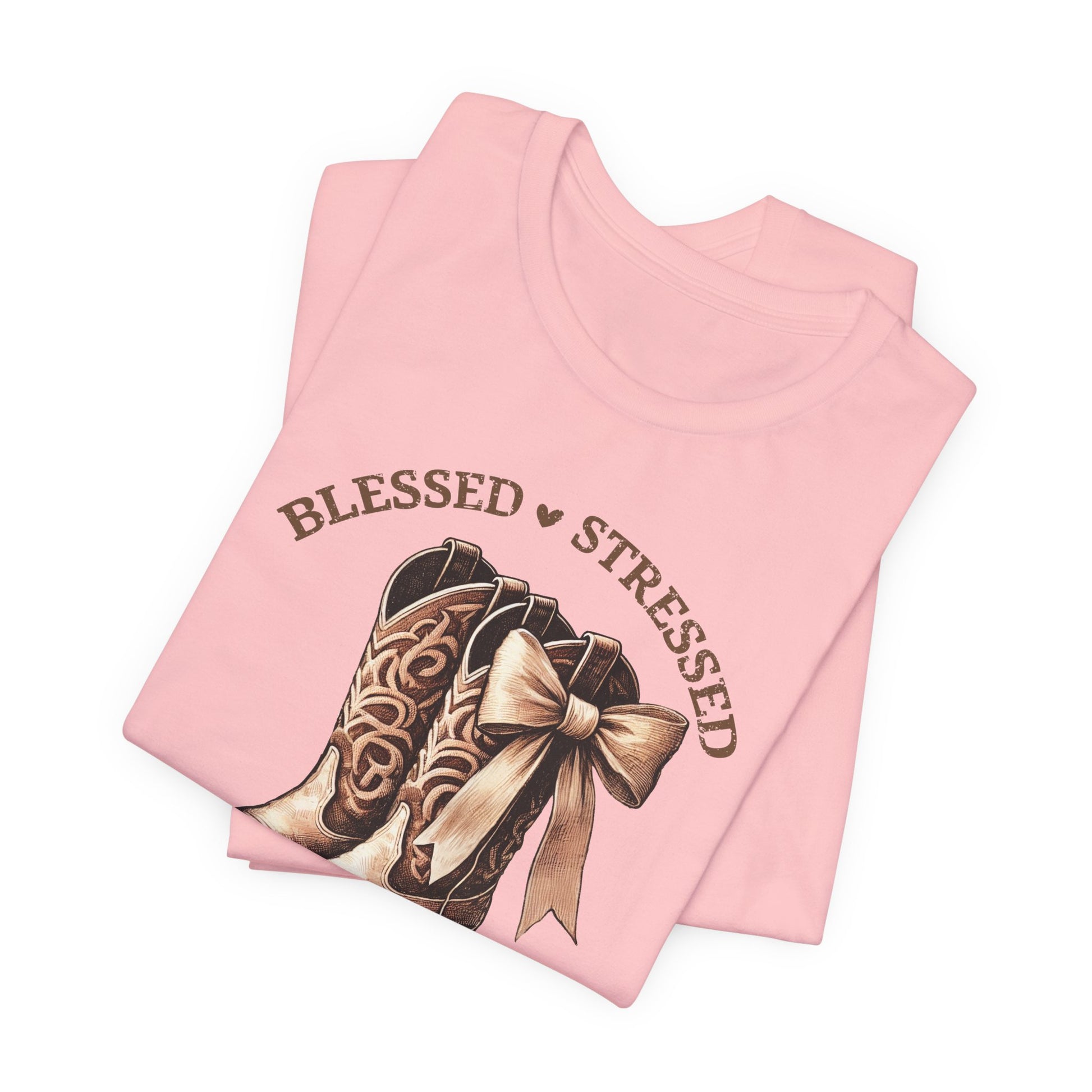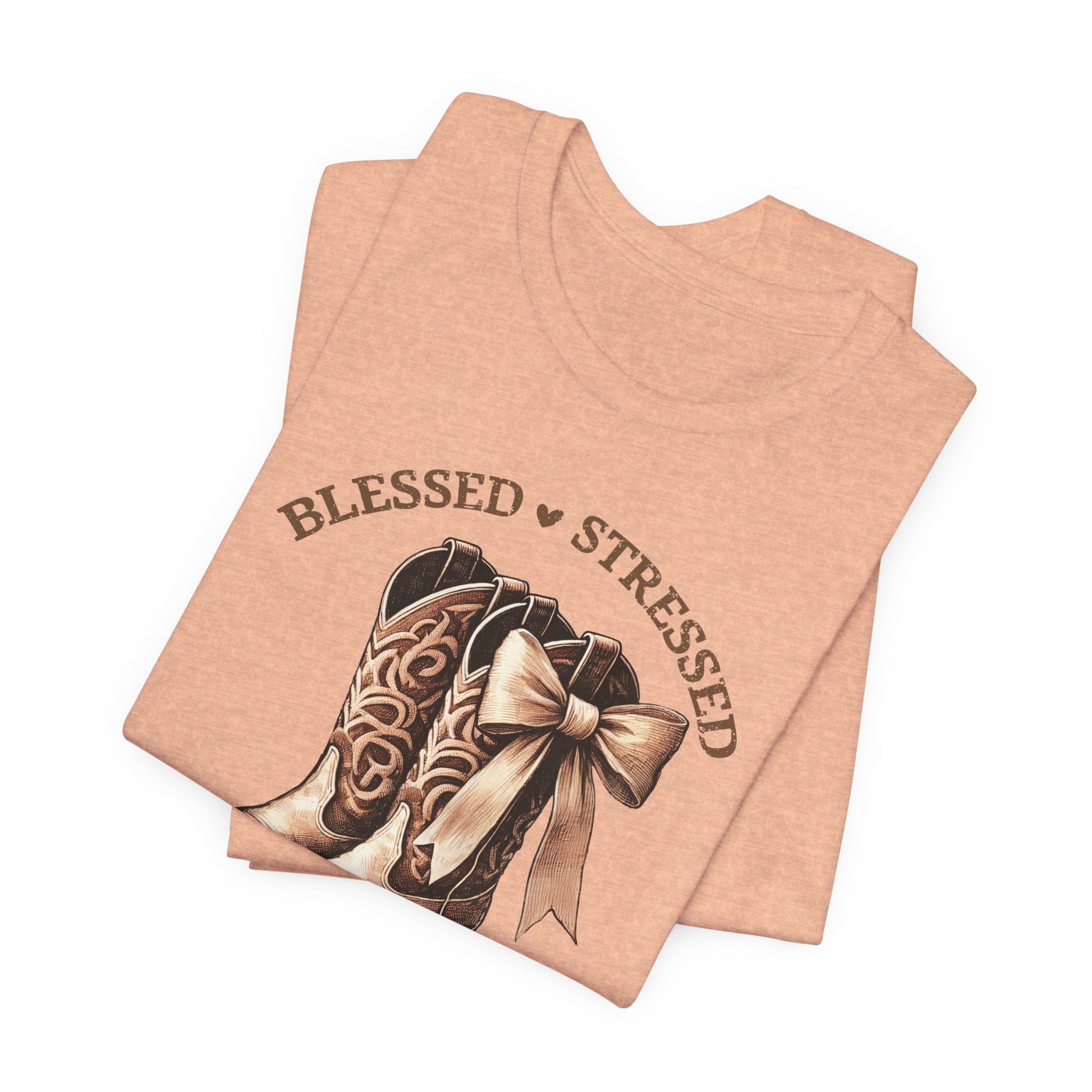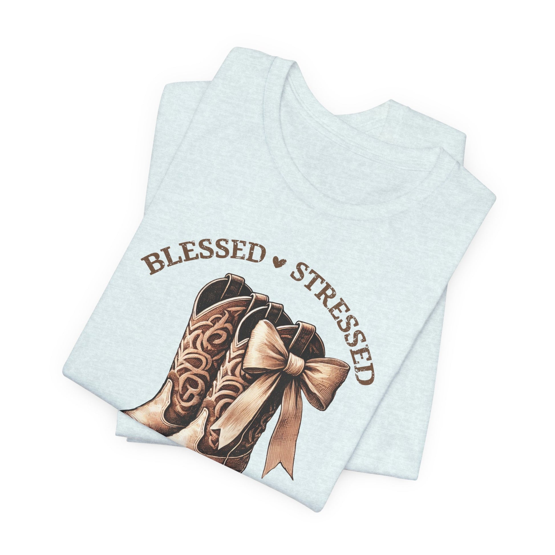 The Blessed Stressed & Cowboy Obsessed Tee is offered on the Unisex Bella Canvas 3001. Bella Canvas T-Shirts are Premium, Versatile and. known for its superior quality and flattering fit, this unisex T-shirt is the go-to choice for fashion-forward individuals.