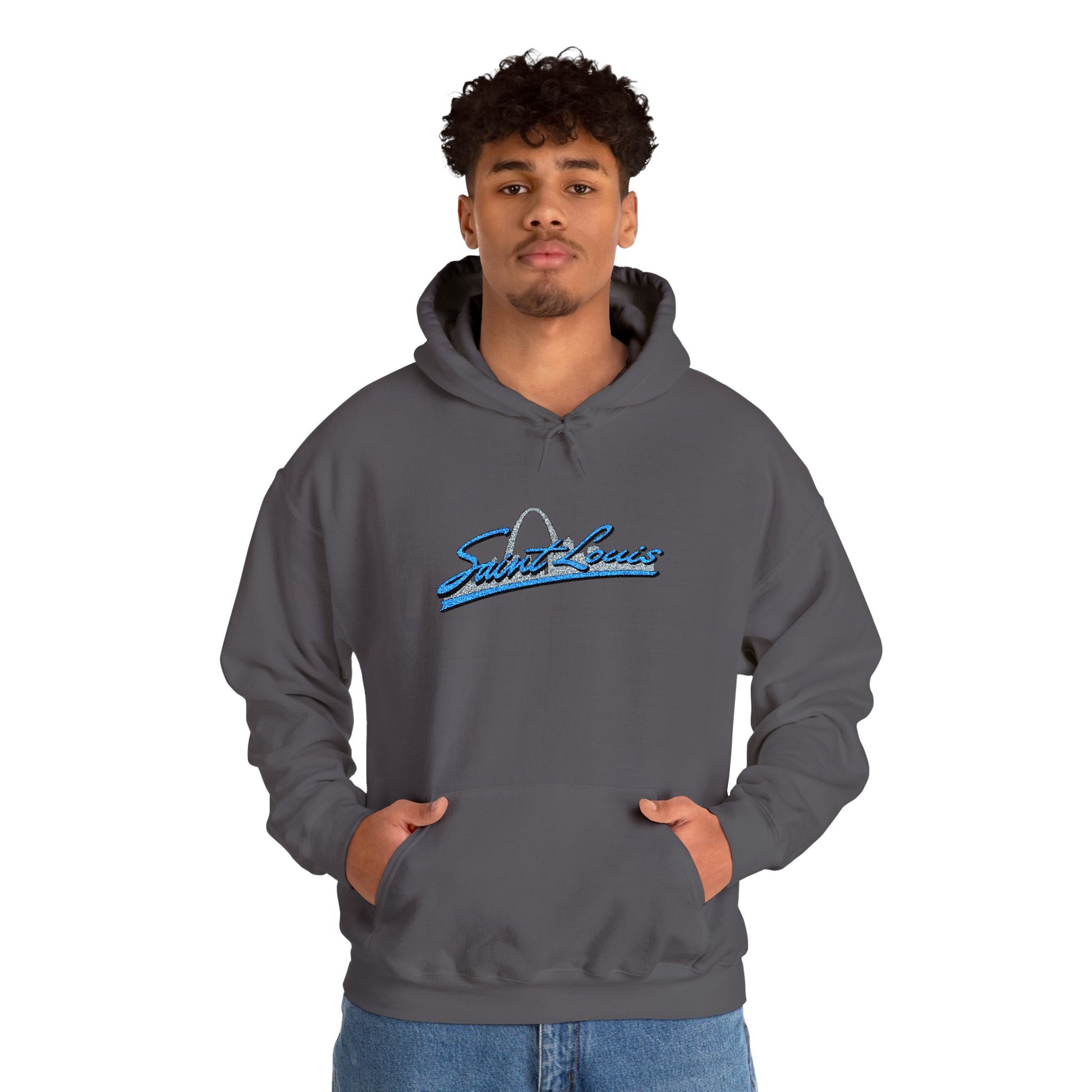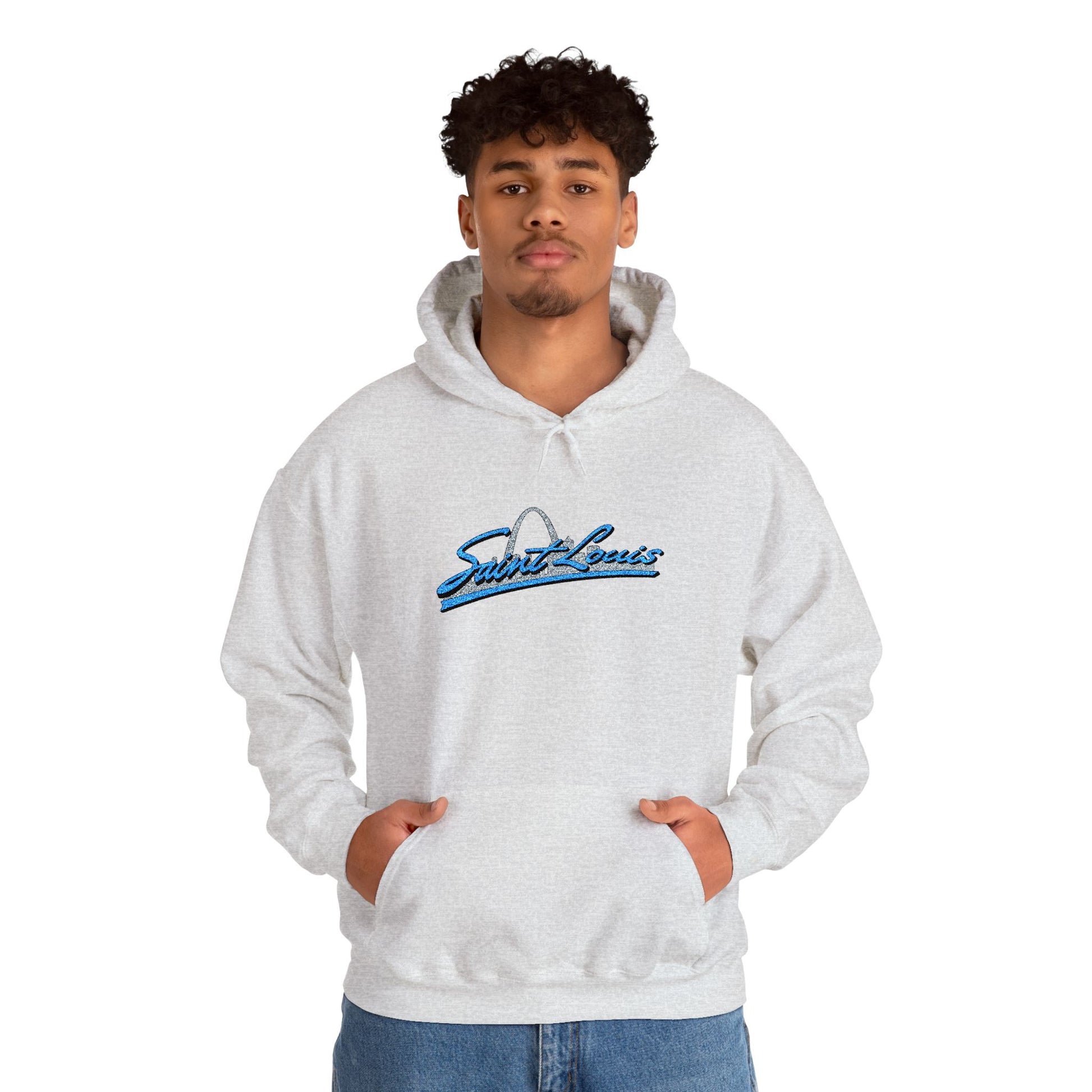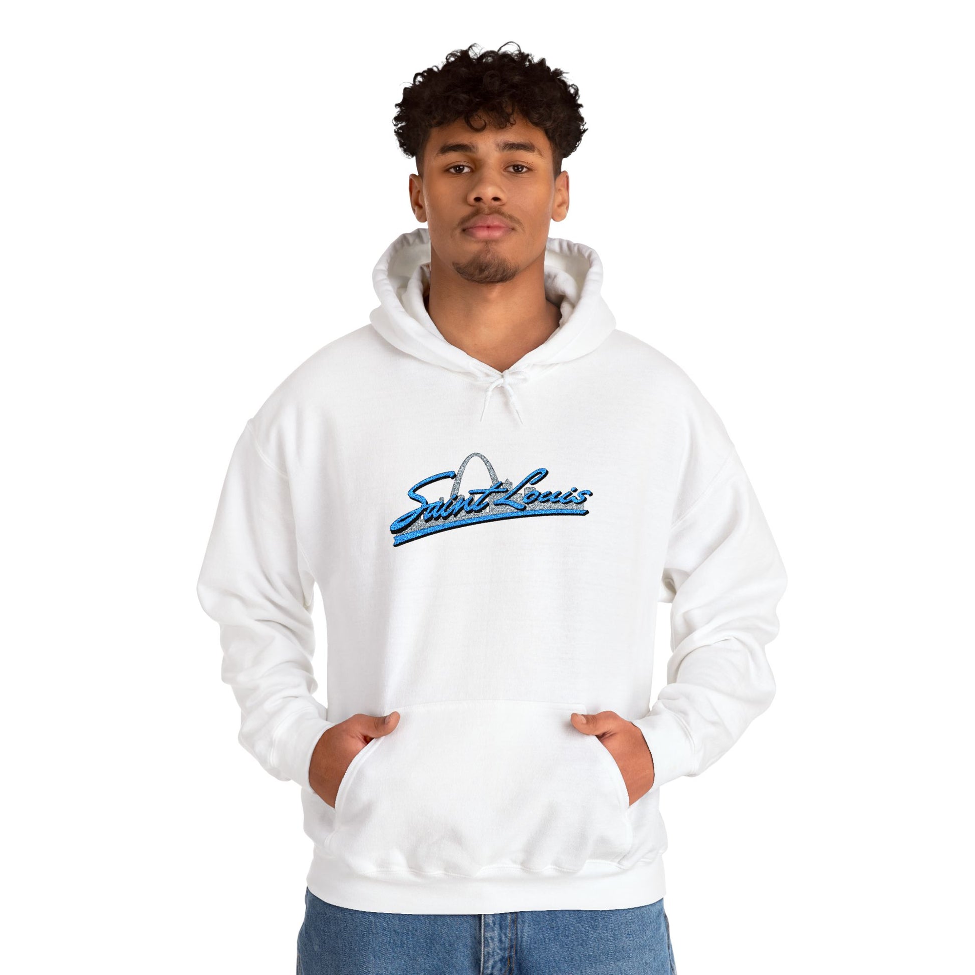 Stay cozy and stylish with this embroidered Hoodie featuring Saint Louis design. Perfect for chilly days, this unisex heavy blend sweatshirt is made from a 50% cotton, 50% polyester blend for a strong and smooth fabric. The spacious kangaroo pouch pocket and adjustable drawstring hood add functionality and warmth. Ideal for adults, this hoodie is perfect for casual wear or as a gift for fans of Saint Louis.