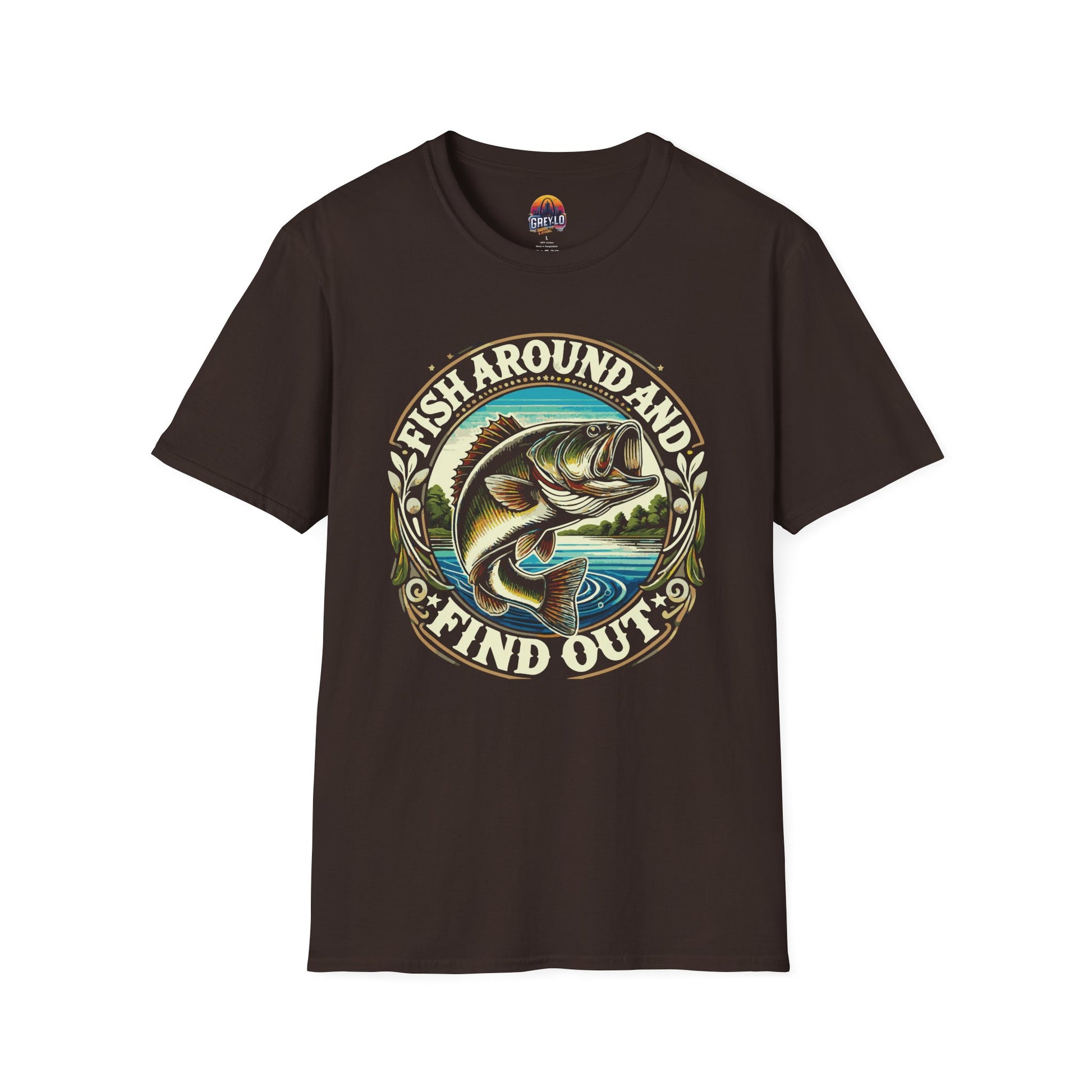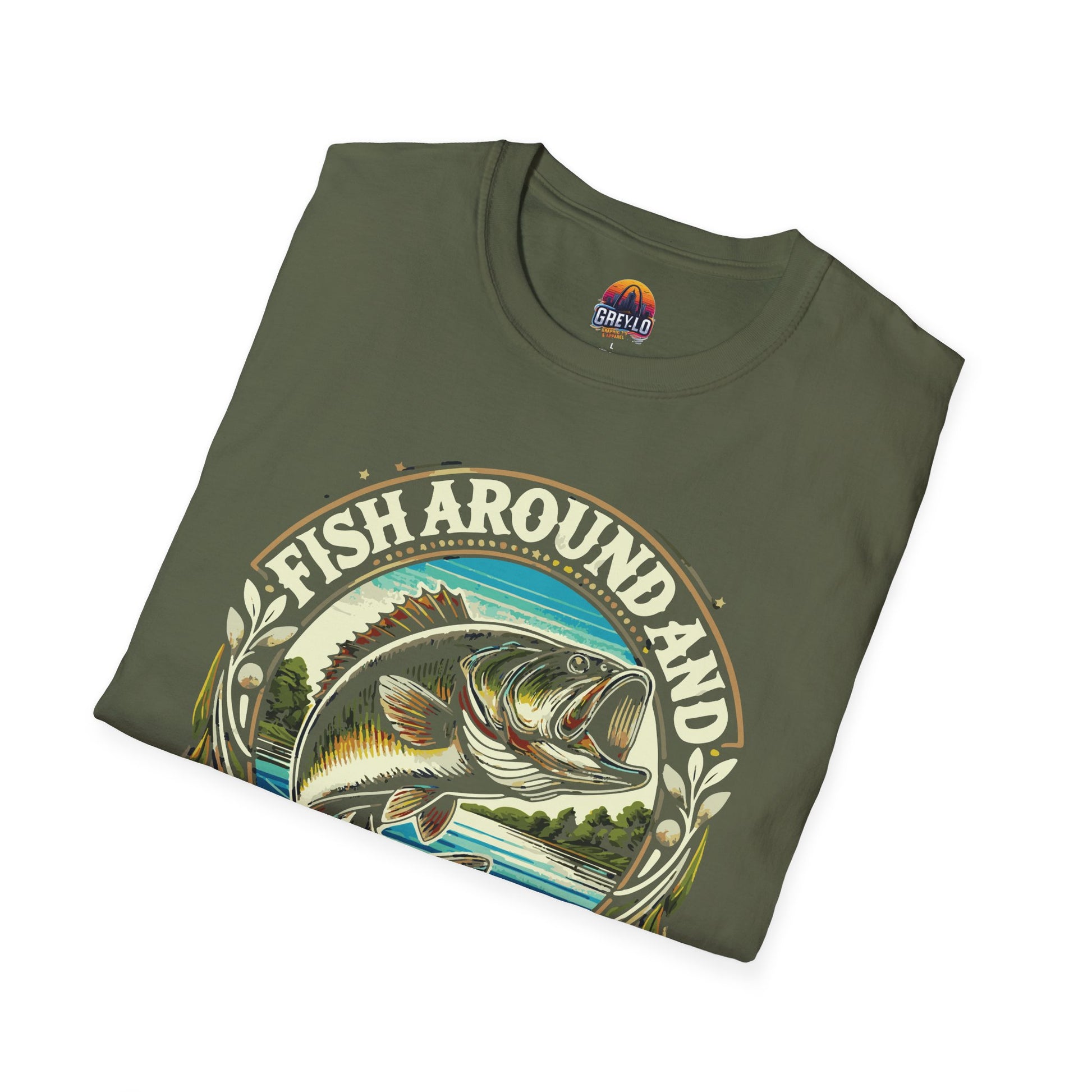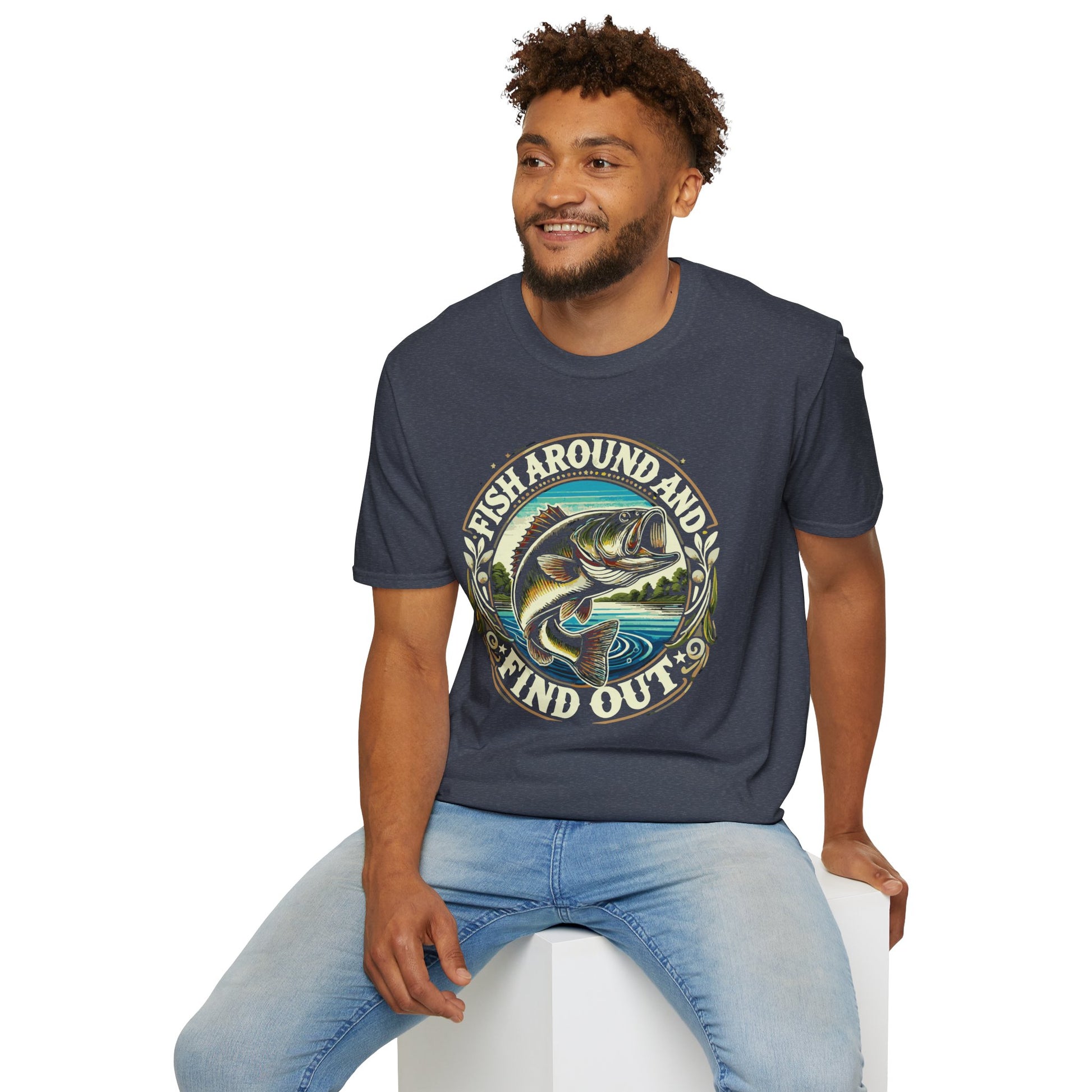 The Fish Around And Find out Graphic Tee is a unisex softstyle T-shirt perfect for men and women who love fishing. It is made from durable and smooth fabric that is perfect for printing. This tee is lightweight and comfortable for year-round wear, featuring a classic fit with a crew neckline for a versatile style suitable for any occasion.
