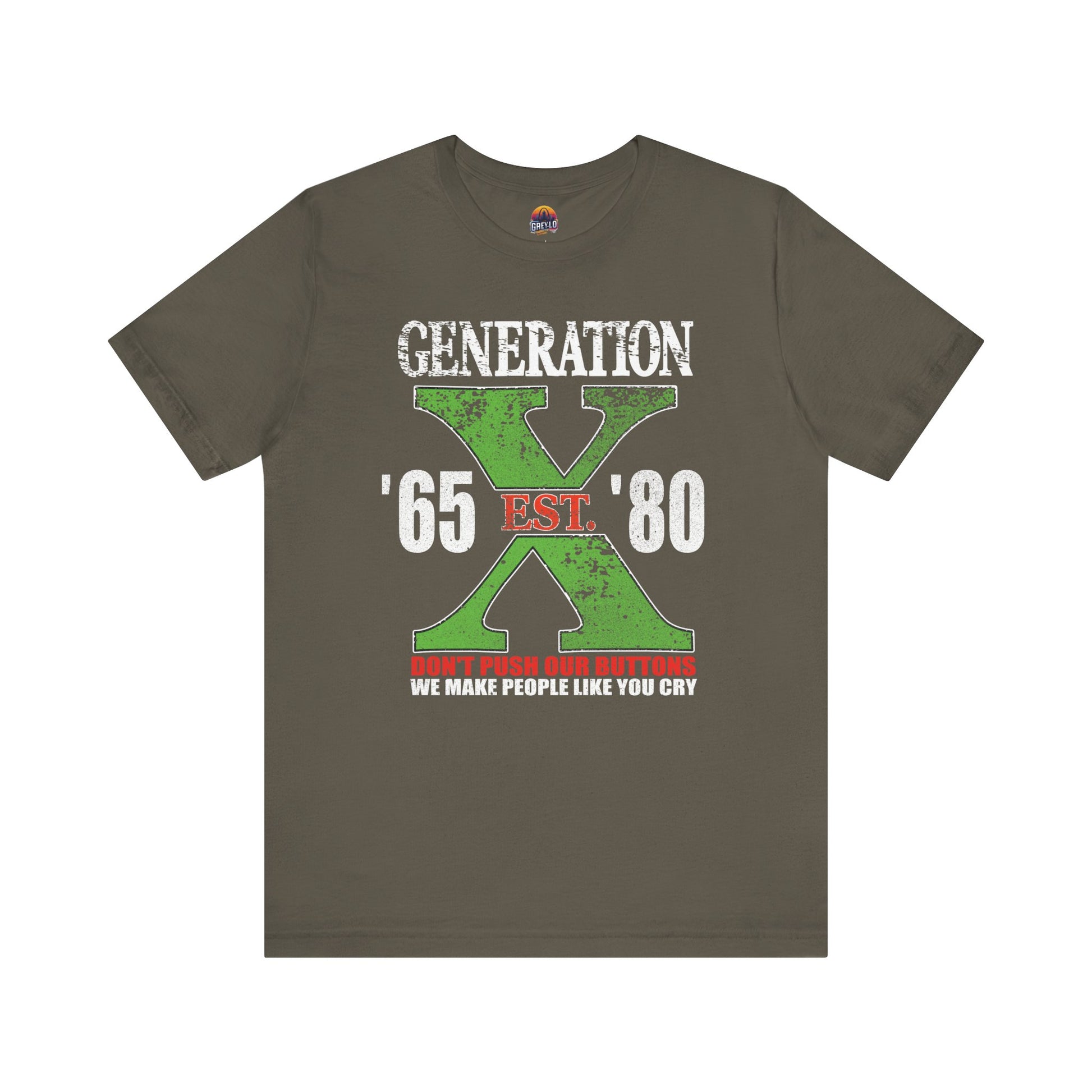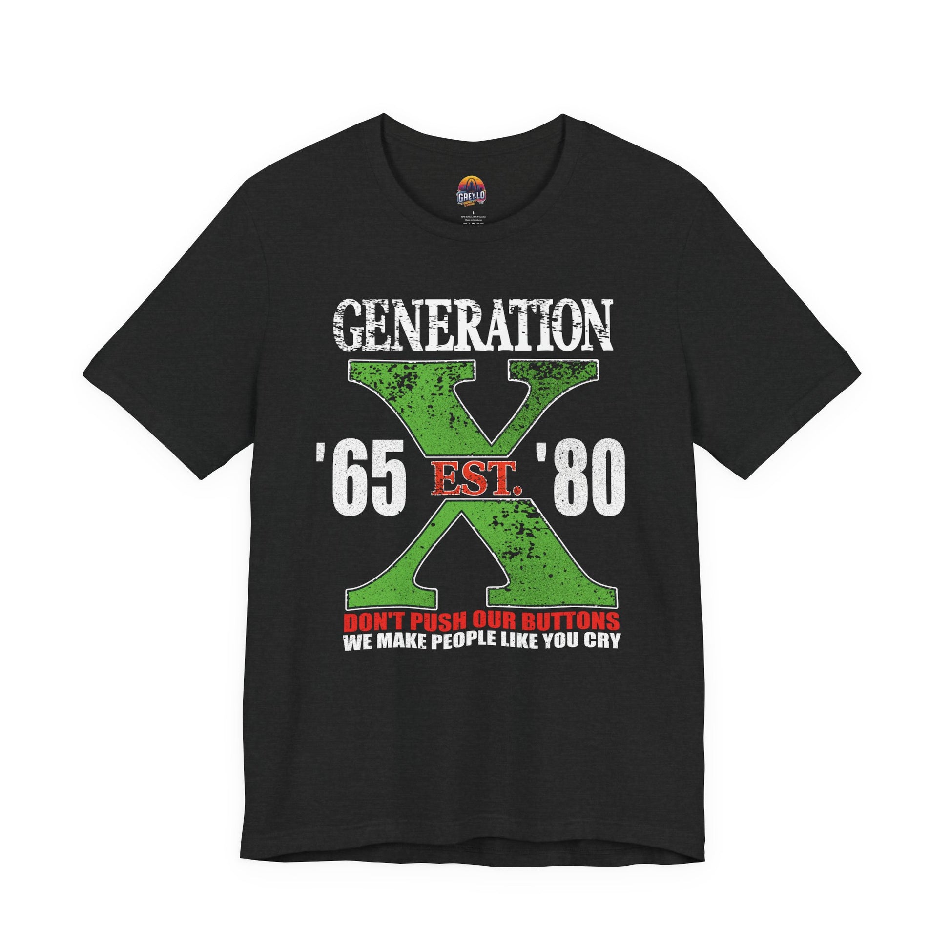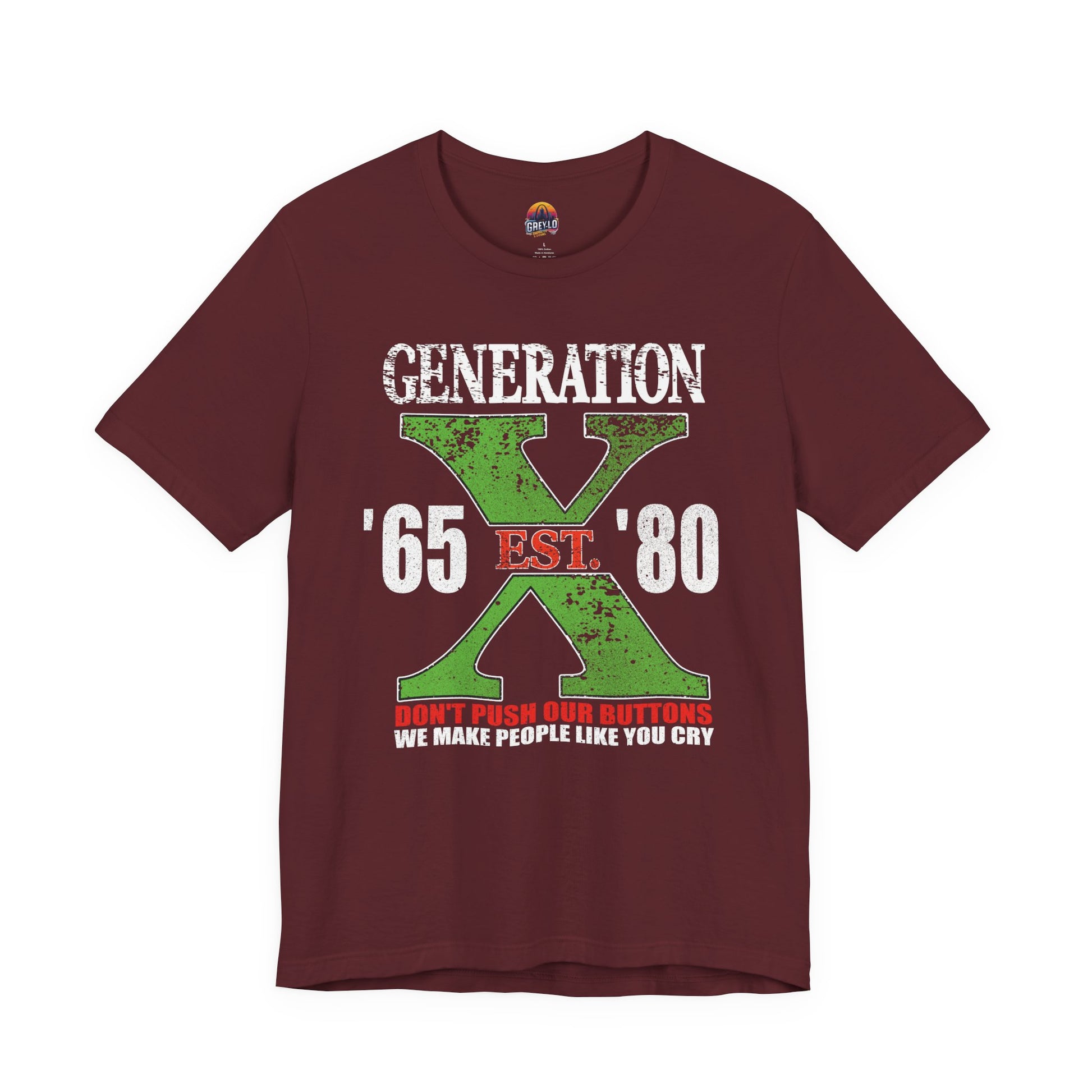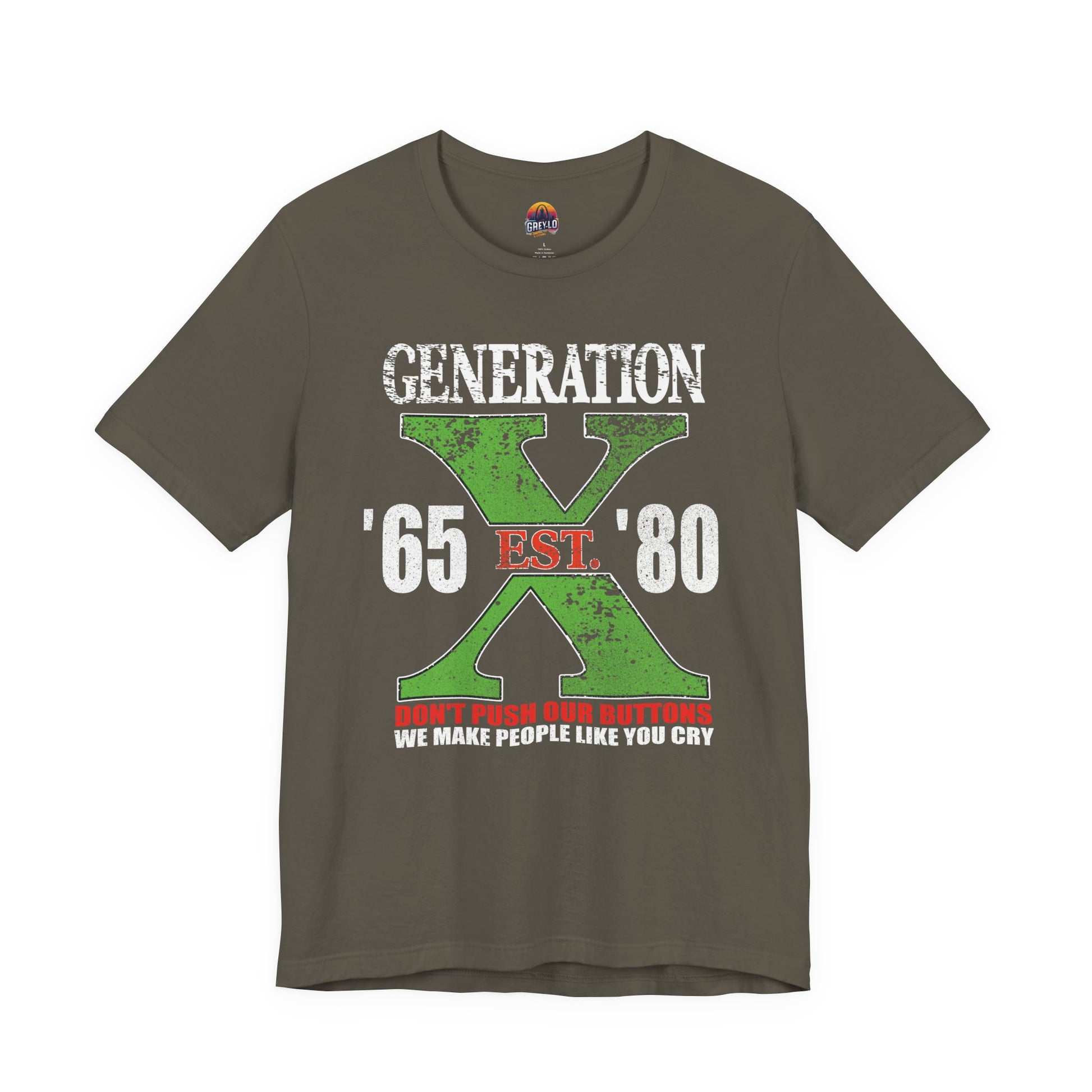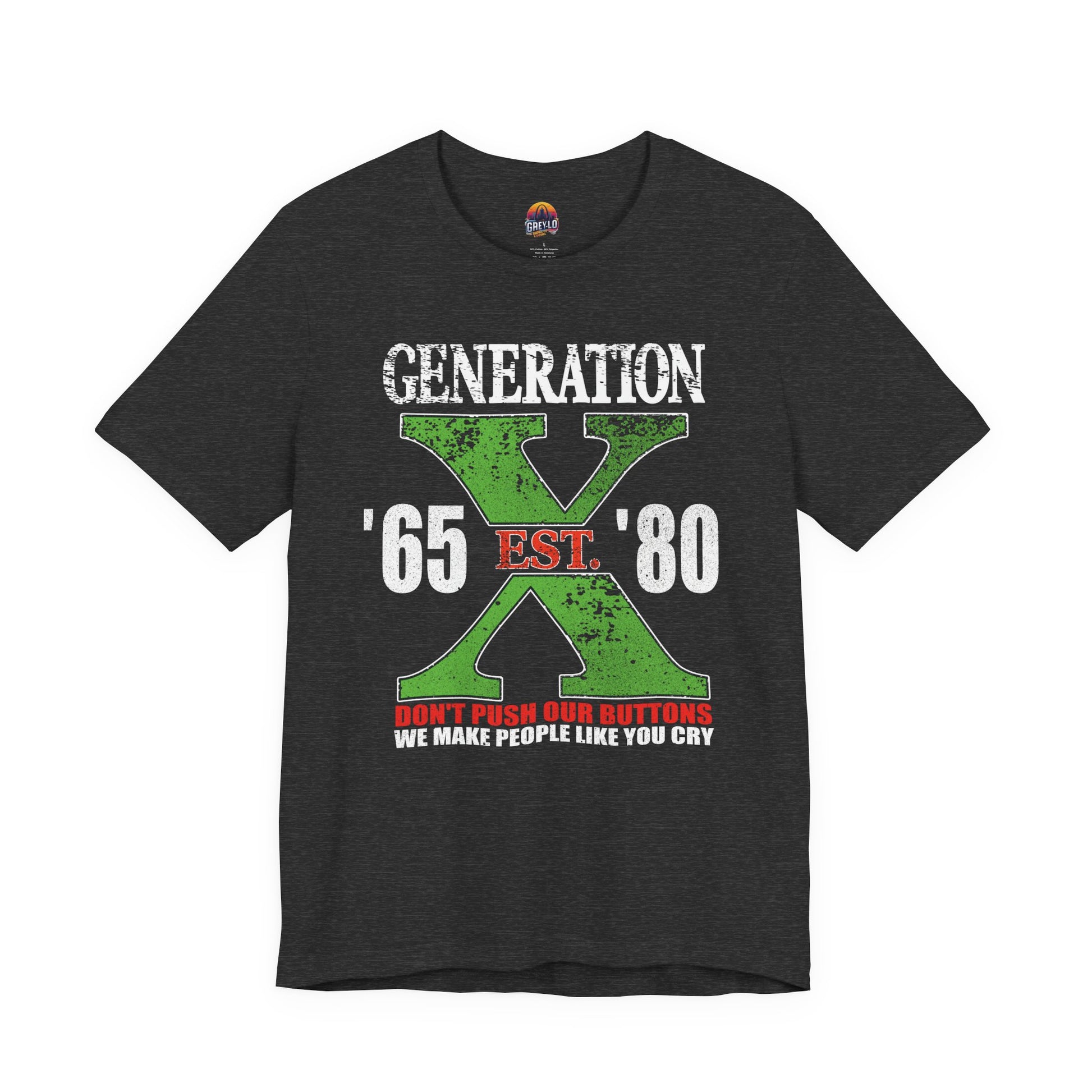 The Generation X Graphic is featured on this Bella Canvas 3001 T-Shirt, appealing to men and women born between 1965-1980. It provides a nostalgic and retro vibe, perfect for casual wear or as a gift for someone from that era. Ideal for birthdays, reunions, or a fun throwback look.