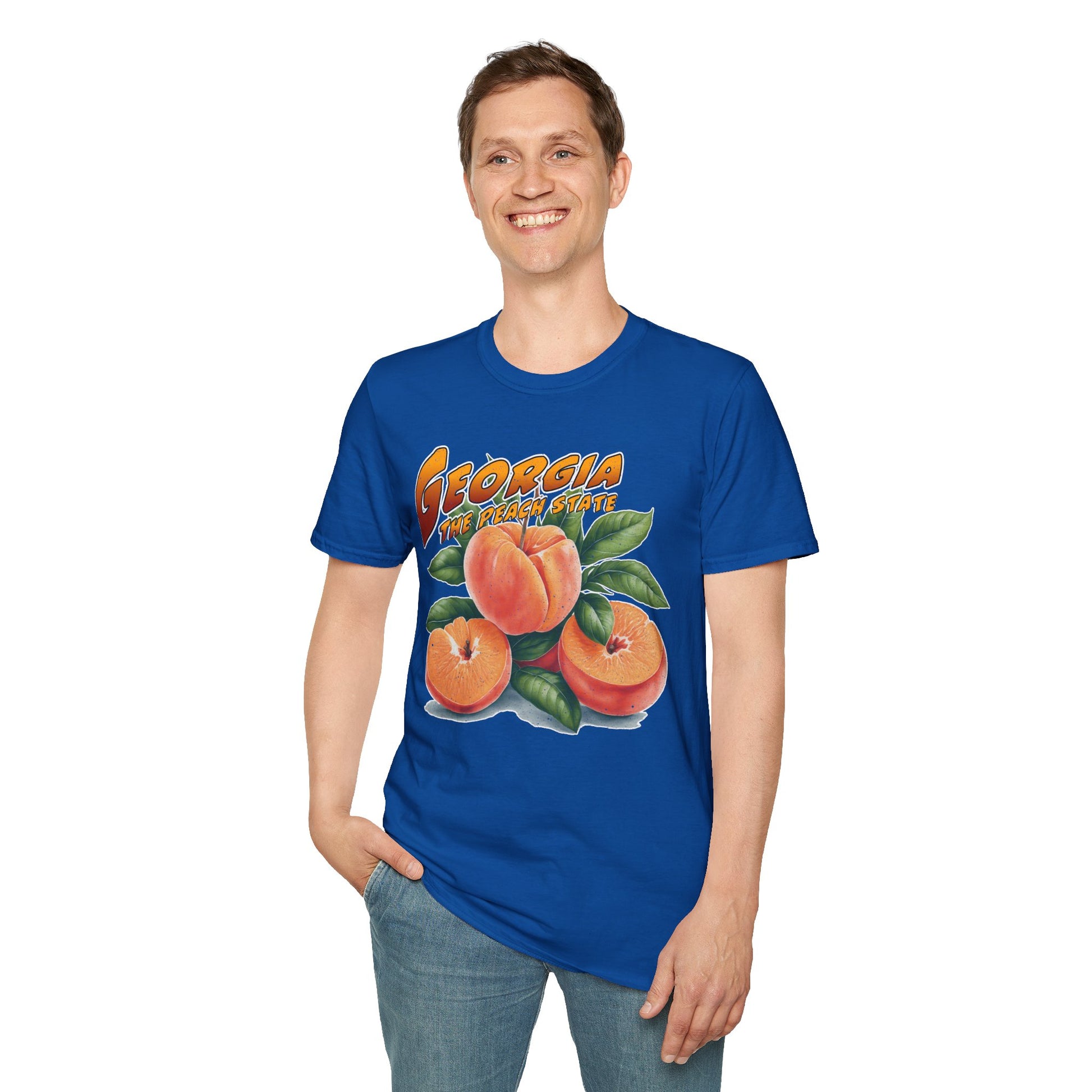 Featuring the Georgia The Peach State design on a Gildan 64000 shirt, this unisex T-shirt is made with 100% ring-spun cotton for a lightweight and comfortable feel. The classic fit and crew neckline make it a versatile style for any occasion, formal or semi-formal. Perfect for adults looking to show their love for Georgia.