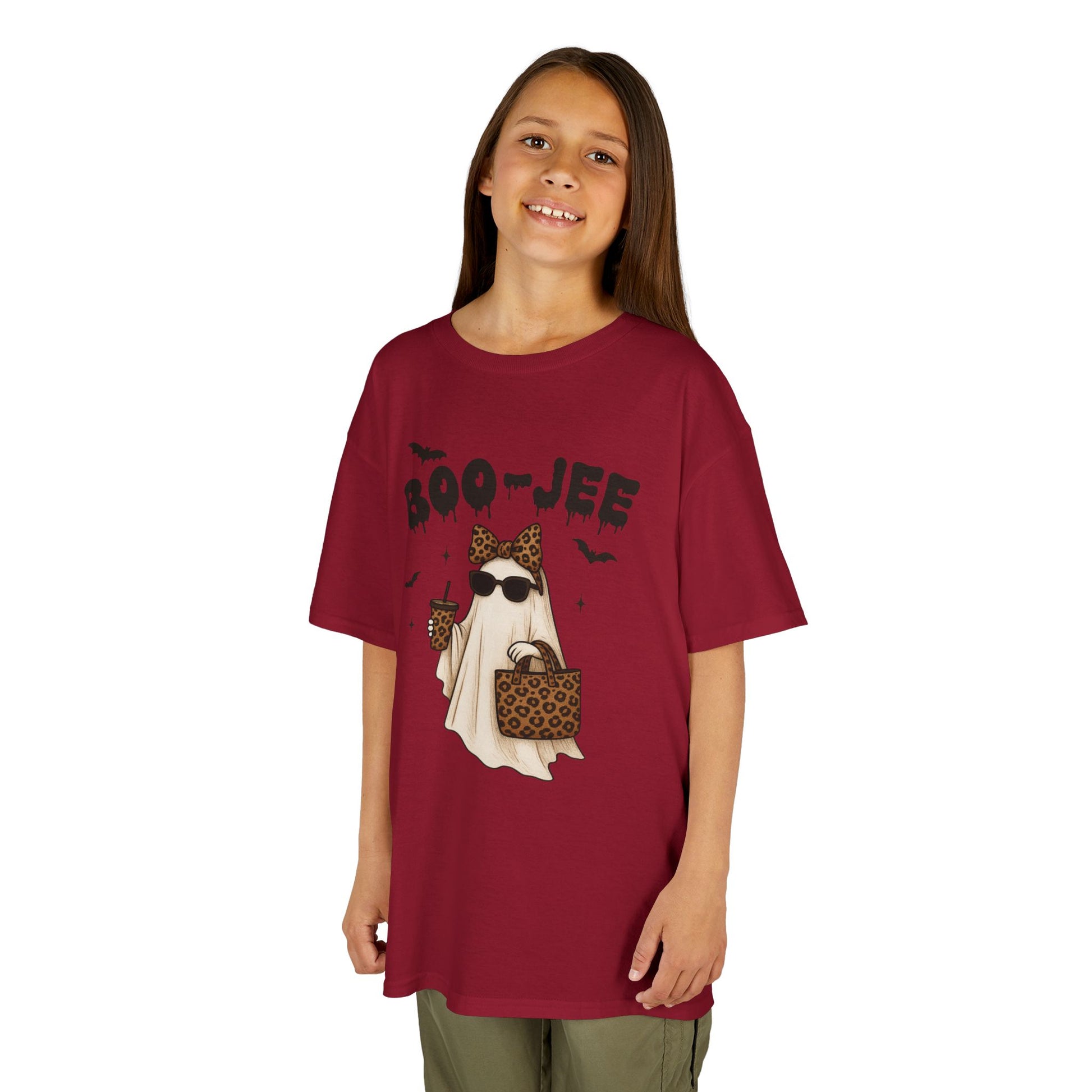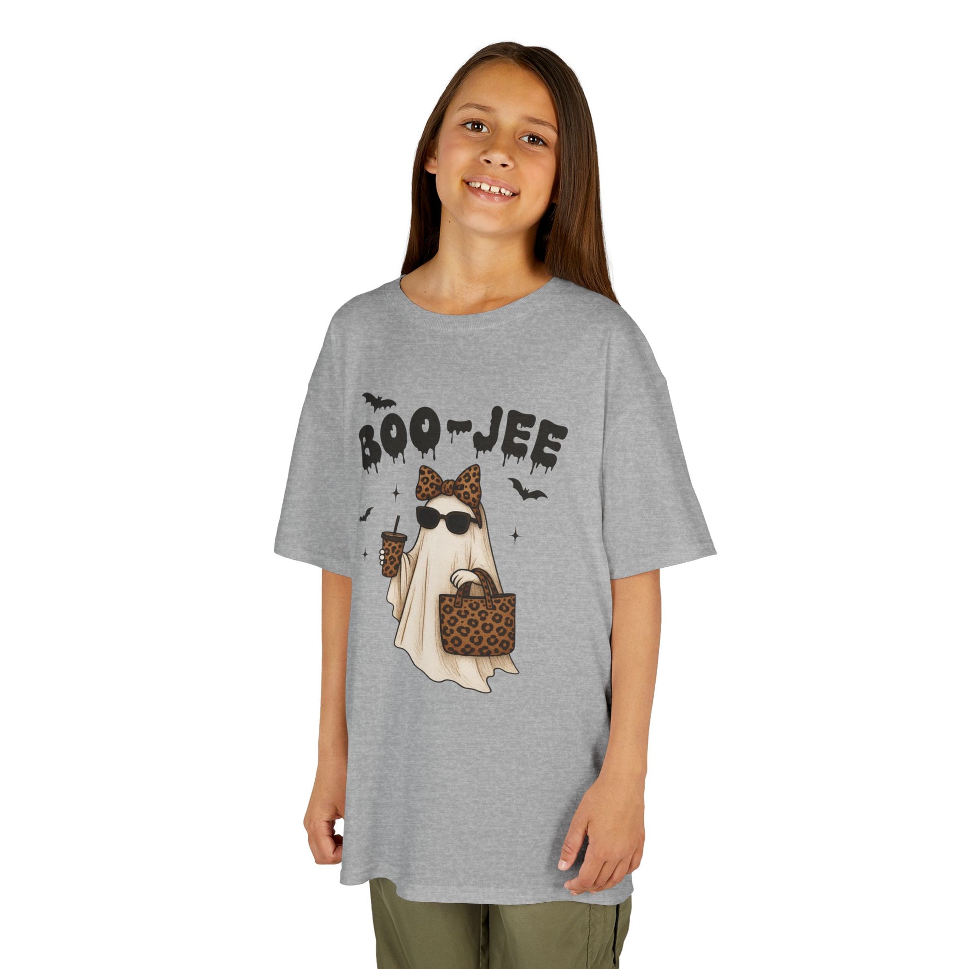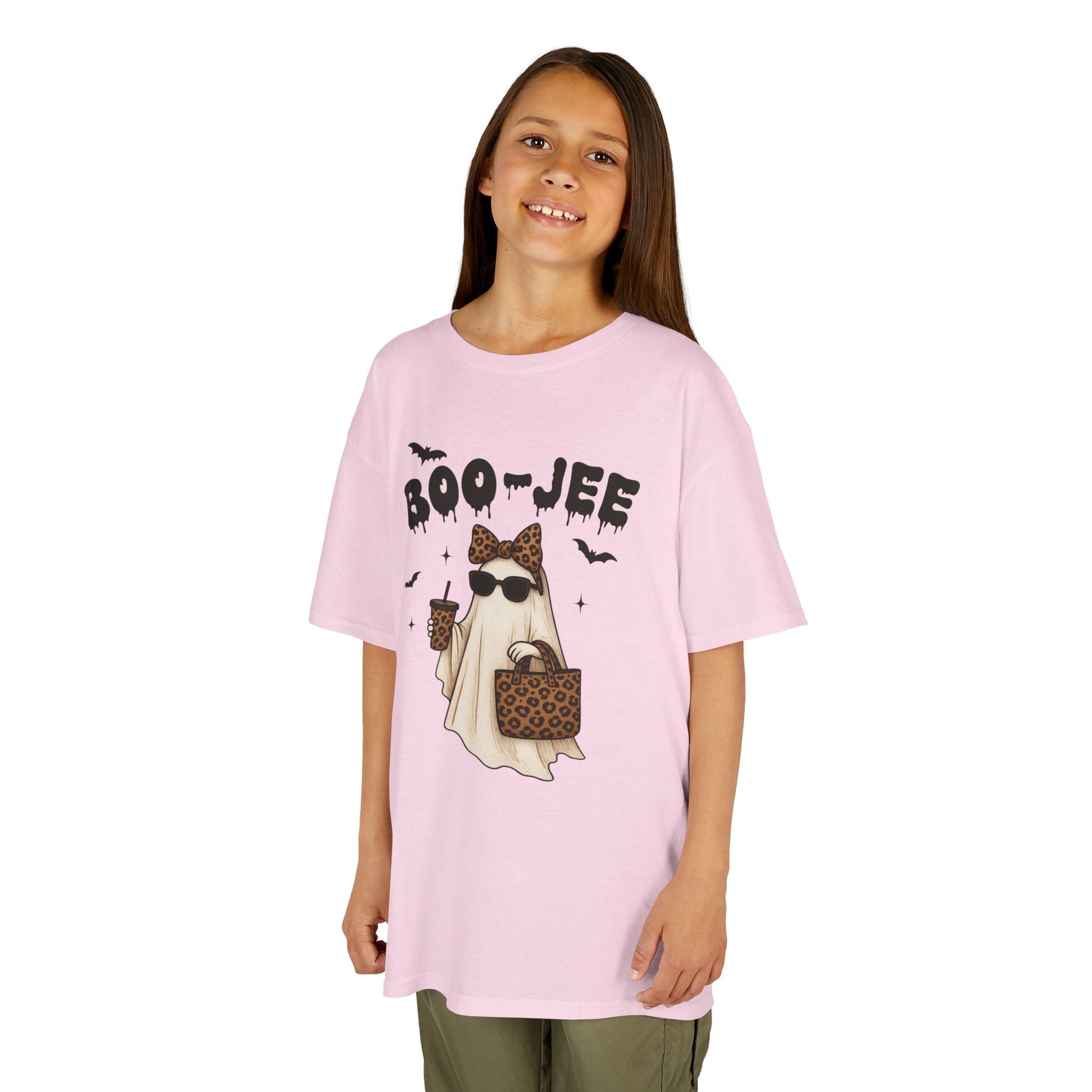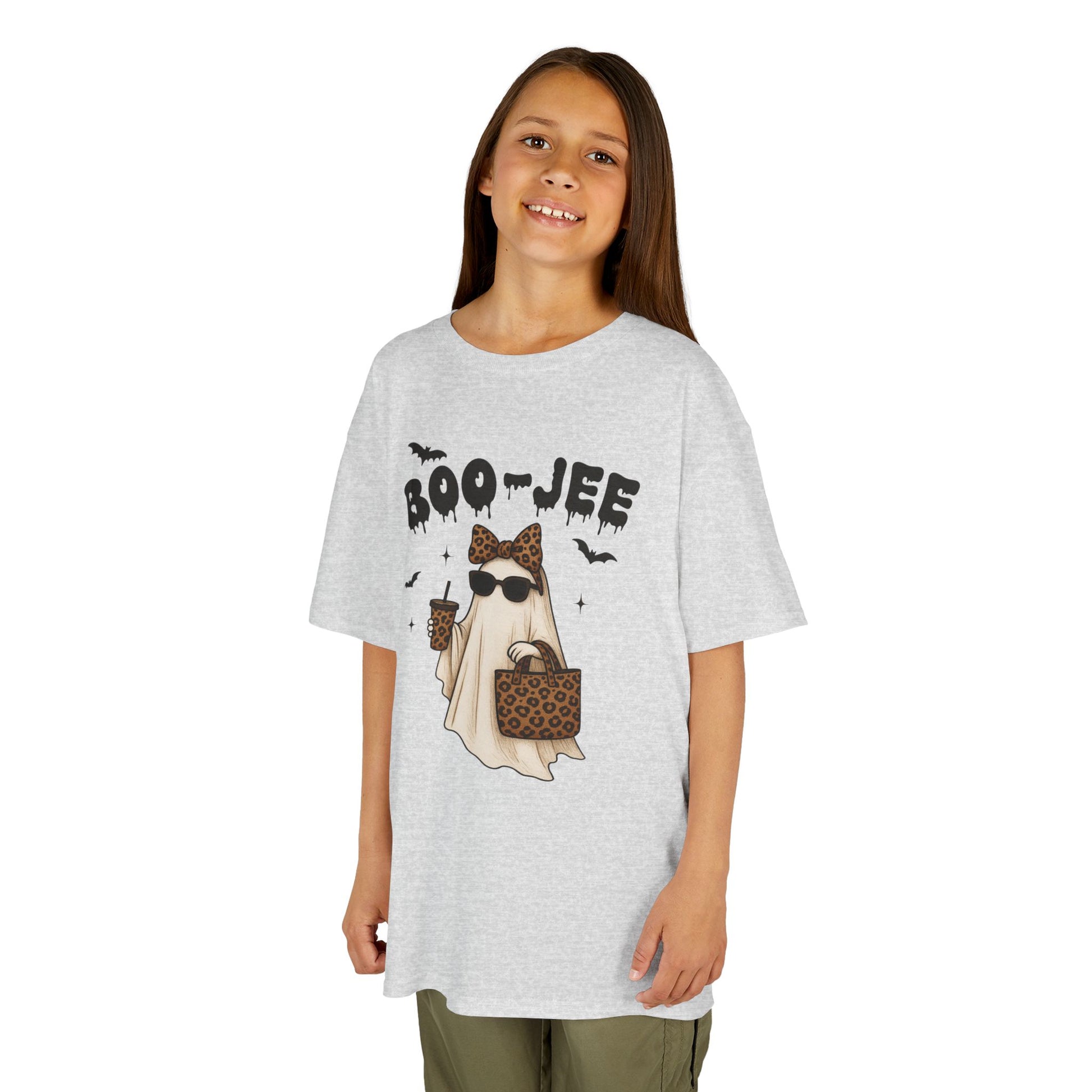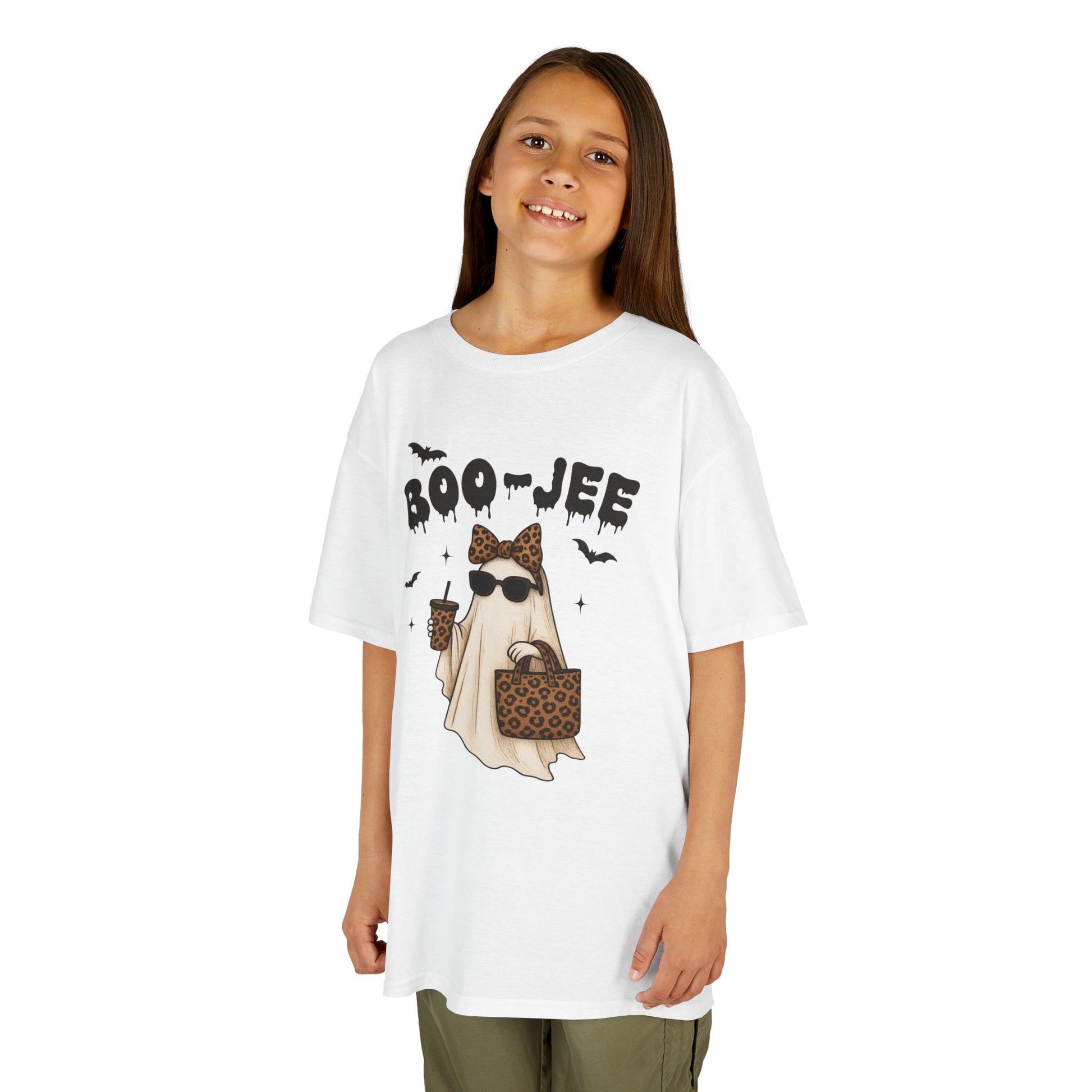 Kids Halloween Tee Boo Jee is a fun and spooky T-Shirt perfect for young ones to wear during Halloween festivities. The design exudes a playful yet eerie vibe that captures the spirit of the holiday. Ideal for children looking to dress up and have a good time trick-or-treating or attending Halloween parties.