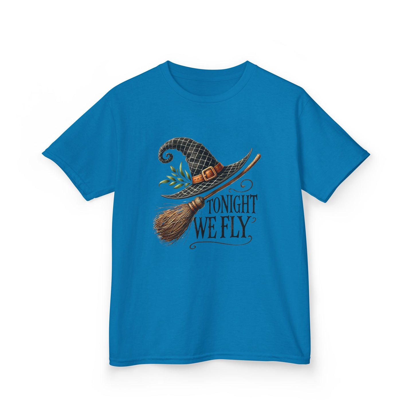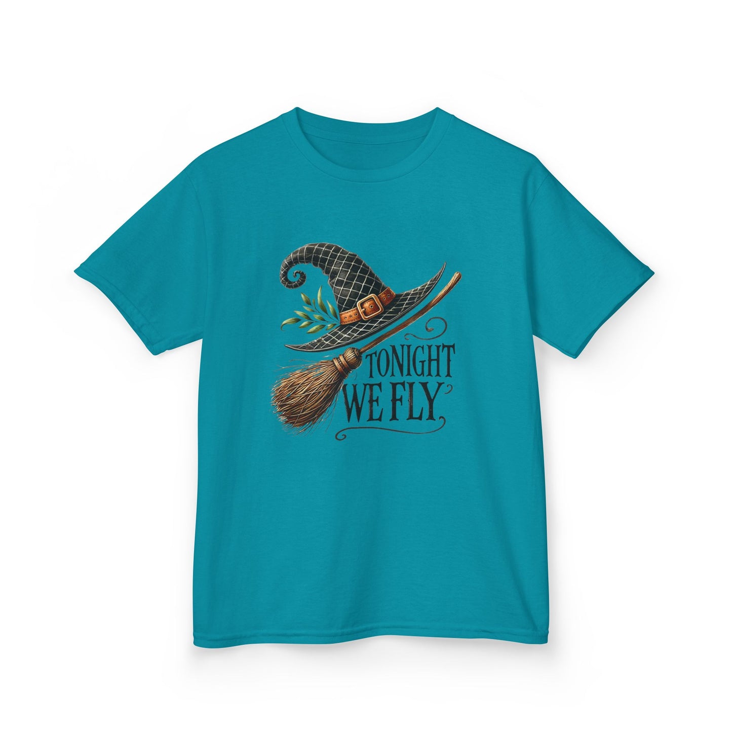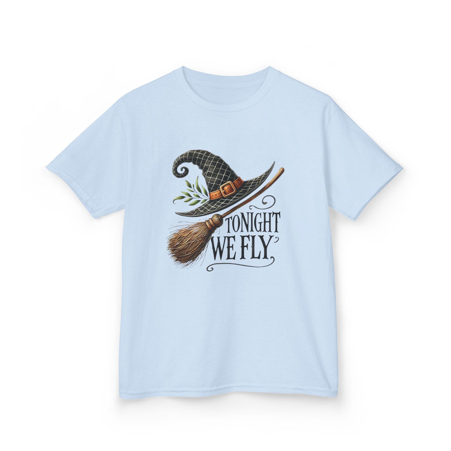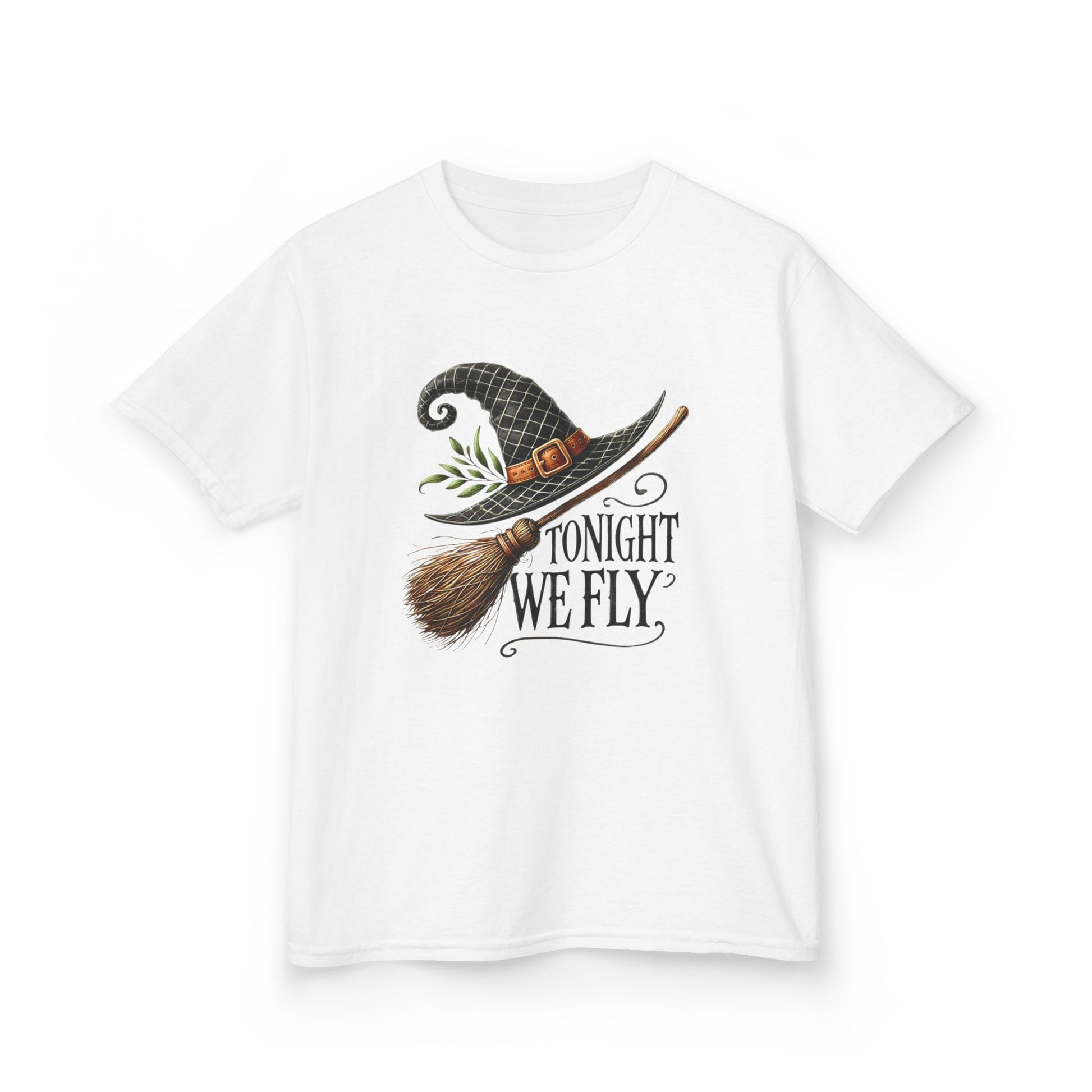 The Tonight We Fly Kids Halloween Tee is perfect for the little ones who are ready to take flight this Halloween. The spooky design on this tee captures the fun and excitement of the holiday, making it a must-have for any Halloween celebration. This tee is ideal for children looking to add a touch of spookiness to their wardrobe.
