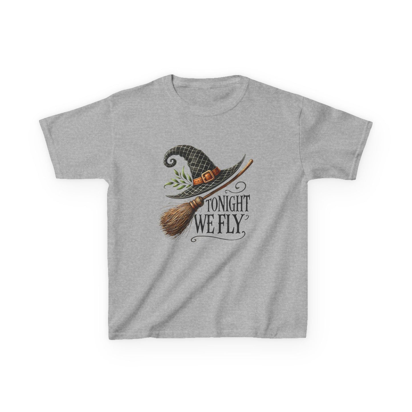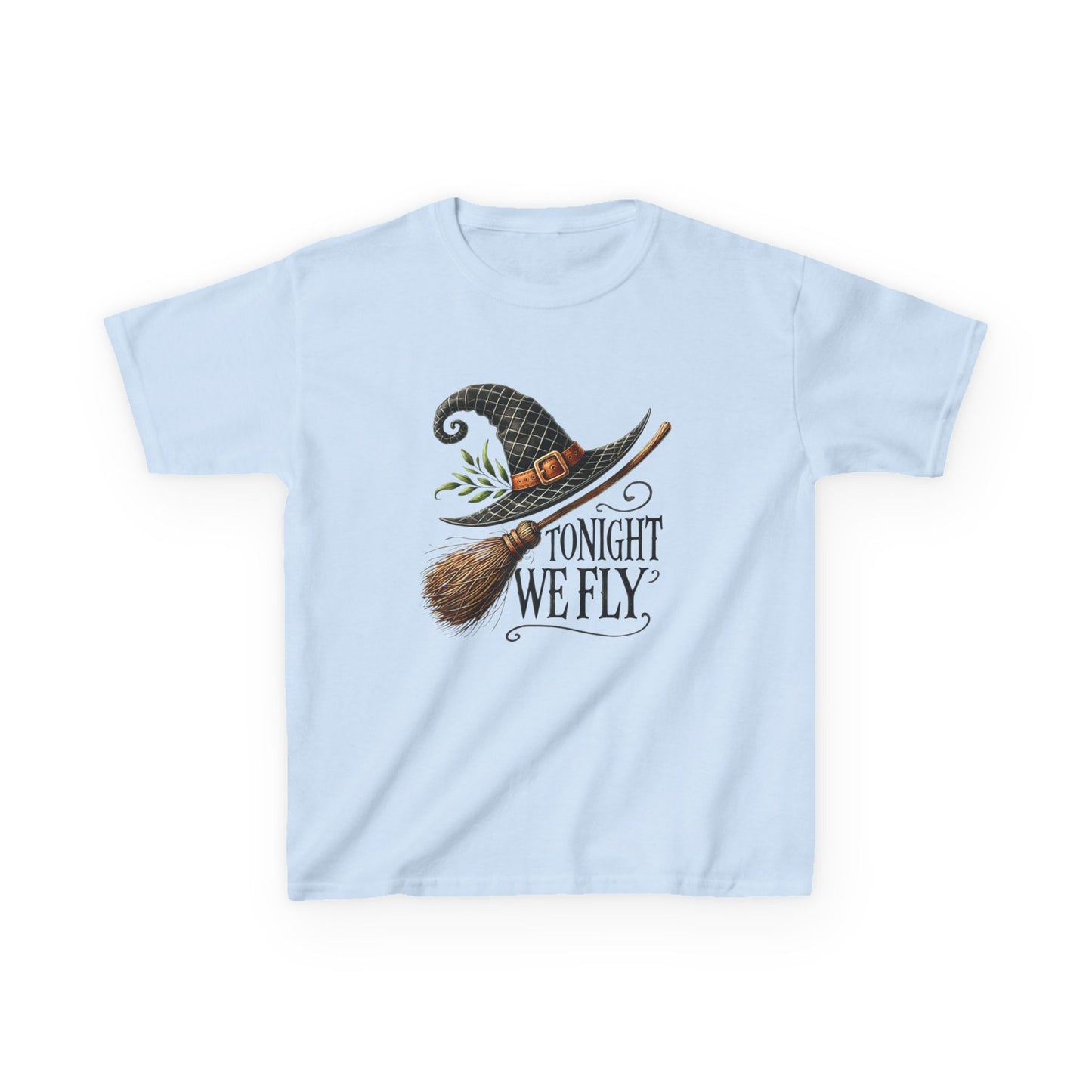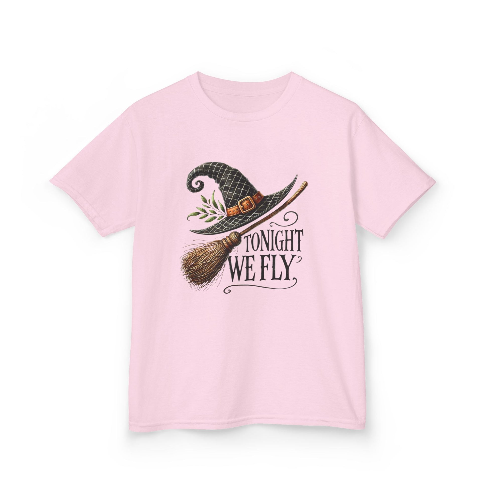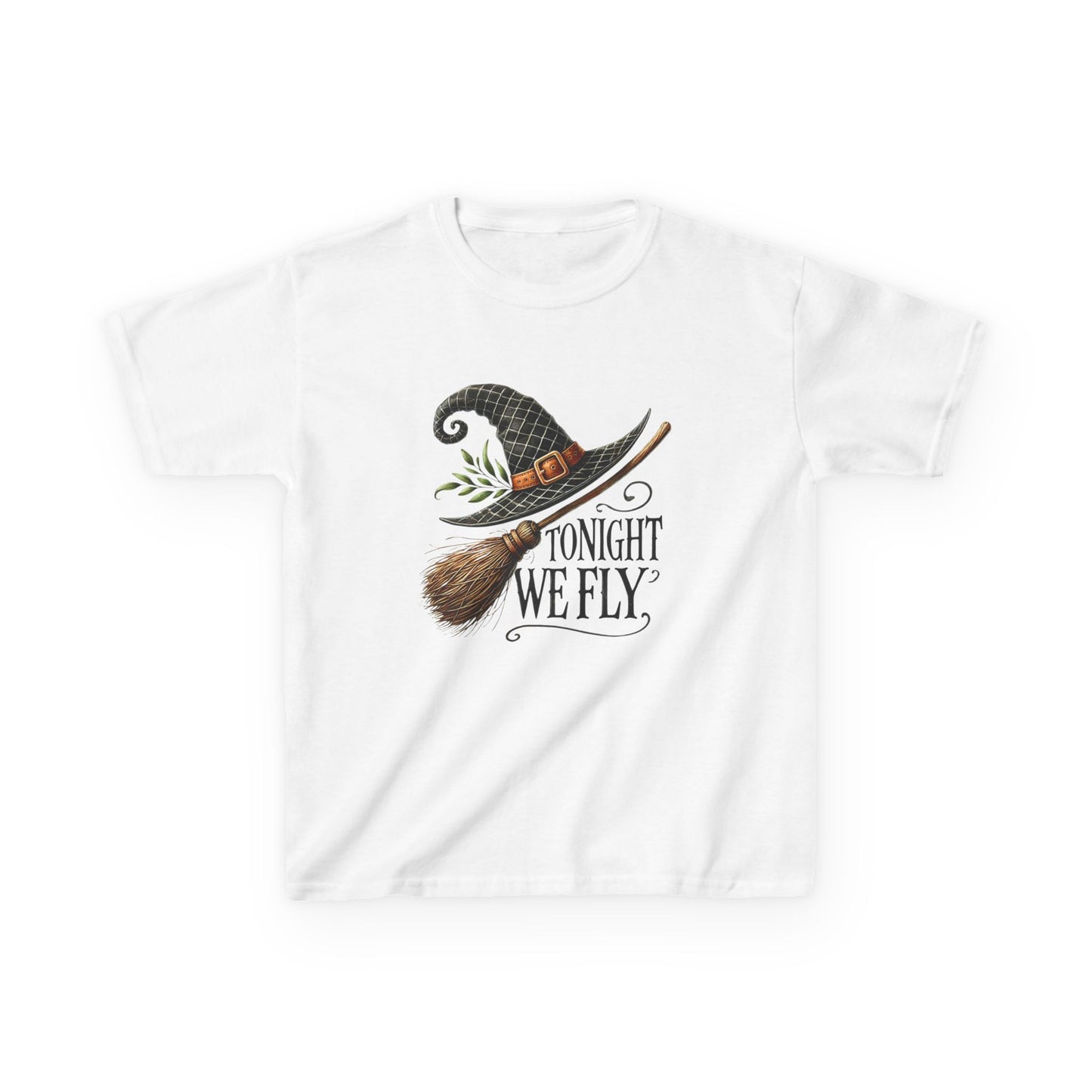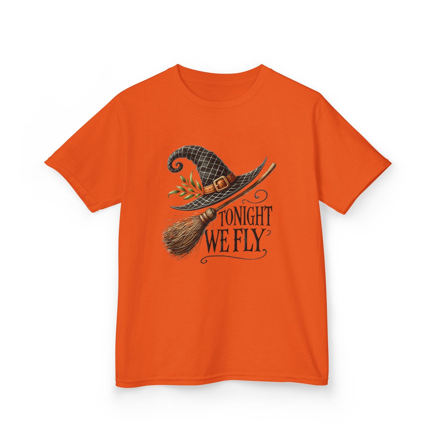 The Tonight We Fly Kids Halloween Tee is perfect for the little ones who are ready to take flight this Halloween. The spooky design on this tee captures the fun and excitement of the holiday, making it a must-have for any Halloween celebration. This tee is ideal for children looking to add a touch of spookiness to their wardrobe.