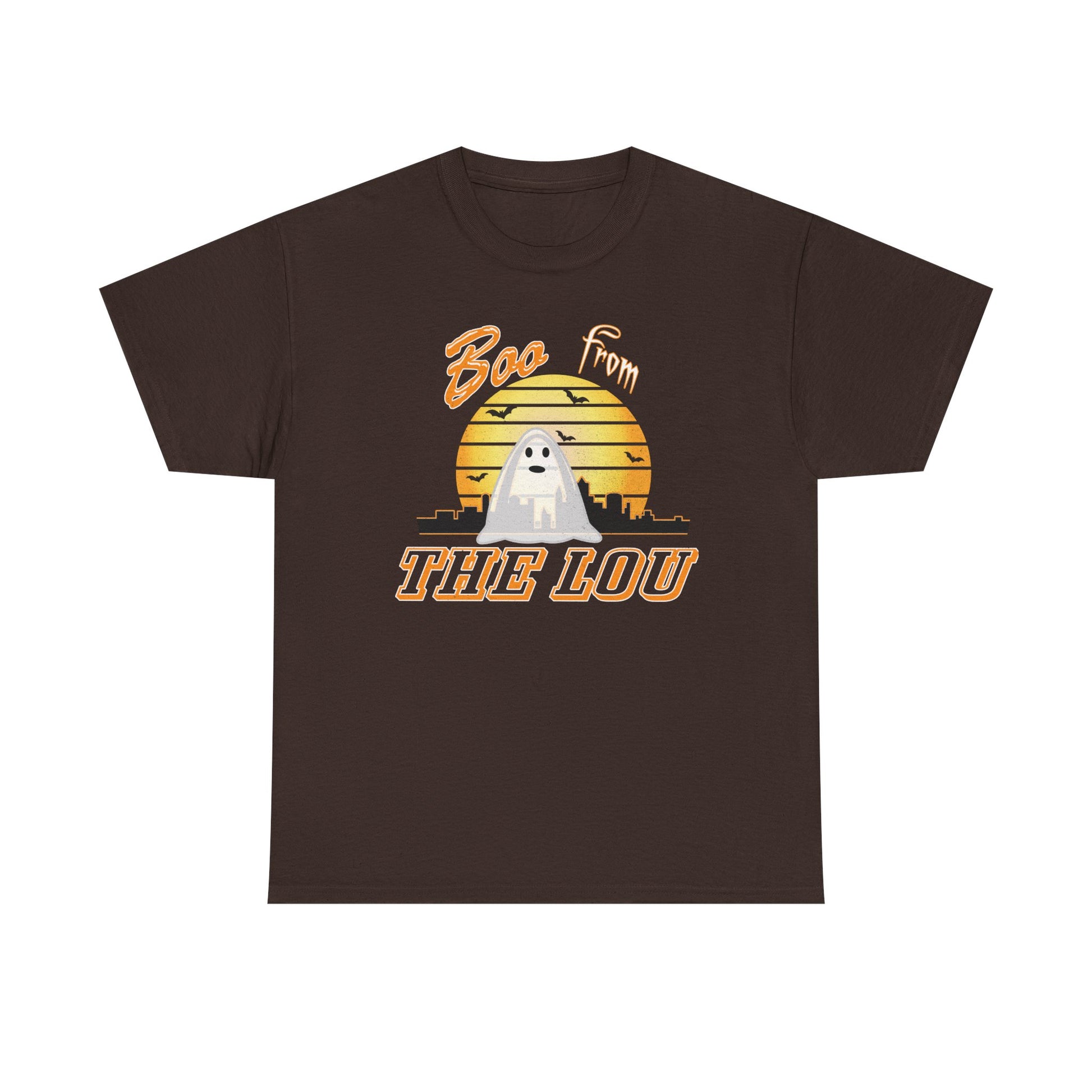 This Boo From The Lou Halloween Tee is perfect for those who love spooky season and want to show off their Halloween spirit. Made with heavy cotton fabric, this unisex tee ensures comfort and durability for year-round wear. The classic fit and ribbed knit collar make it versatile for casual or semi-formal occasions. Ideal for adults looking to celebrate Halloween in style.