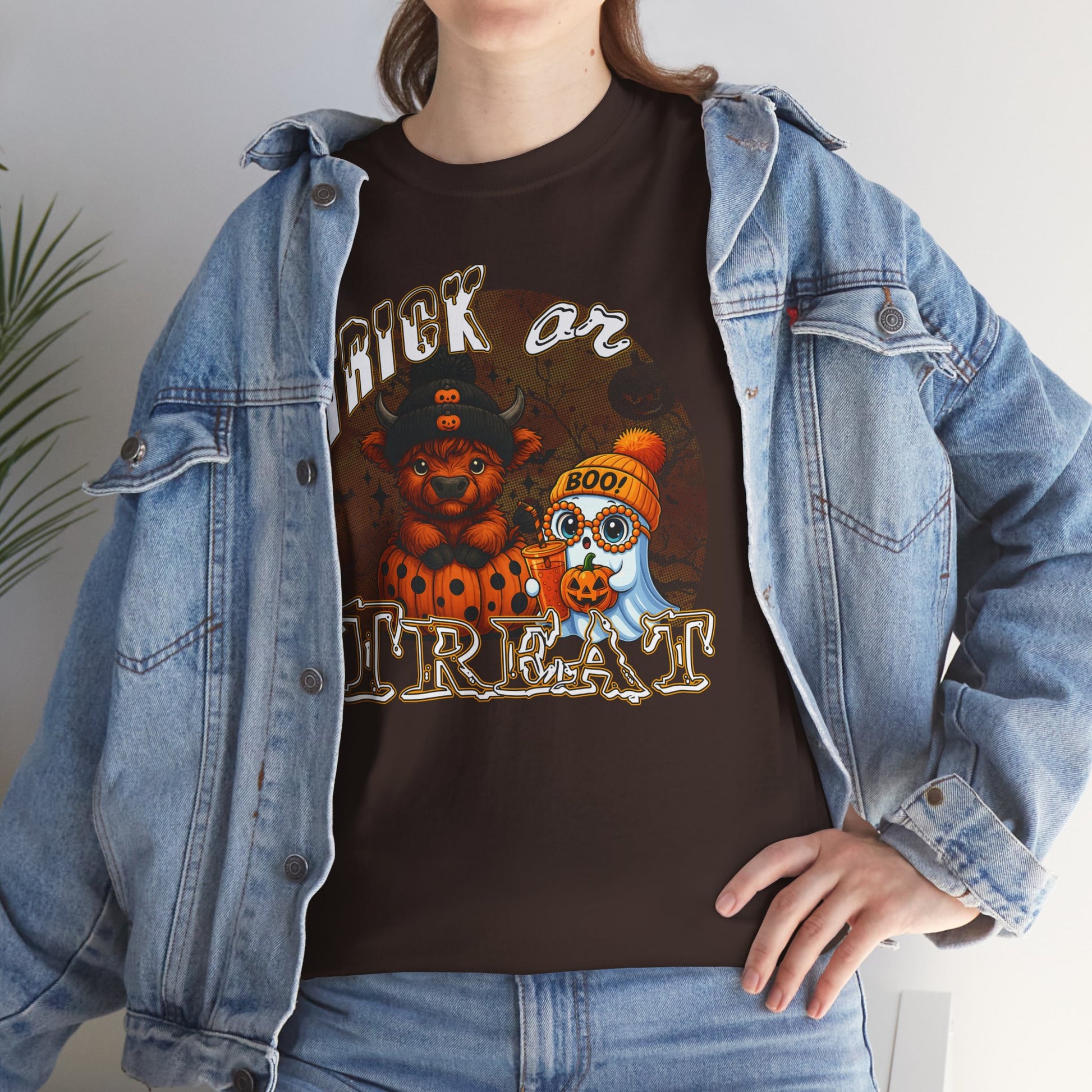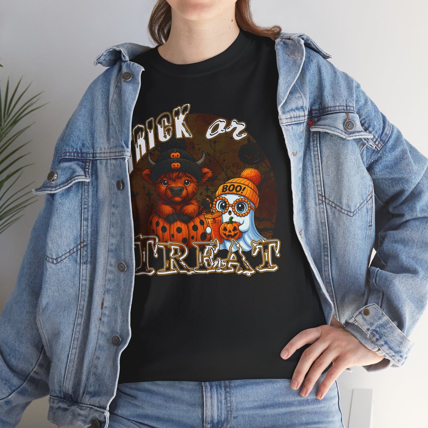 Celebrate Halloween in style with this Trick or Treat Halloween Graphic T-Shirt. Made from high-quality cotton fabric, this unisex tee is perfect for adults looking for a spooky and fun outfit for the holiday season. The classic fit and tear-away label ensure a comfortable wear, while the detailed prints using Direct-to-Film and Direct-to-Garment techniques make the design crisp and vibrant. Perfect for Halloween parties, trick or treating, and any Halloween celebration.