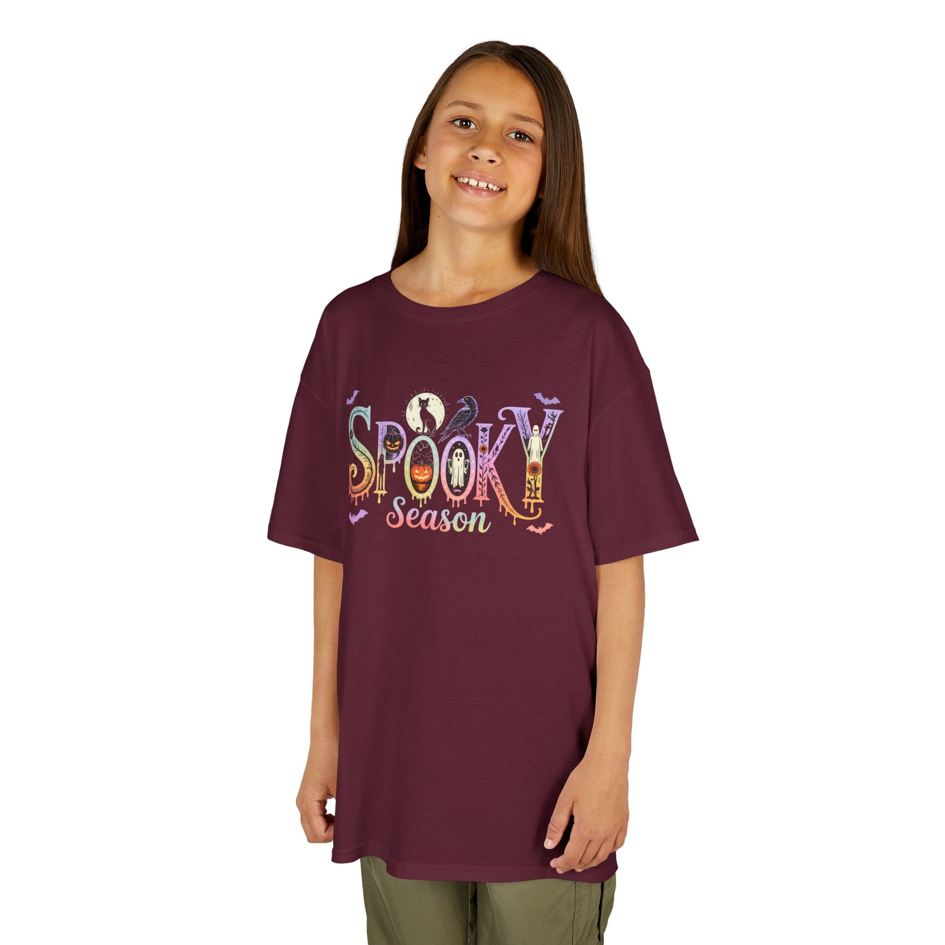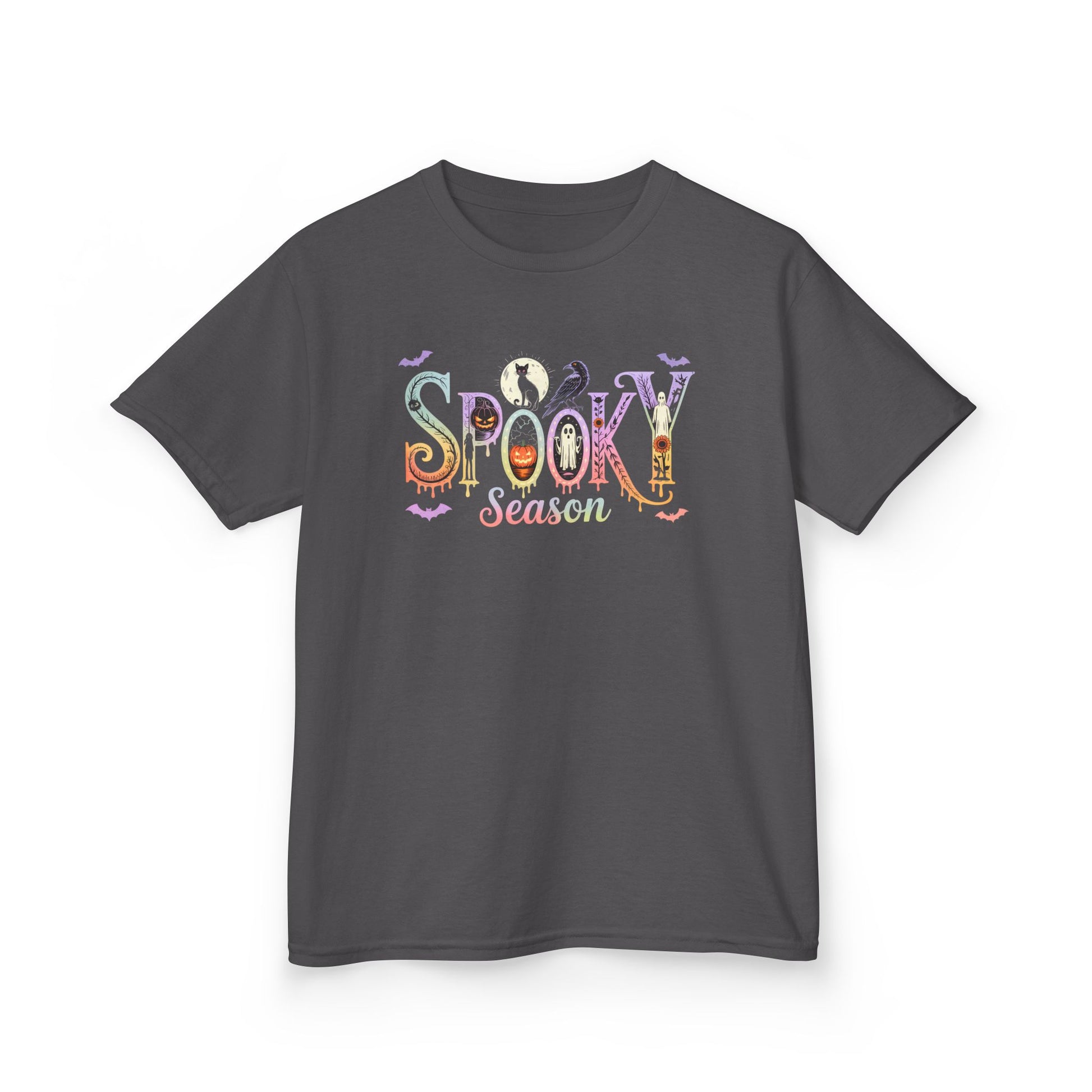 Get ready for the spooky season with this Halloween-themed Kids Tee. Made with 100% soft, midweight US cotton, this tee features a classic fit and crew neckline for everyday comfort. Perfect for children to wear during Halloween celebrations.
