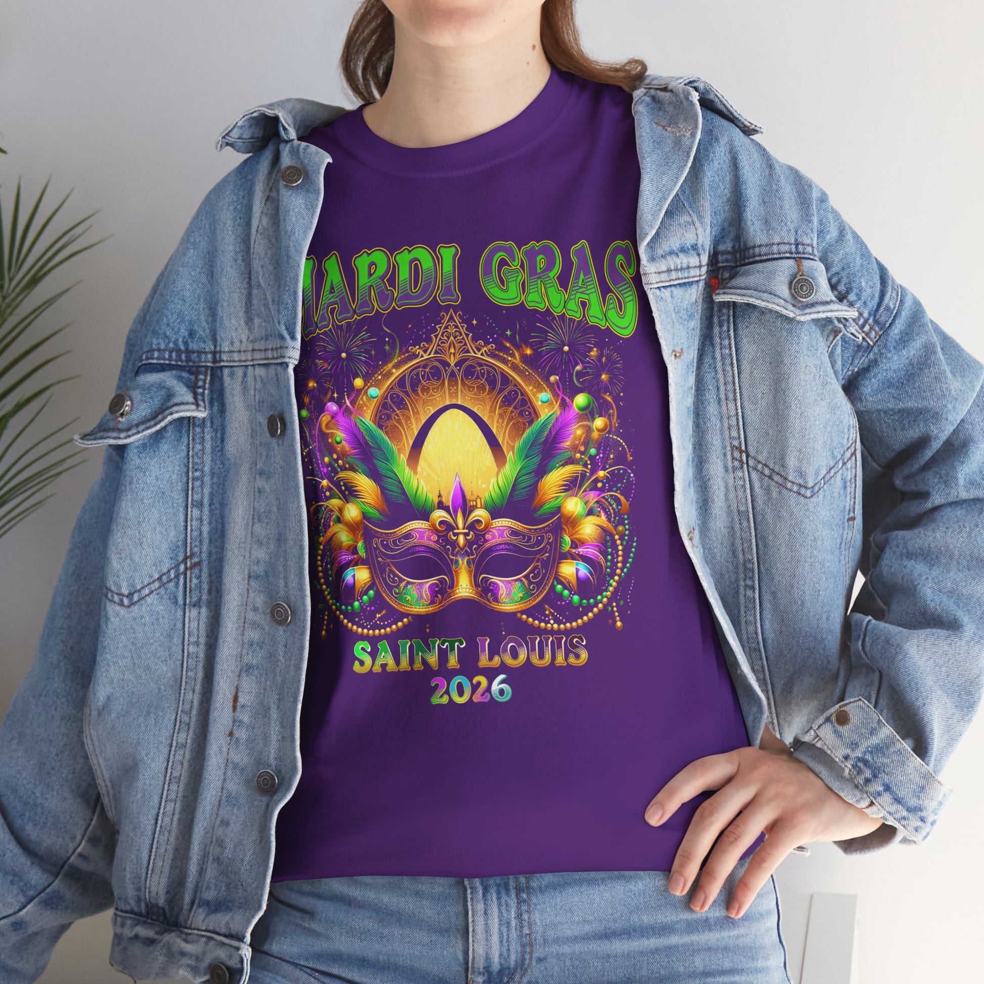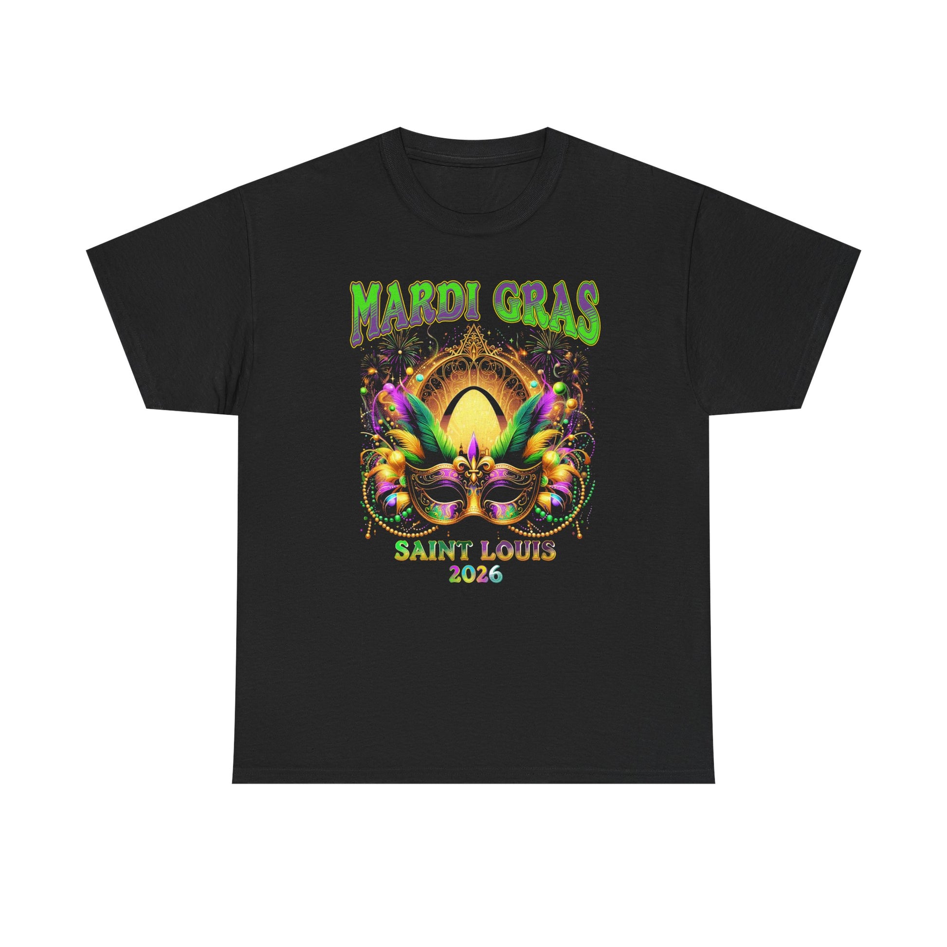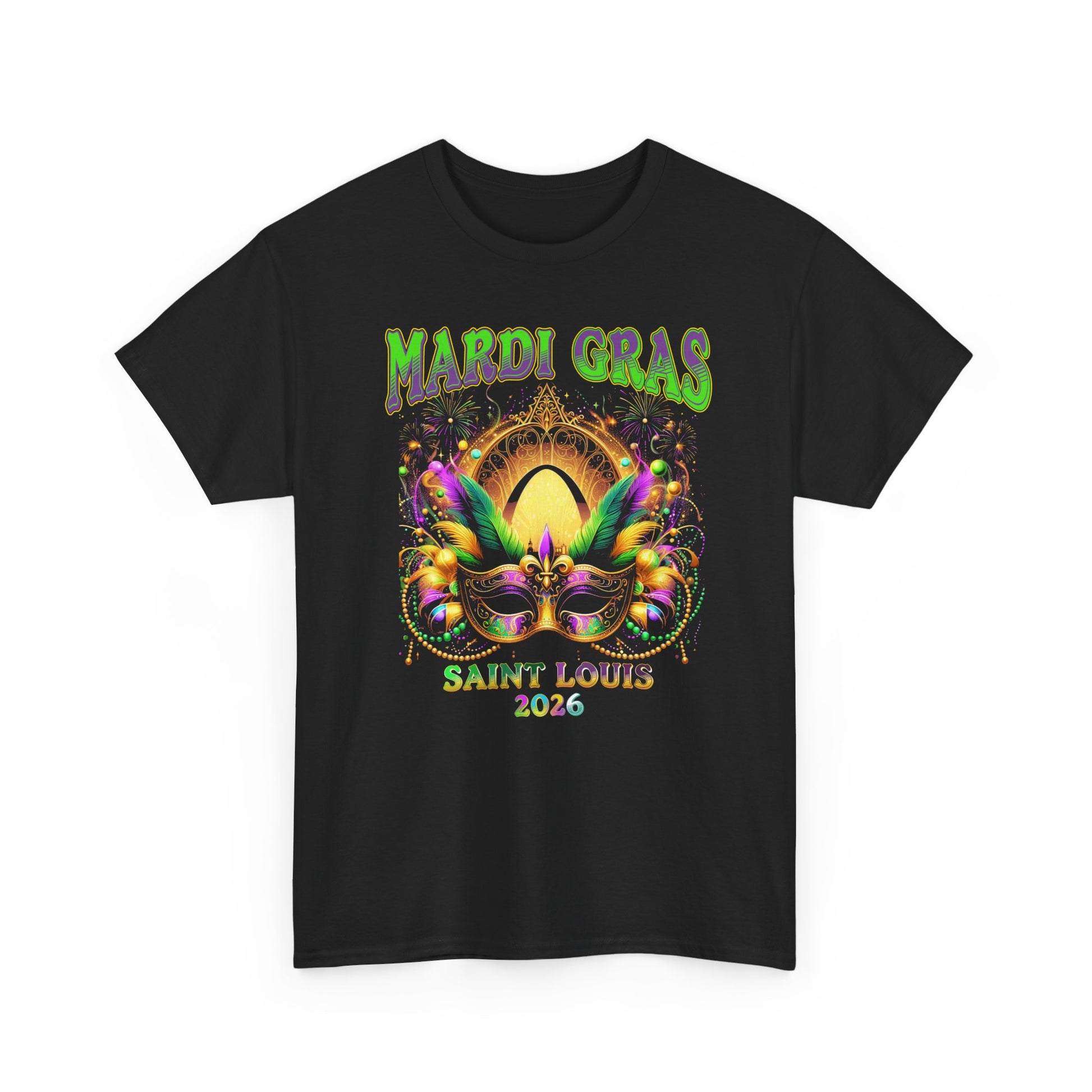 Mardi Gras Graphic Tee — Festive Carnival Mask & Beads Shirt