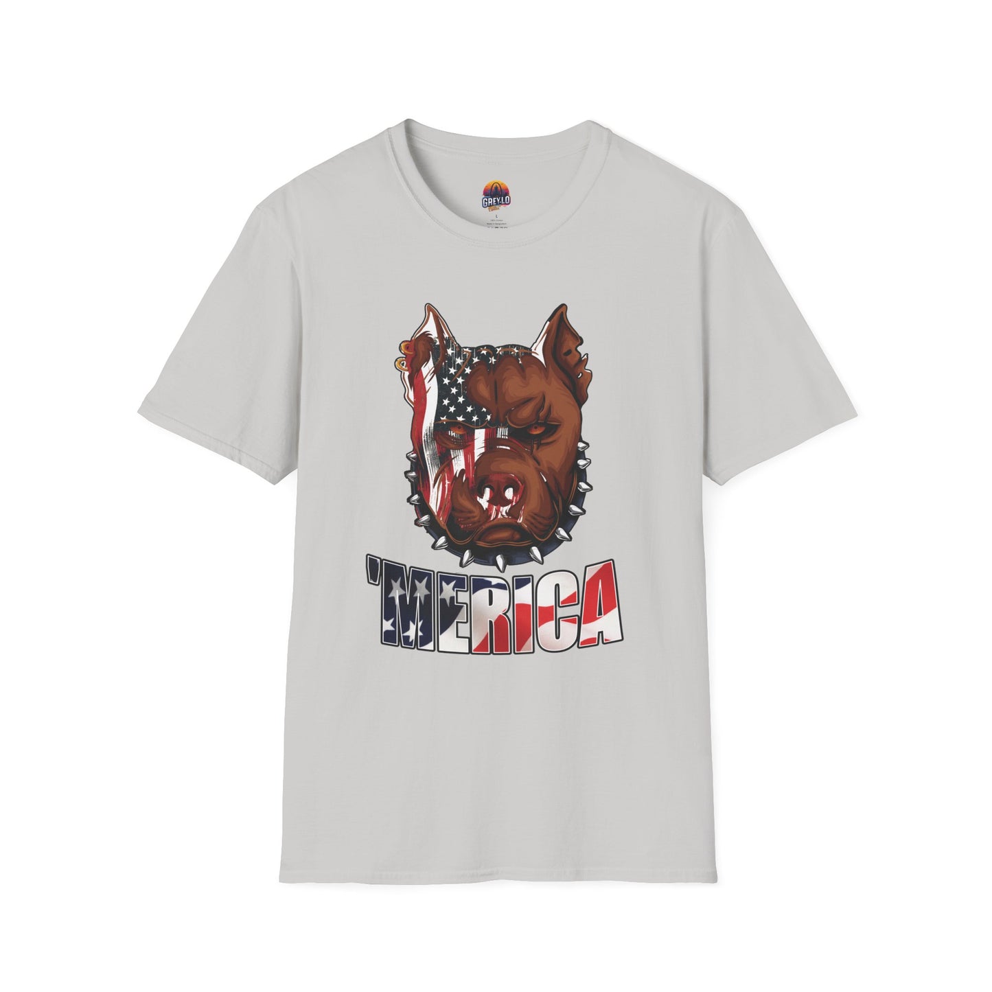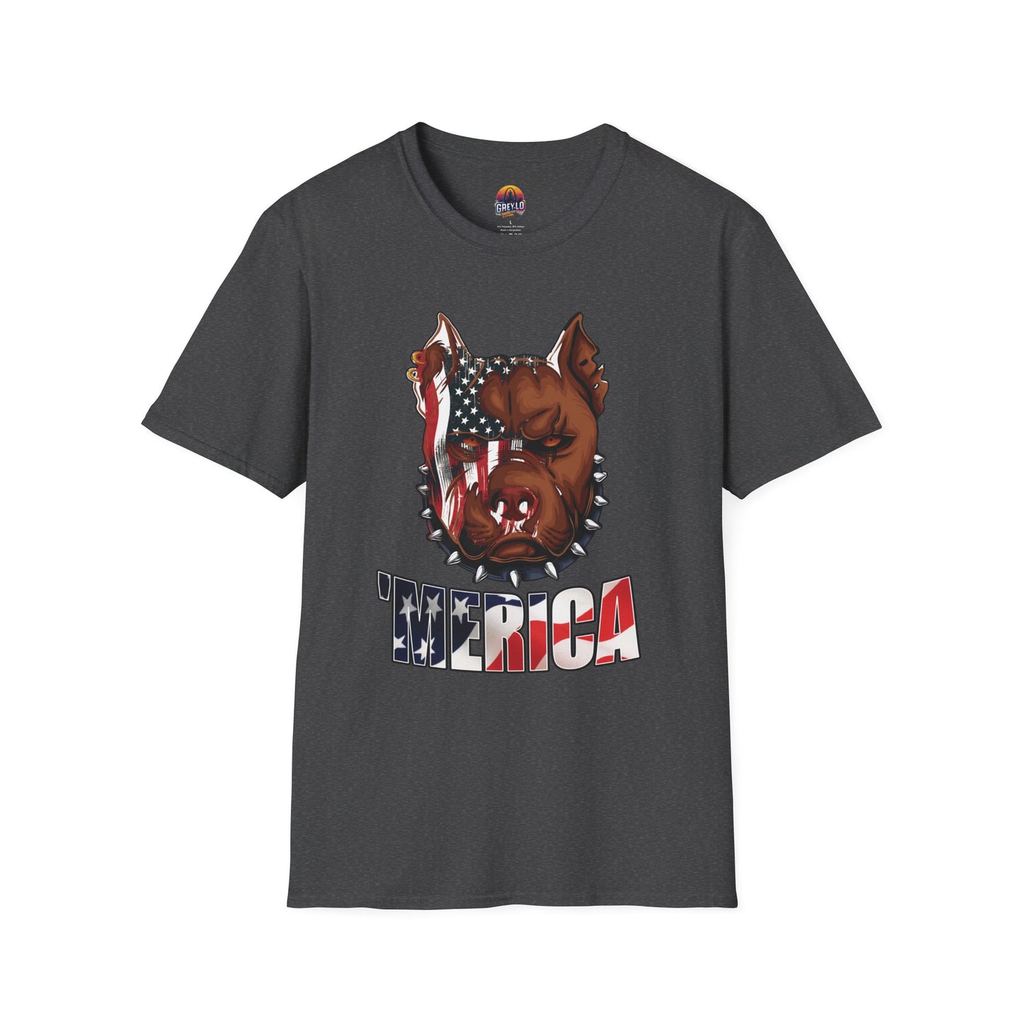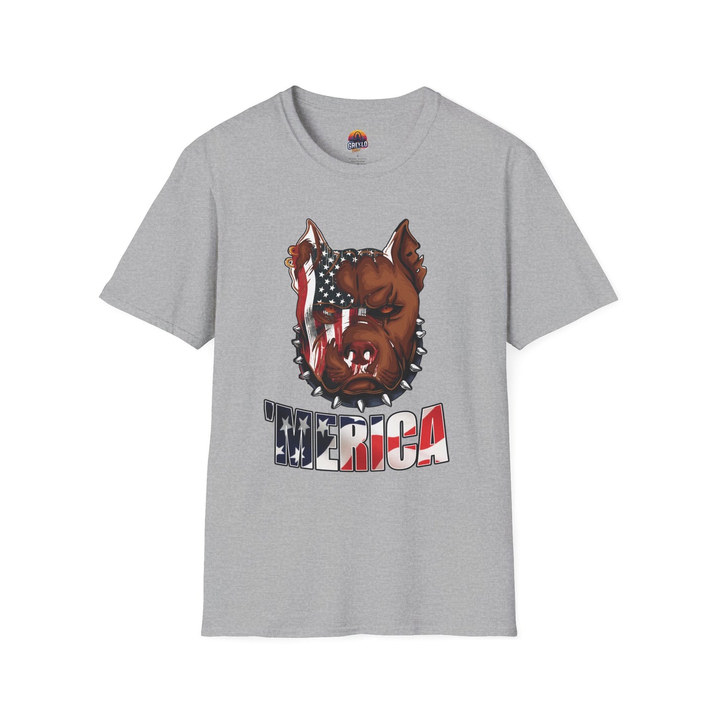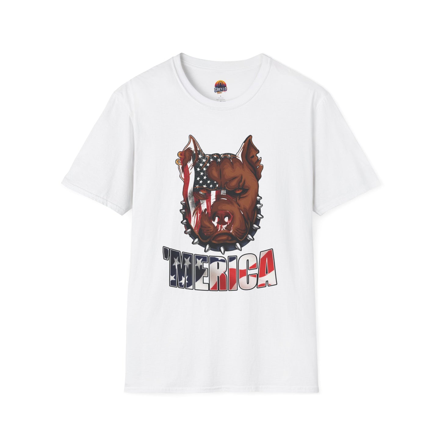 The Merica Bully Graphic Tee is offered on a Gildan 64000 T-Shirt where Comfort Meets Style