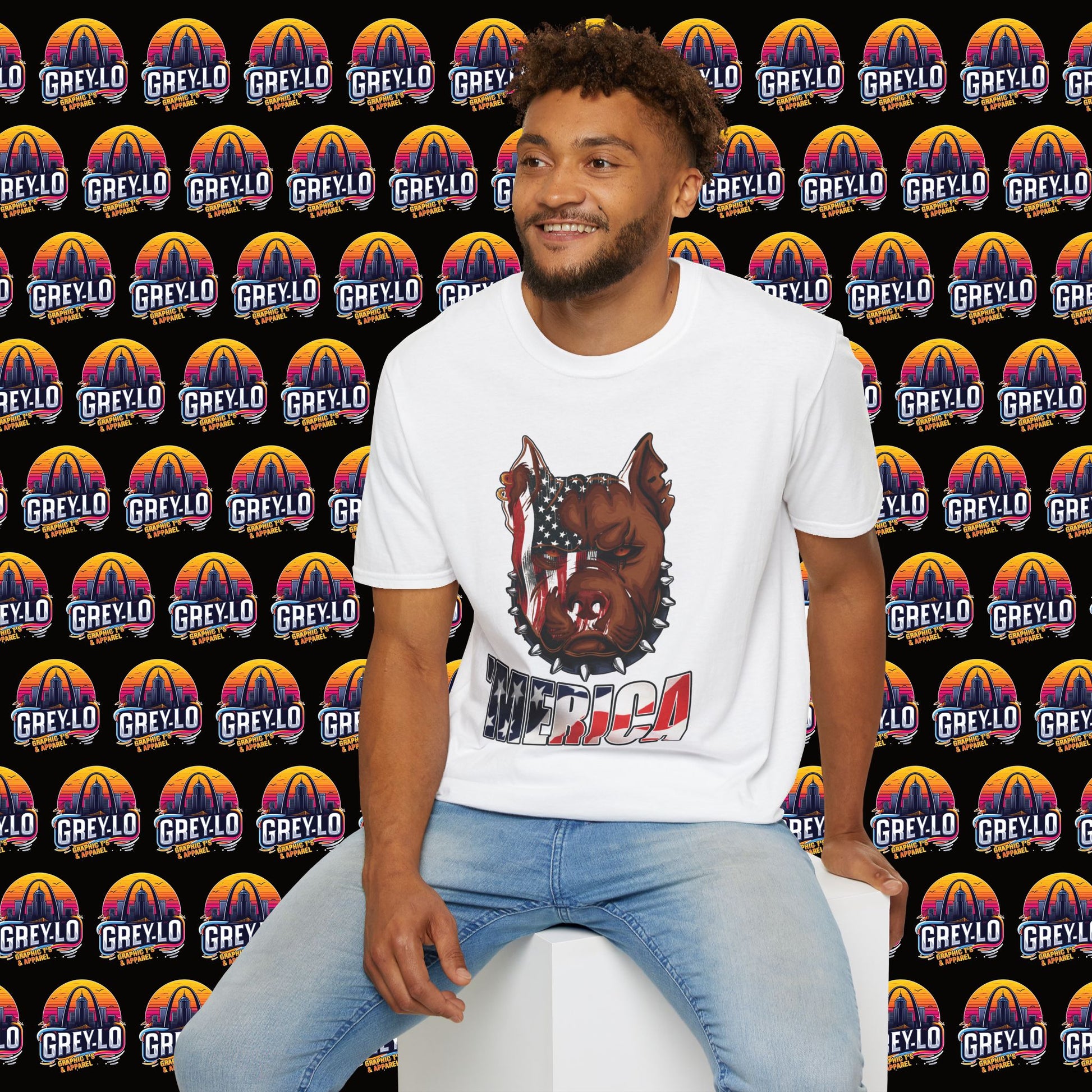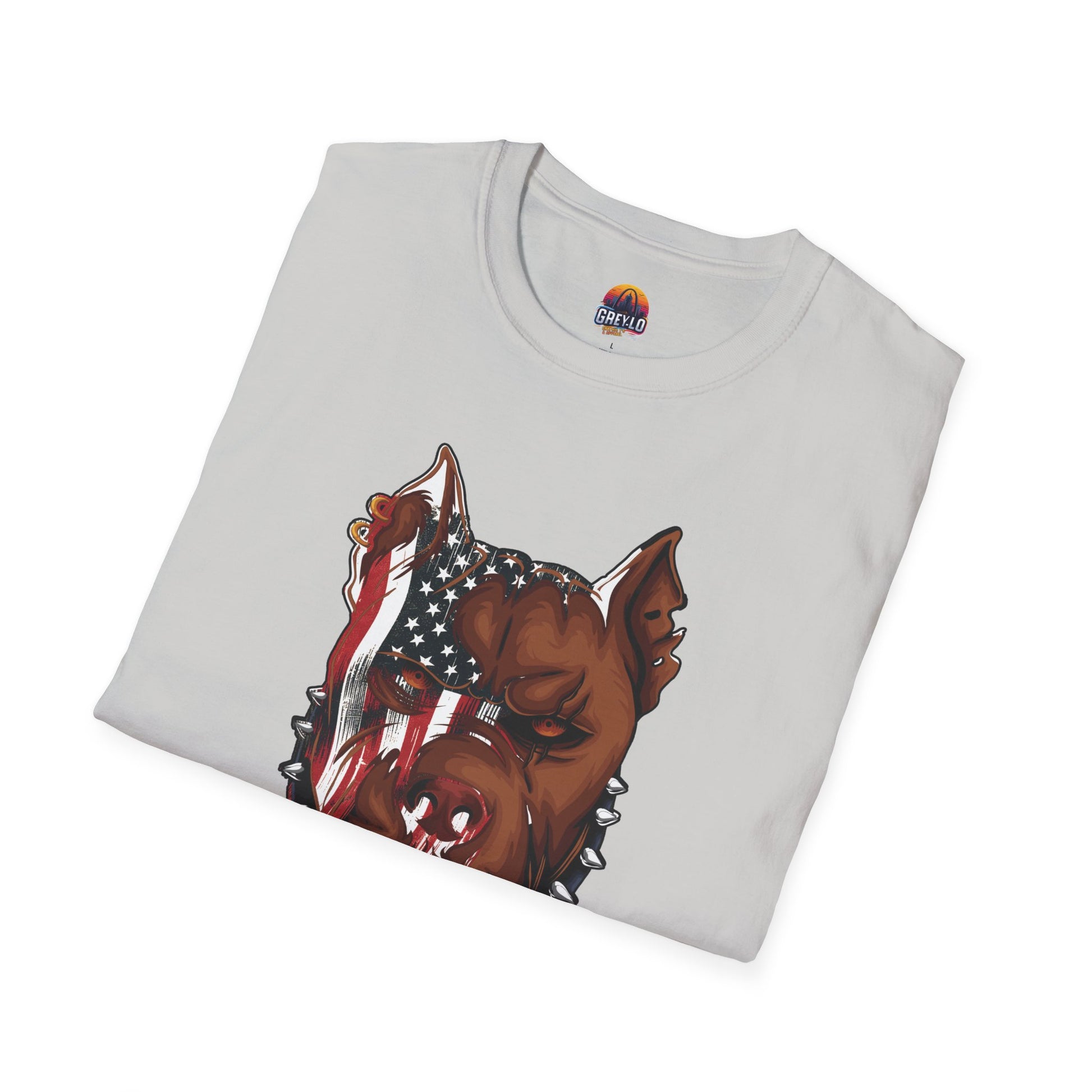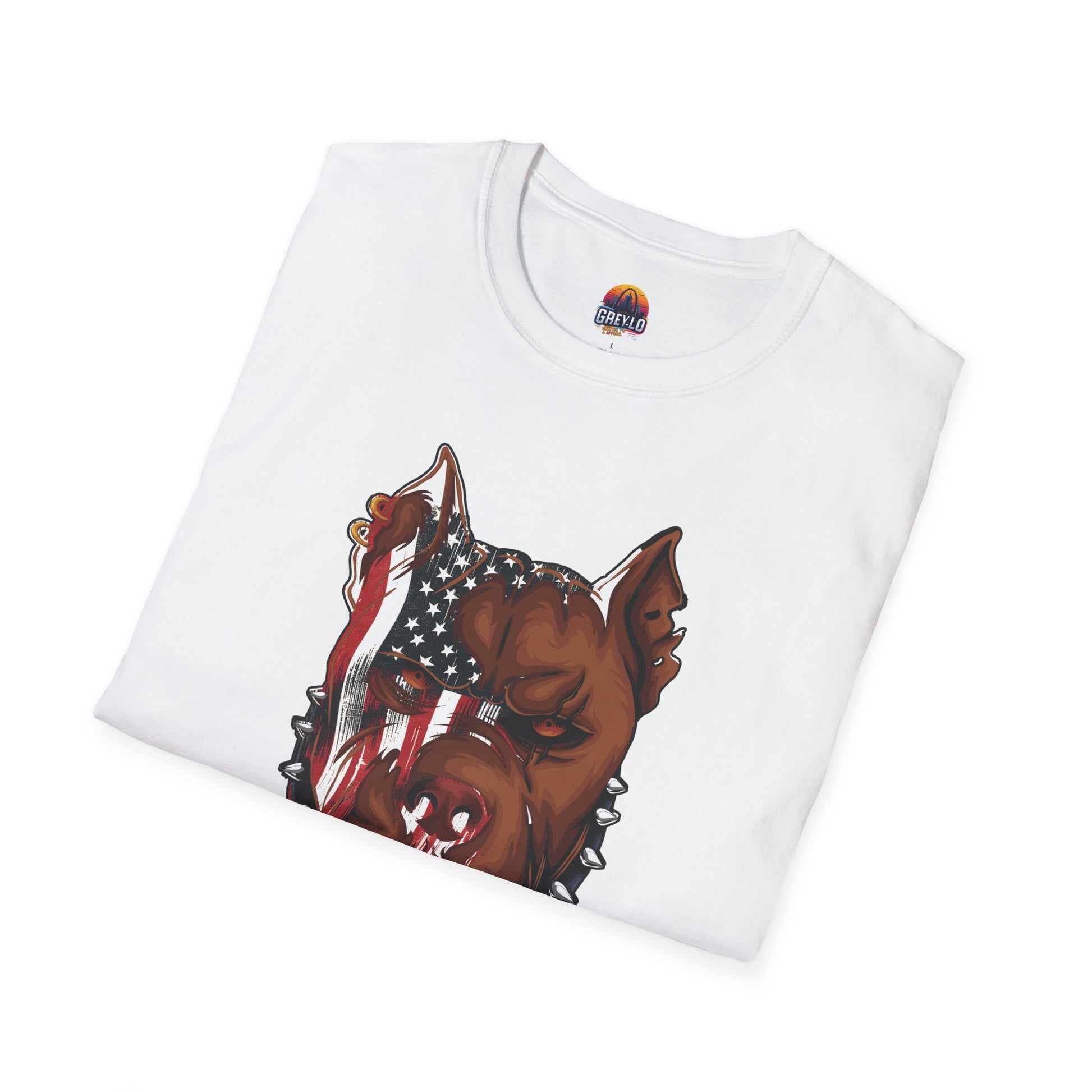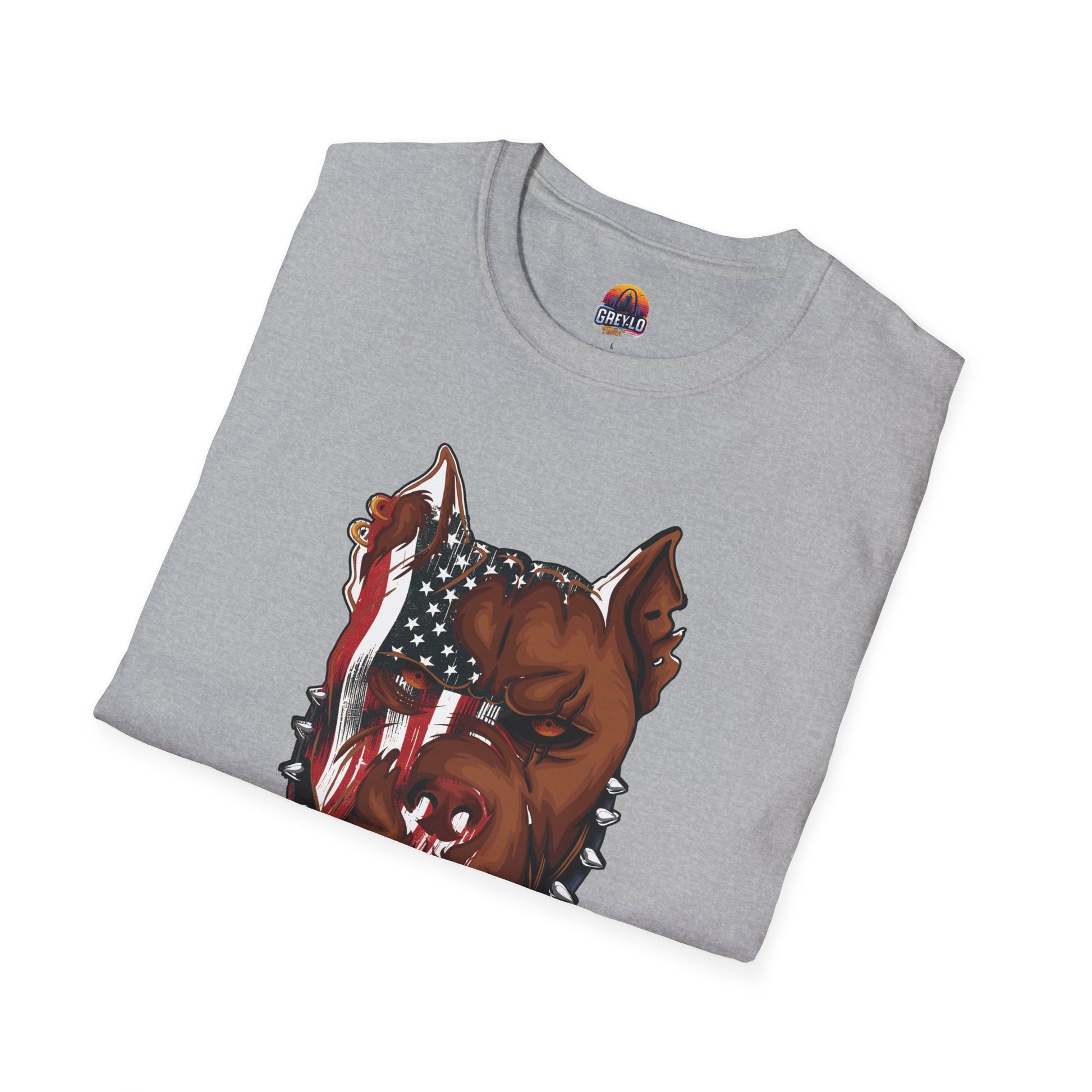 The Merica Bully Graphic Tee is offered on a Gildan 64000 T-Shirt where Comfort Meets Style