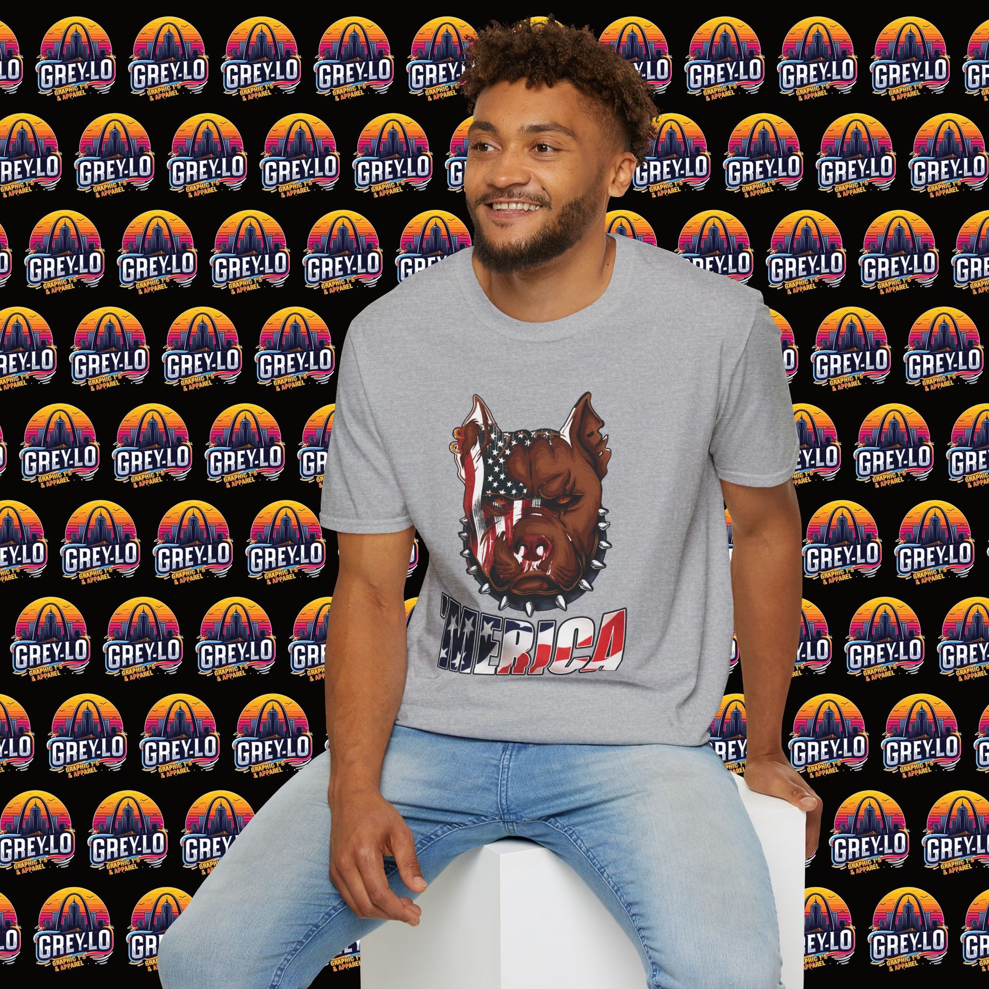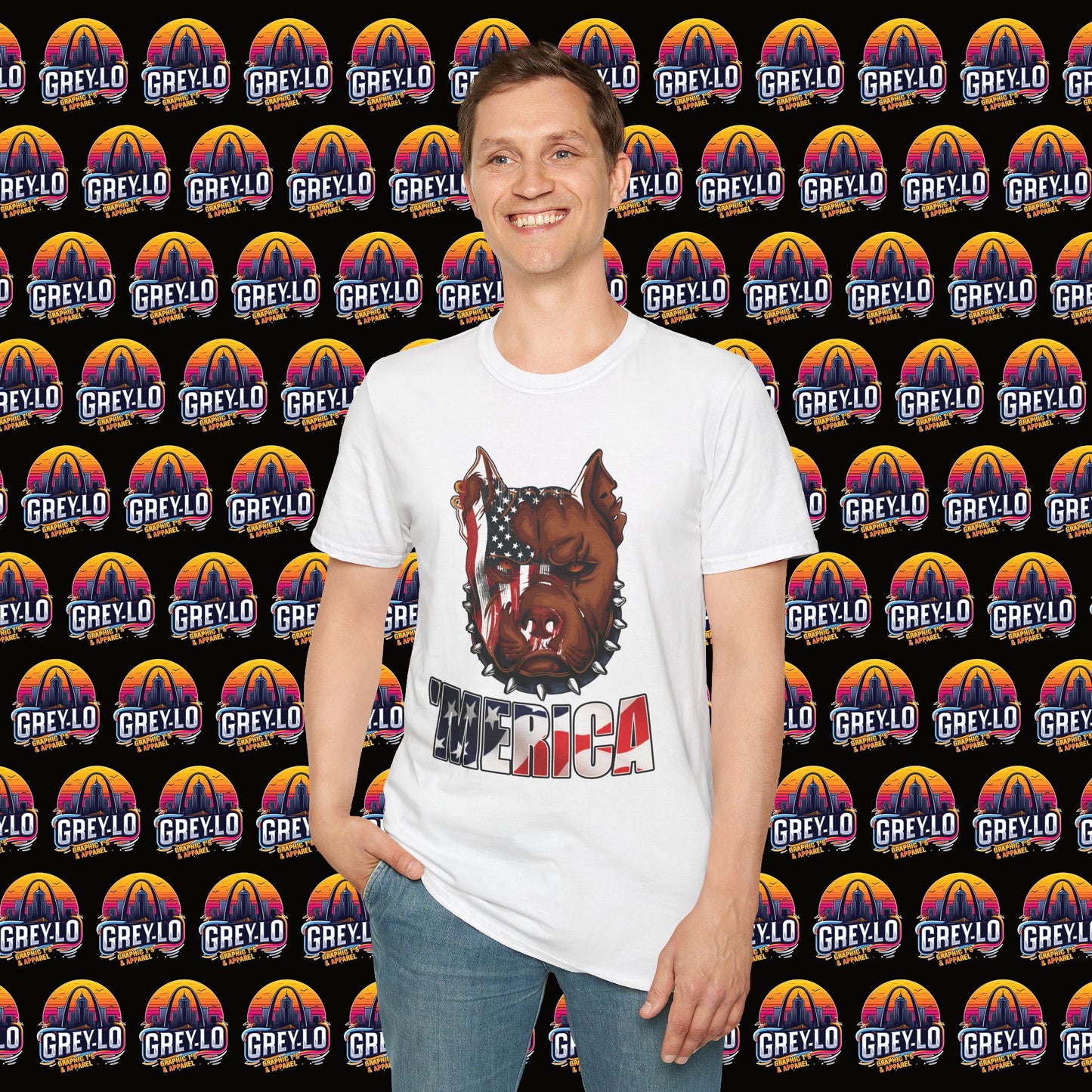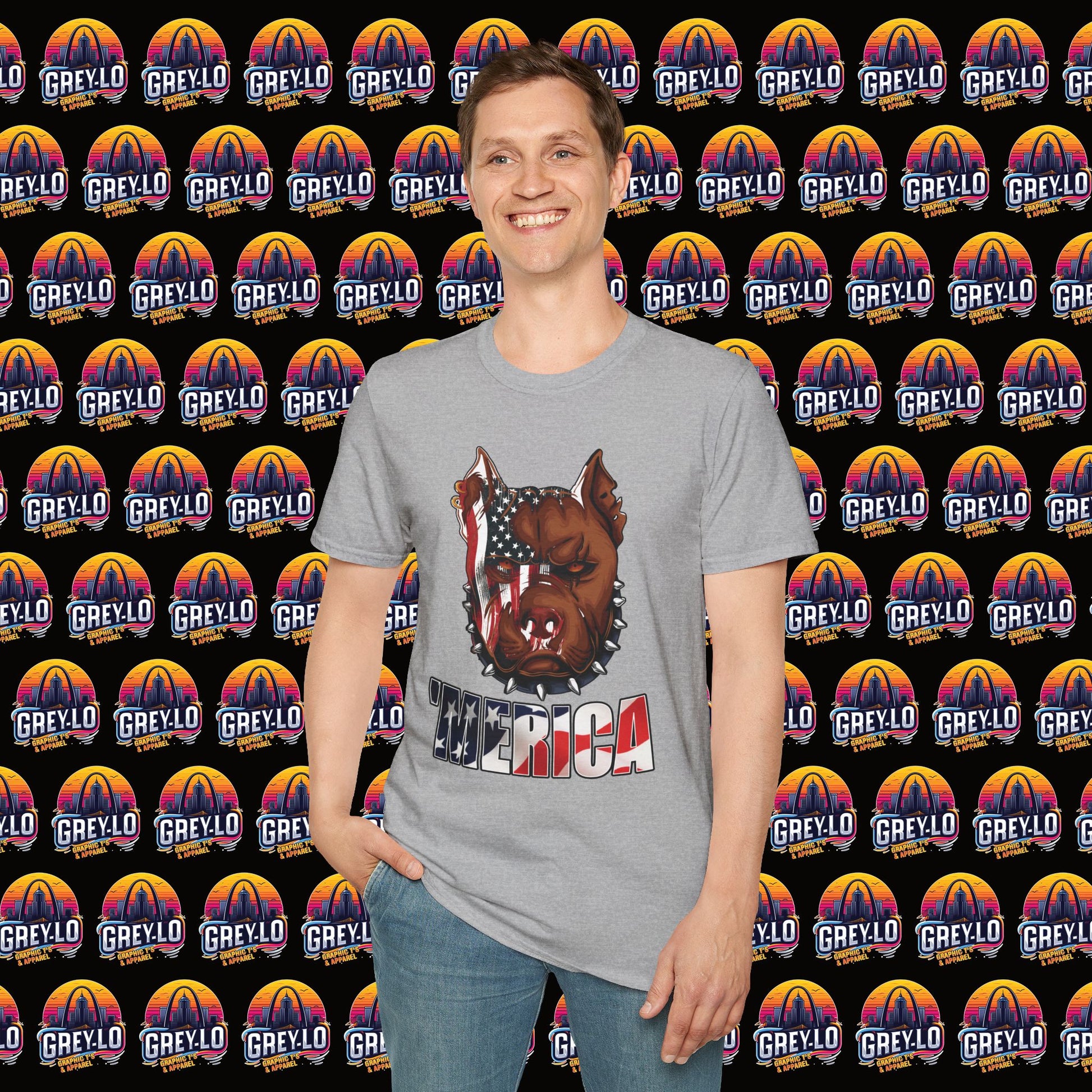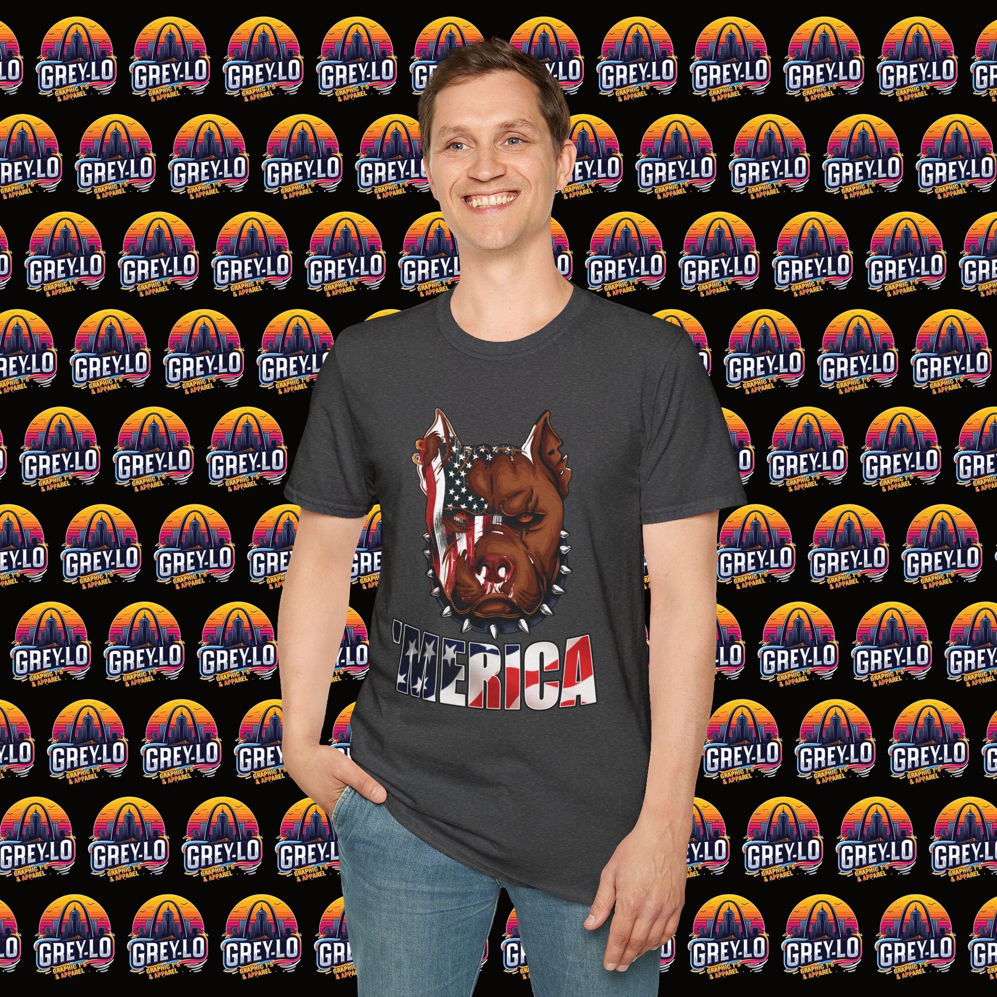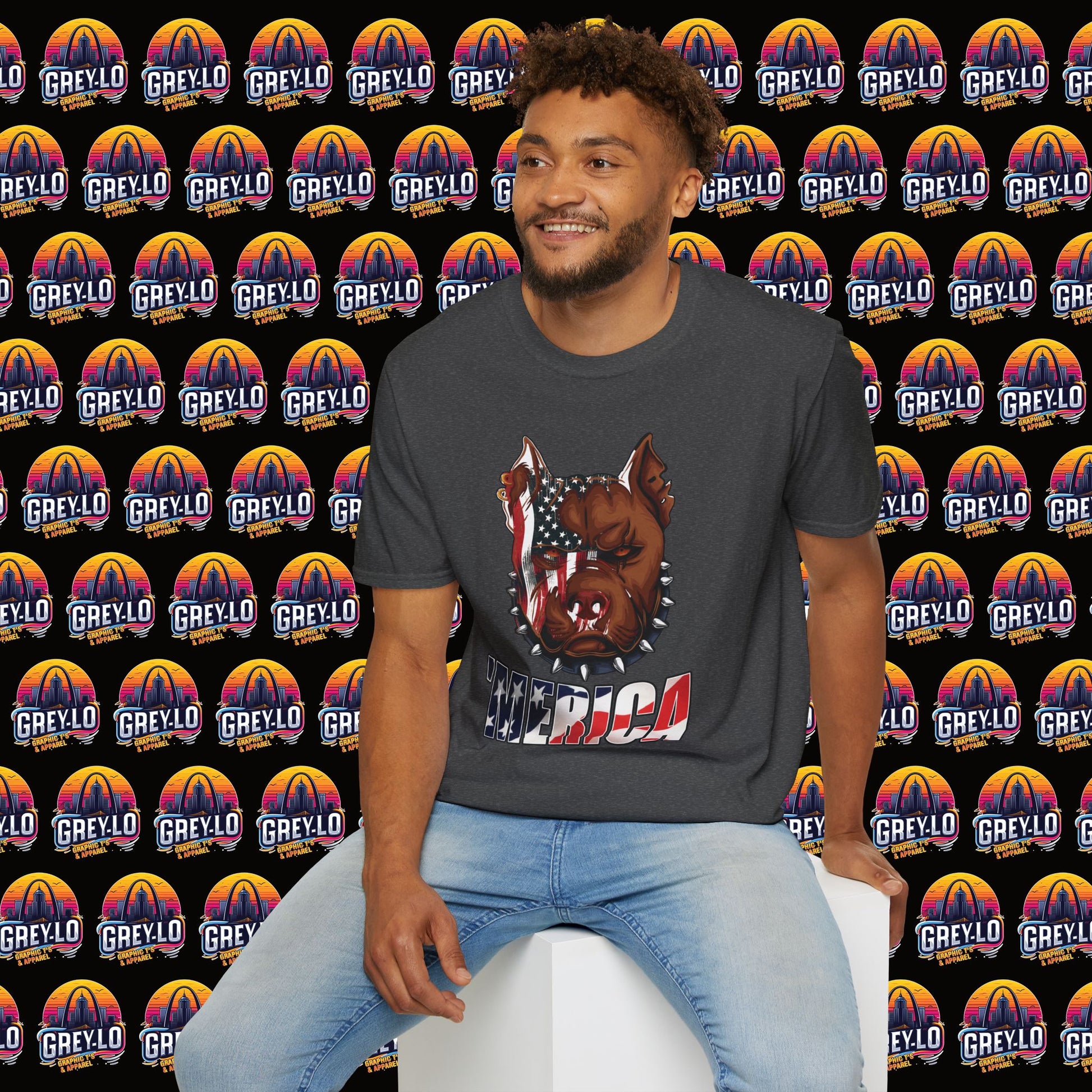 The Merica Bully Graphic Tee is offered on a Gildan 64000 T-Shirt where Comfort Meets Style