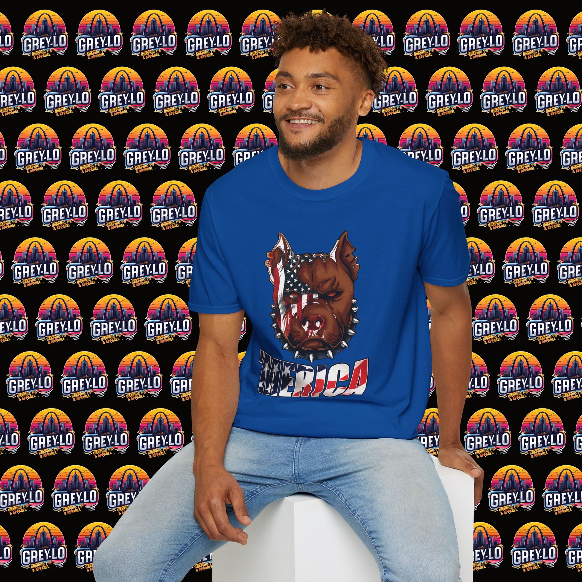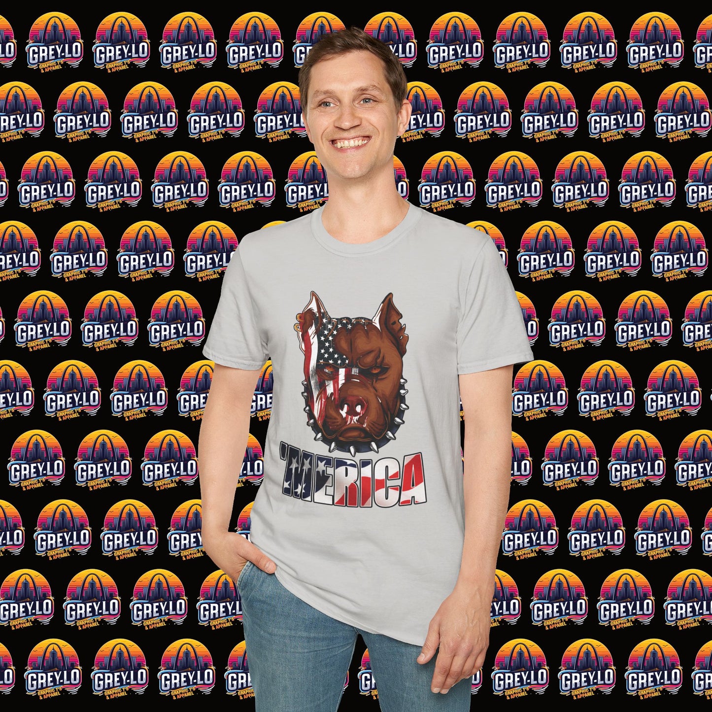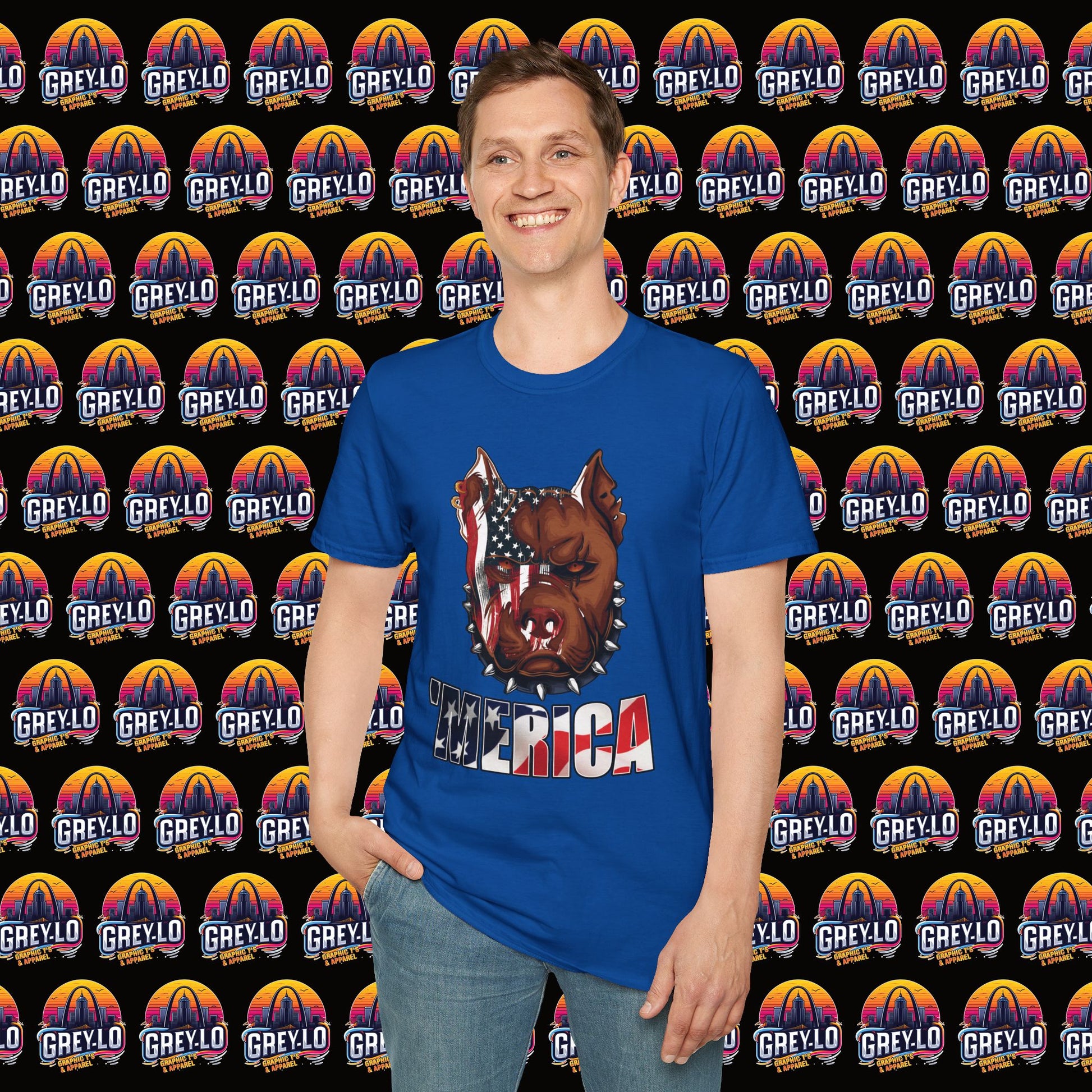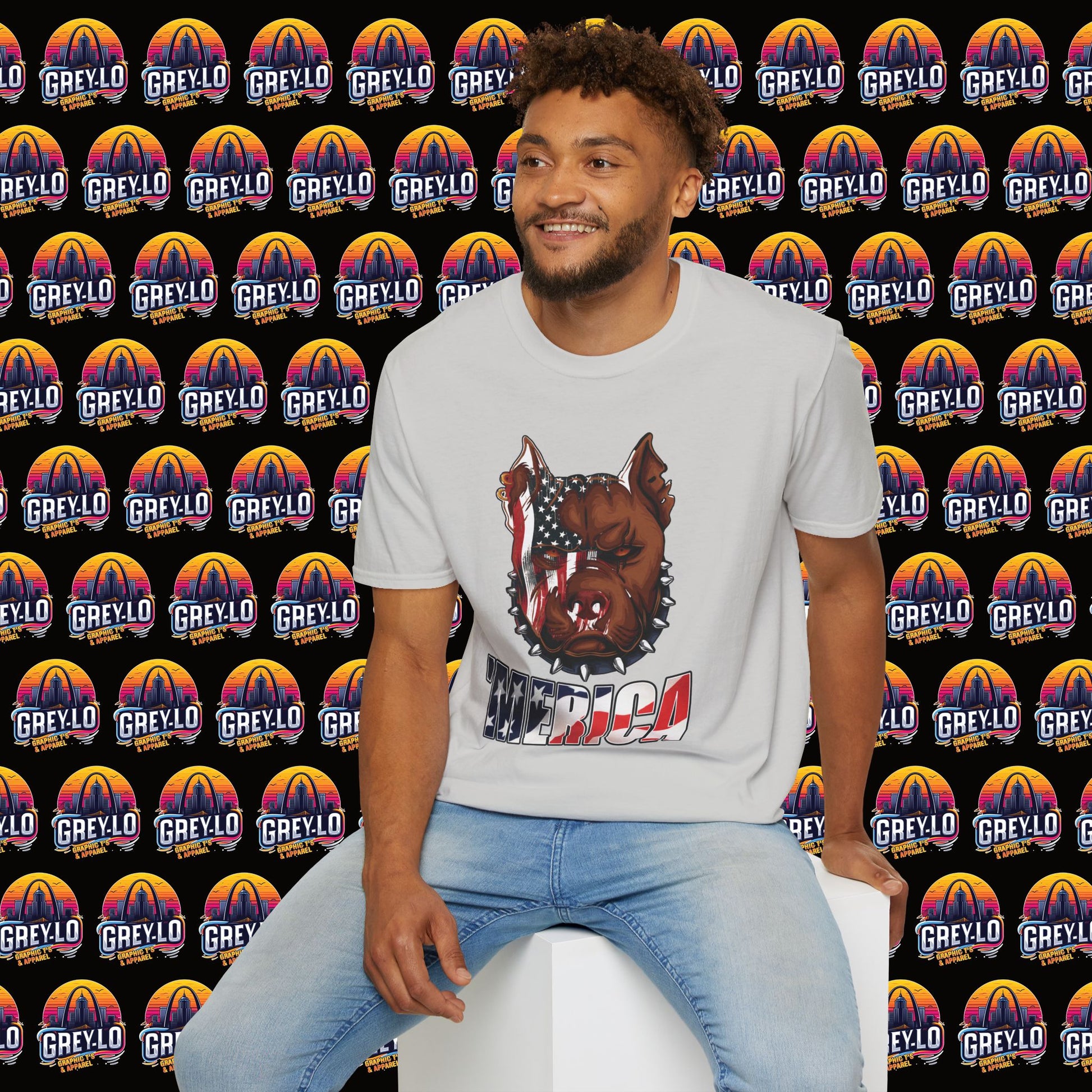 The Merica Bully Graphic Tee is offered on a Gildan 64000 T-Shirt where Comfort Meets Style
