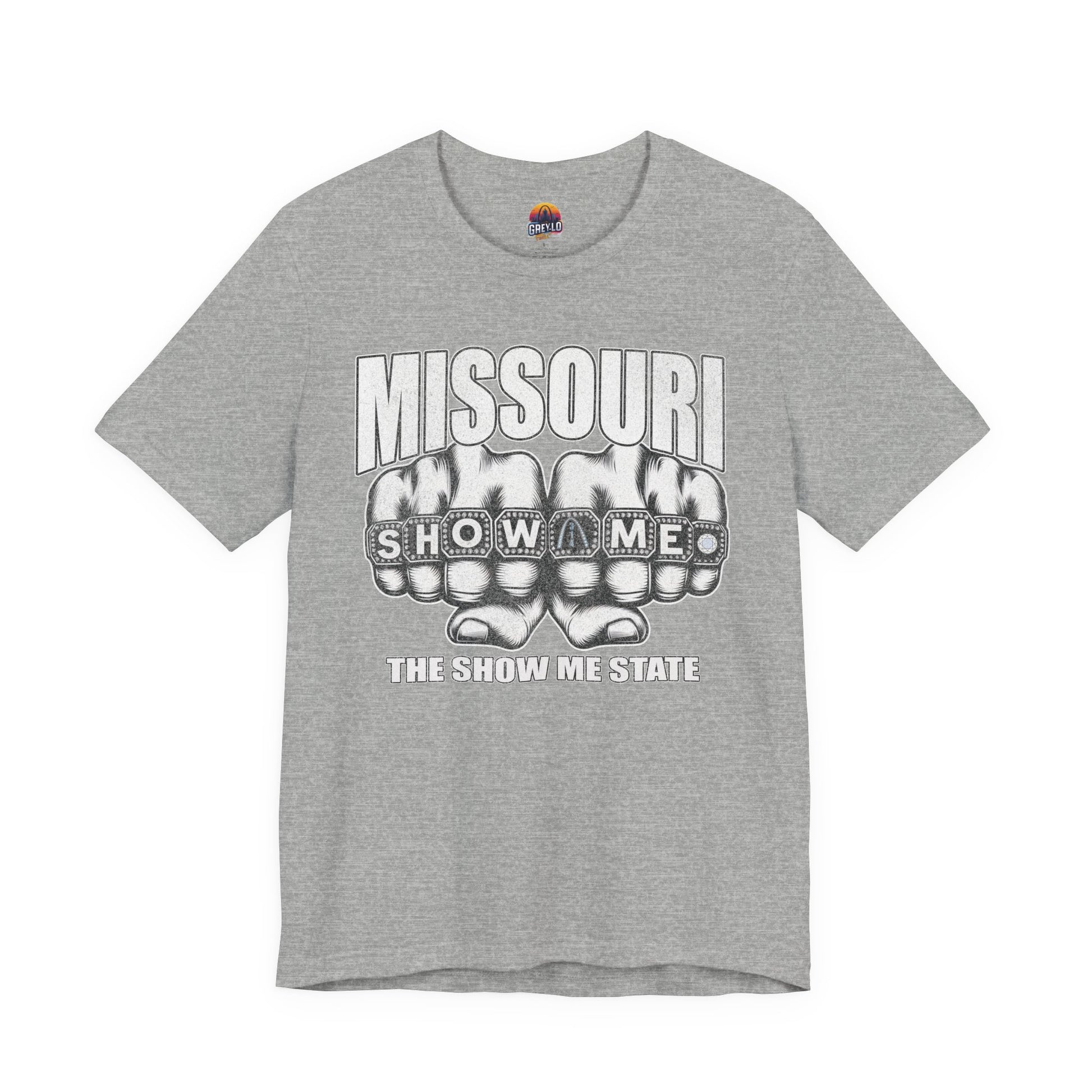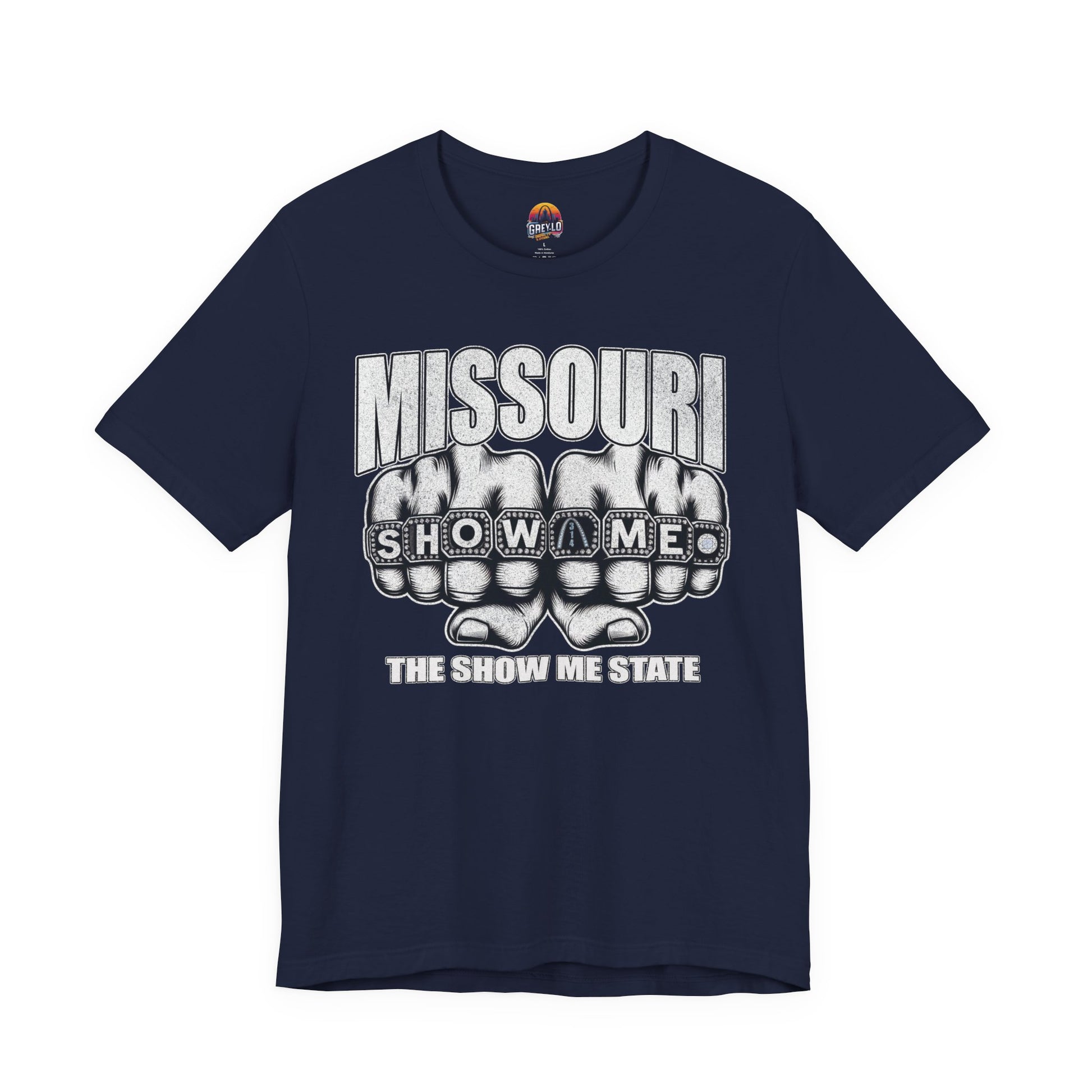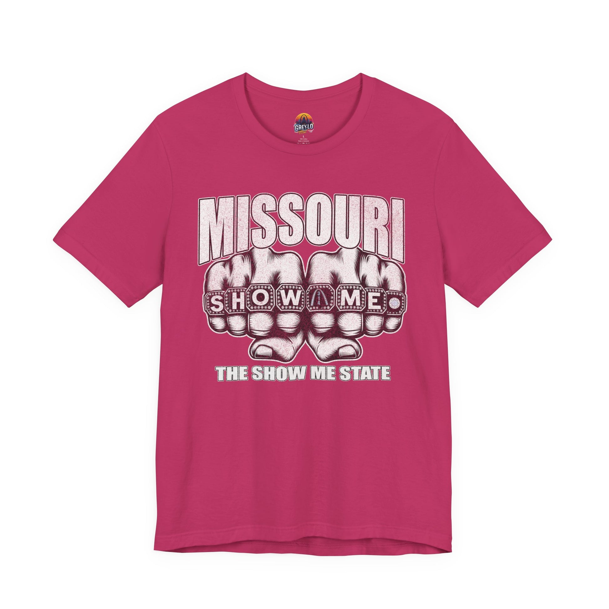 This Missouri The Show Me State Tee on a Bella Canvas 3001 offers a casual and comfortable style, perfect for everyday wear or as a souvenir for travelers visiting the state. The unisex fit and lightweight fabric make it suitable for both men and women, while the vibrant design adds a touch of personality to any outfit. Ideal for those interested in state pride, travel enthusiasts, and anyone looking for a versatile and stylish tee. Great for holidays, vacations, and everyday casual wear.