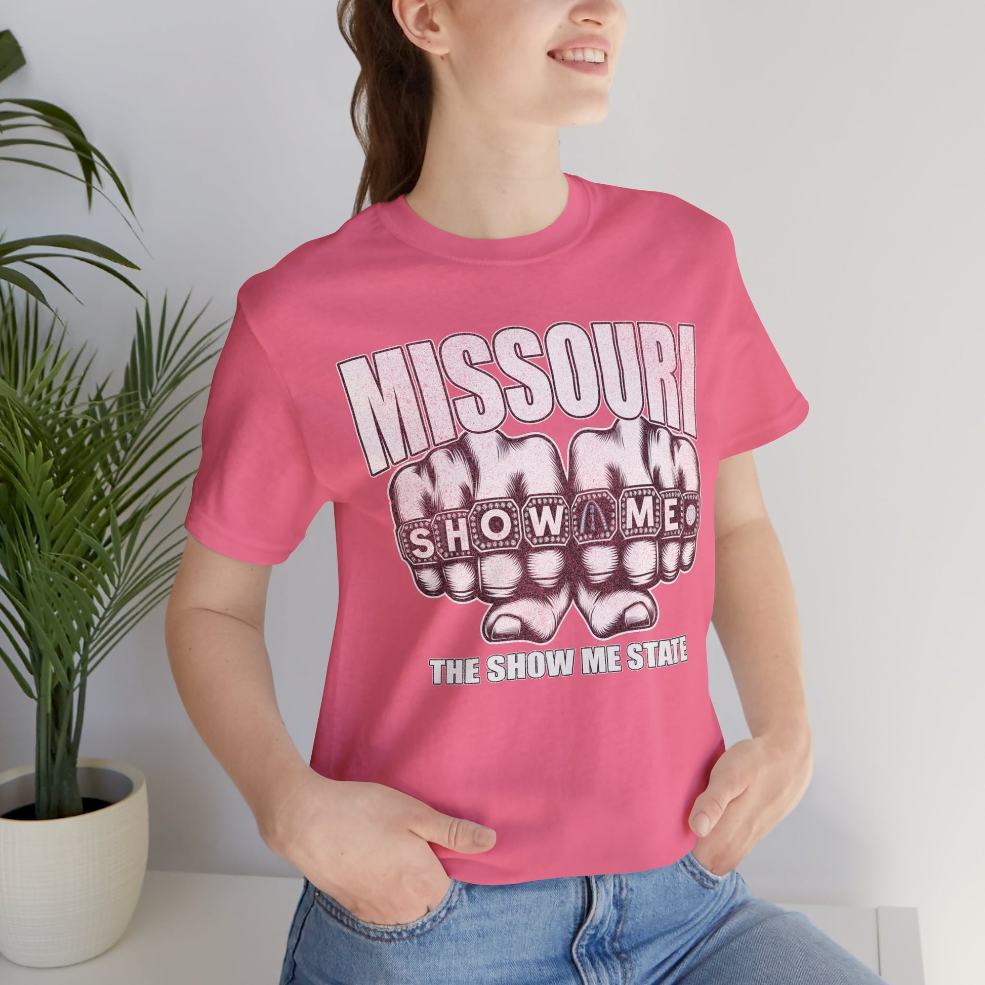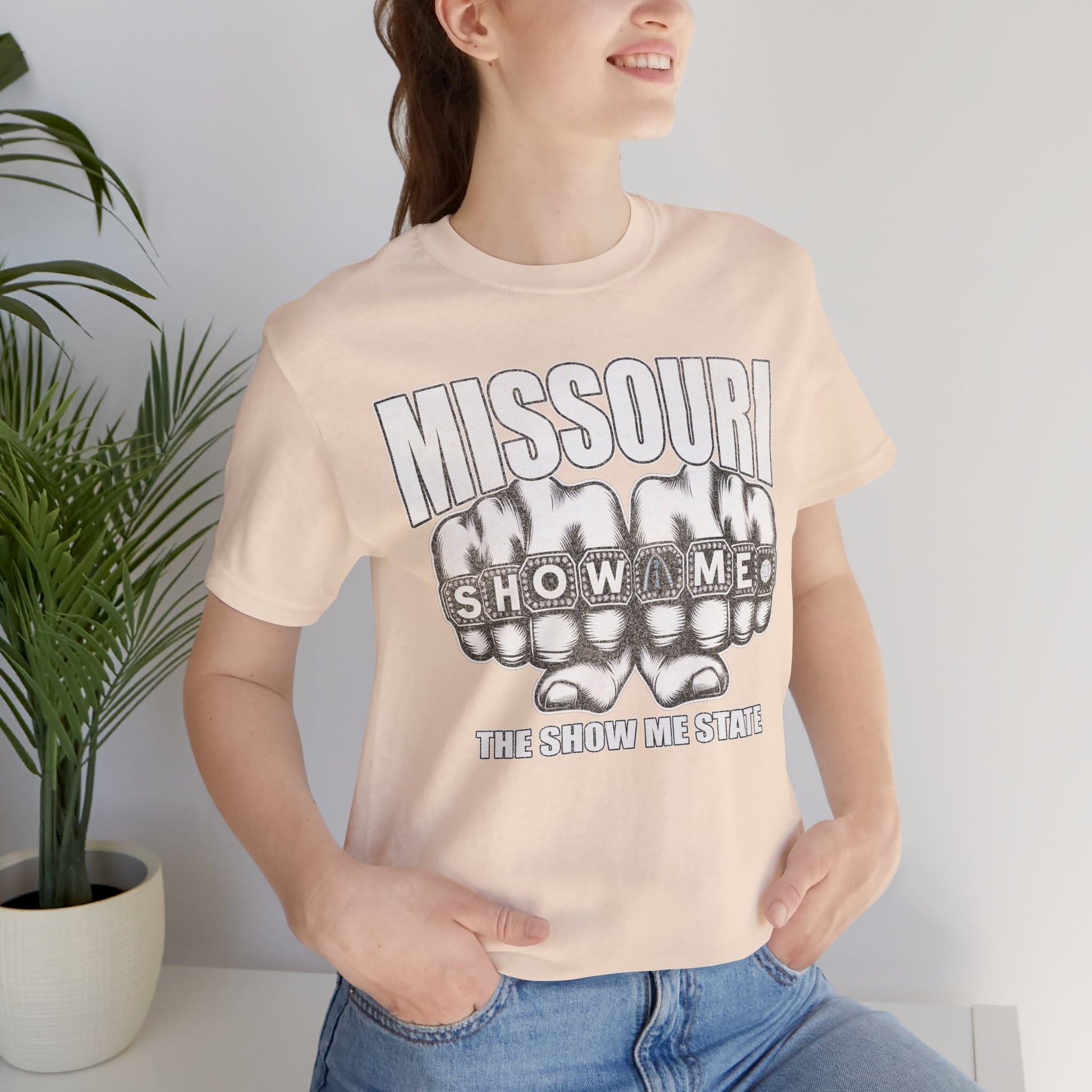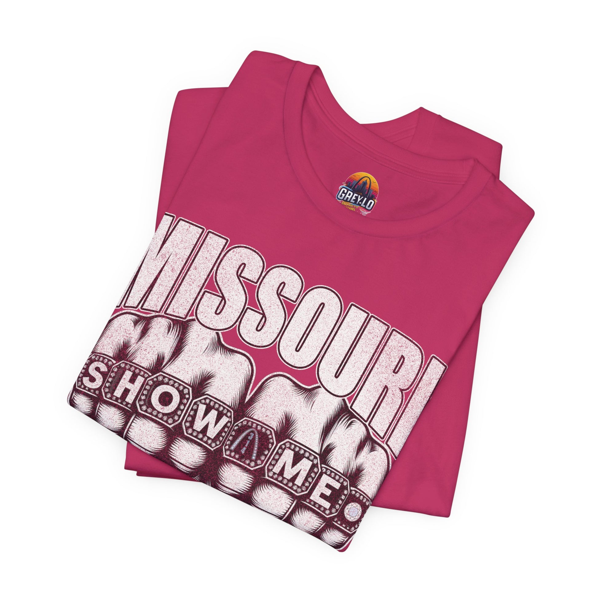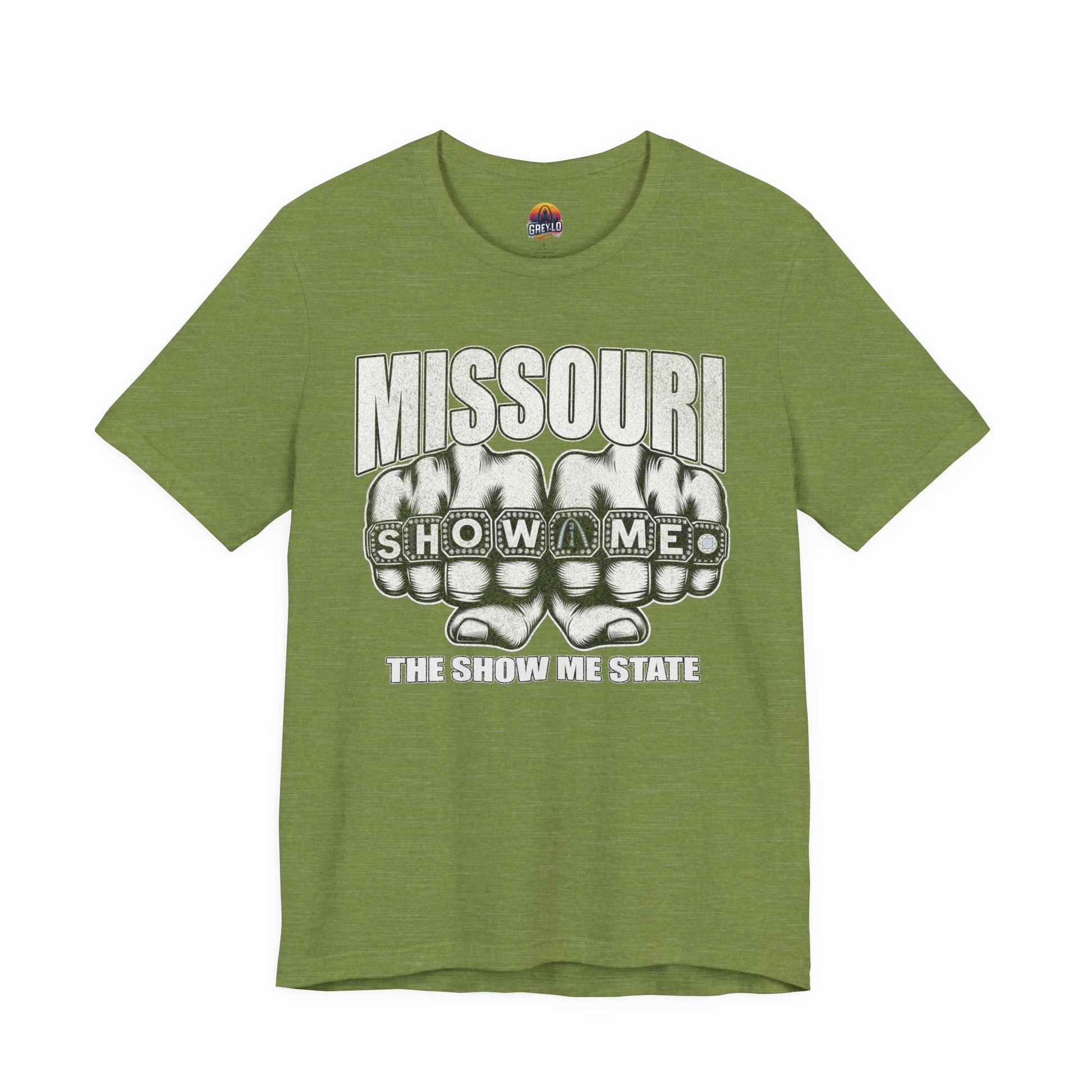 This Missouri The Show Me State Tee on a Bella Canvas 3001 offers a casual and comfortable style, perfect for everyday wear or as a souvenir for travelers visiting the state. The unisex fit and lightweight fabric make it suitable for both men and women, while the vibrant design adds a touch of personality to any outfit. Ideal for those interested in state pride, travel enthusiasts, and anyone looking for a versatile and stylish tee. Great for holidays, vacations, and everyday casual wear.