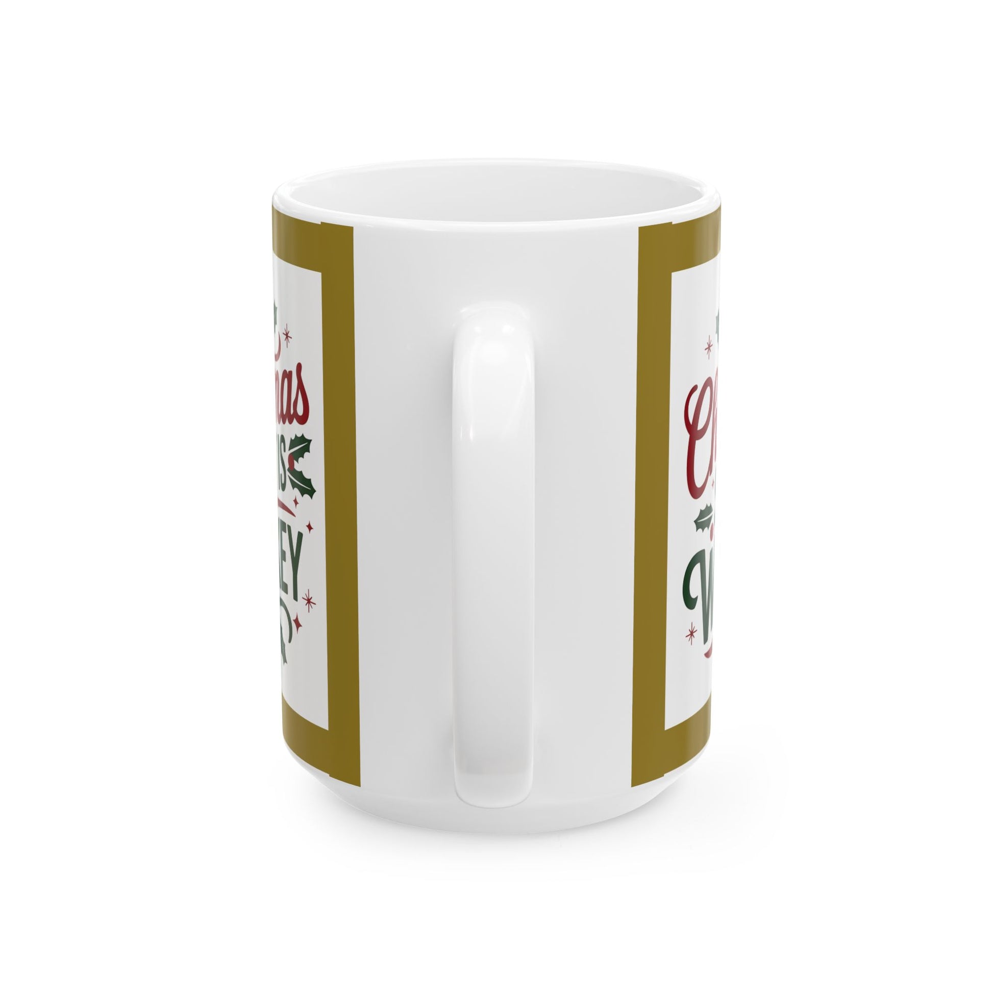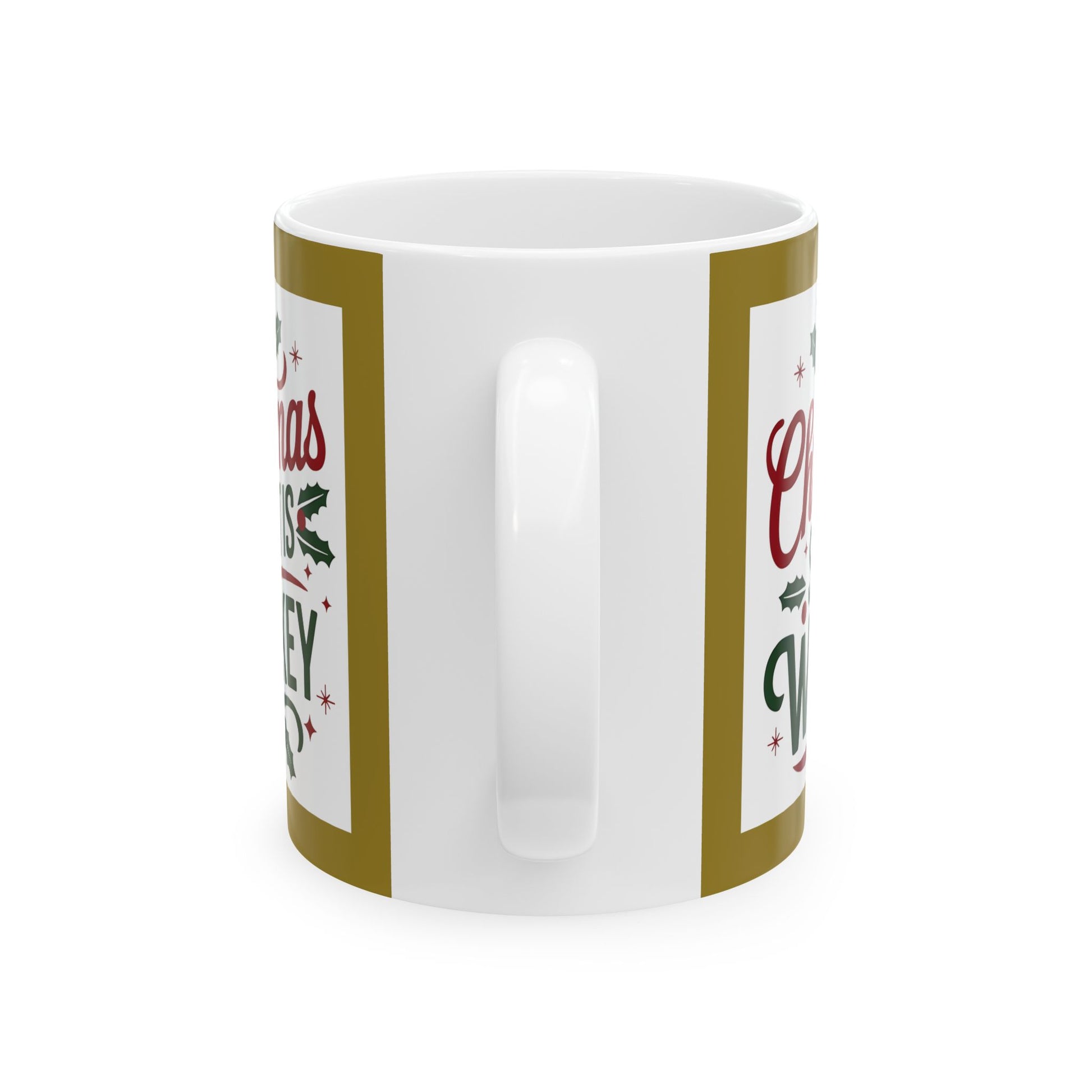 Express your Christmas spirit with a touch of whiskey with this ceramic mug. Perfect for cozy holiday mornings or as a gift for whiskey lovers.