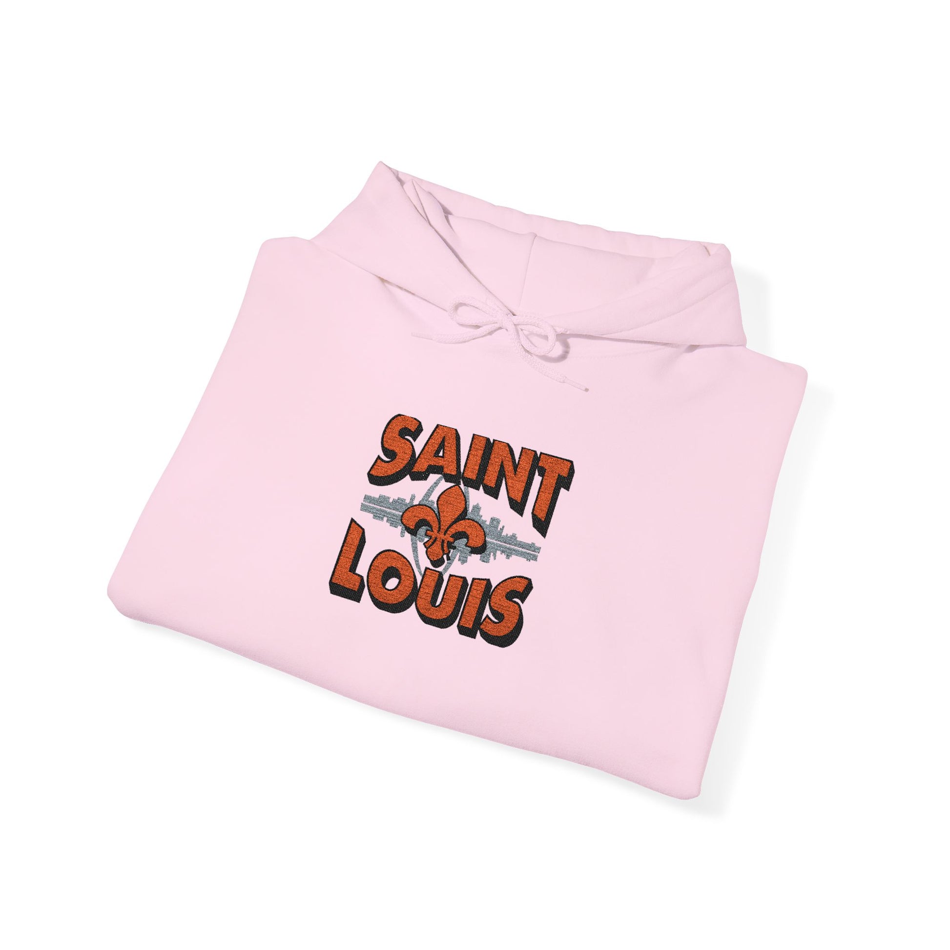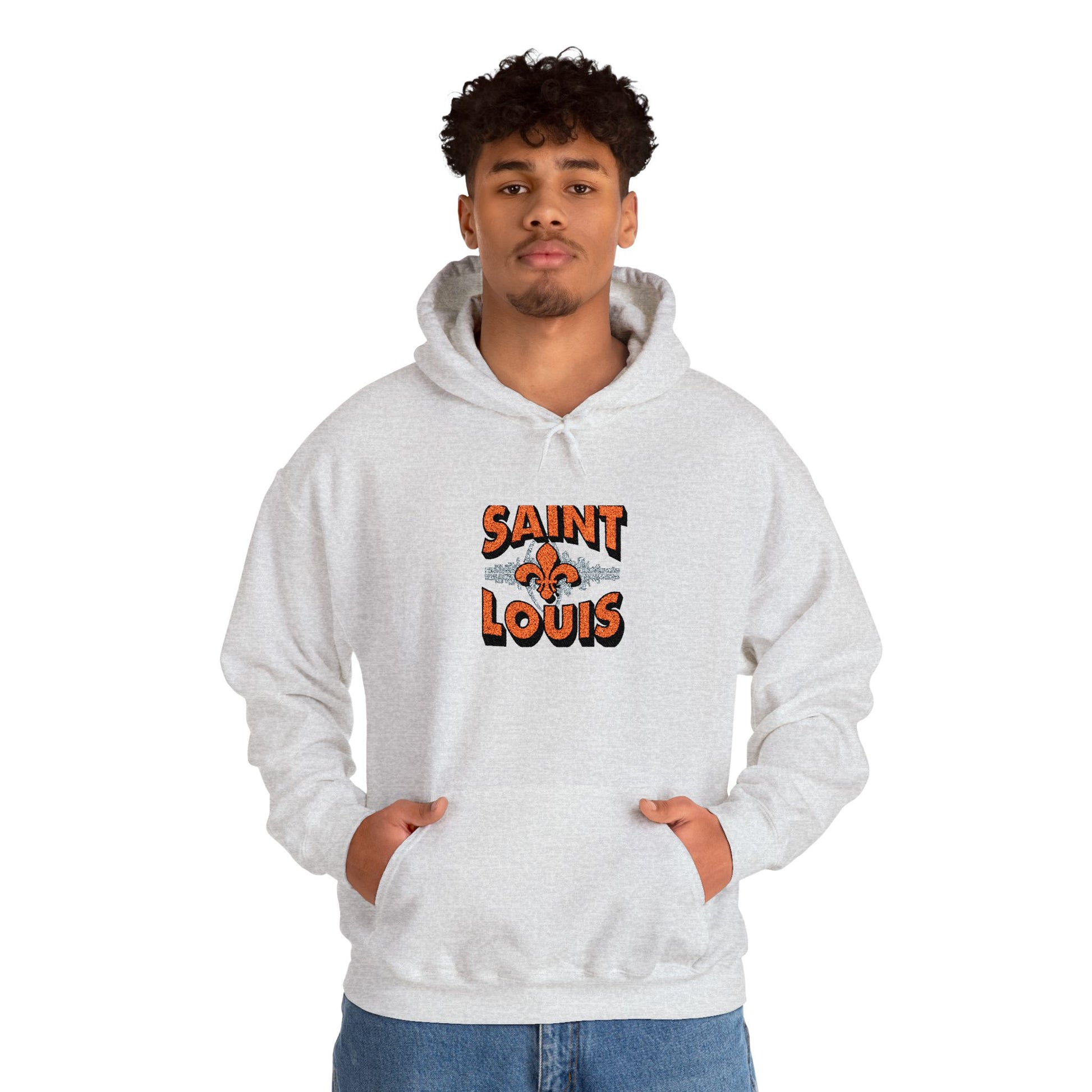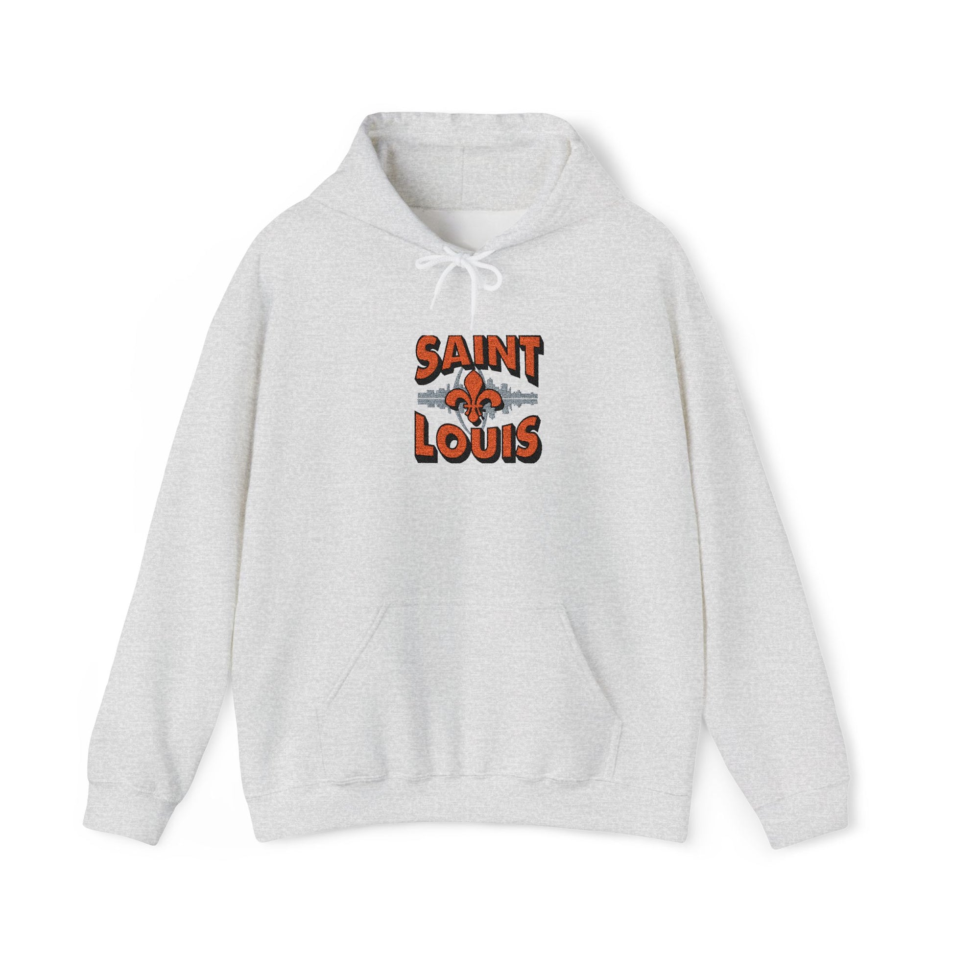 This embroidered hoodie carries a quiet hometown pride — the Saint Louis skyline stitched with careful detail across soft, midweight fabric. Slip it on for cool evening walks along the river or for weekend coffee runs; the kangaroo pouch keeps hands warm while the double-lined hood tucks in the cold. The embroidered skyline sits clean and textured on the chest, aging gracefully with every wash. It feels familiar right away: roomy enough for layering, but still tailored enough to wear out to local shows or casual meetups. For anyone who remembers the arch at sunset or wants a subtle, wearable nod to Saint Louis, this hoodie blends comfort and craft in one everyday piece.