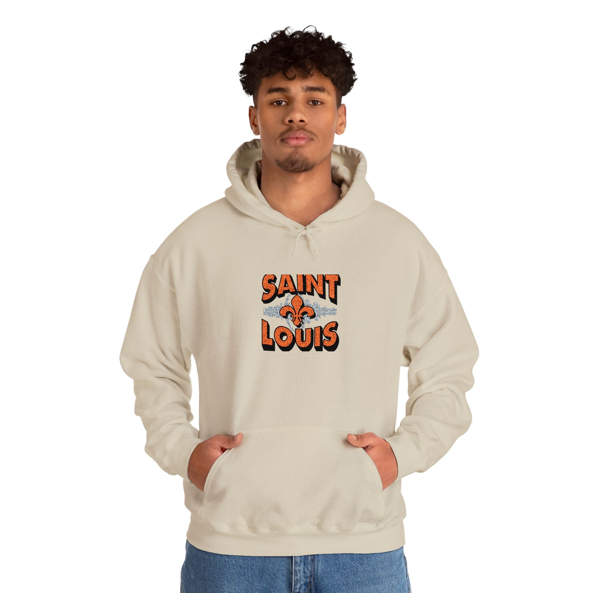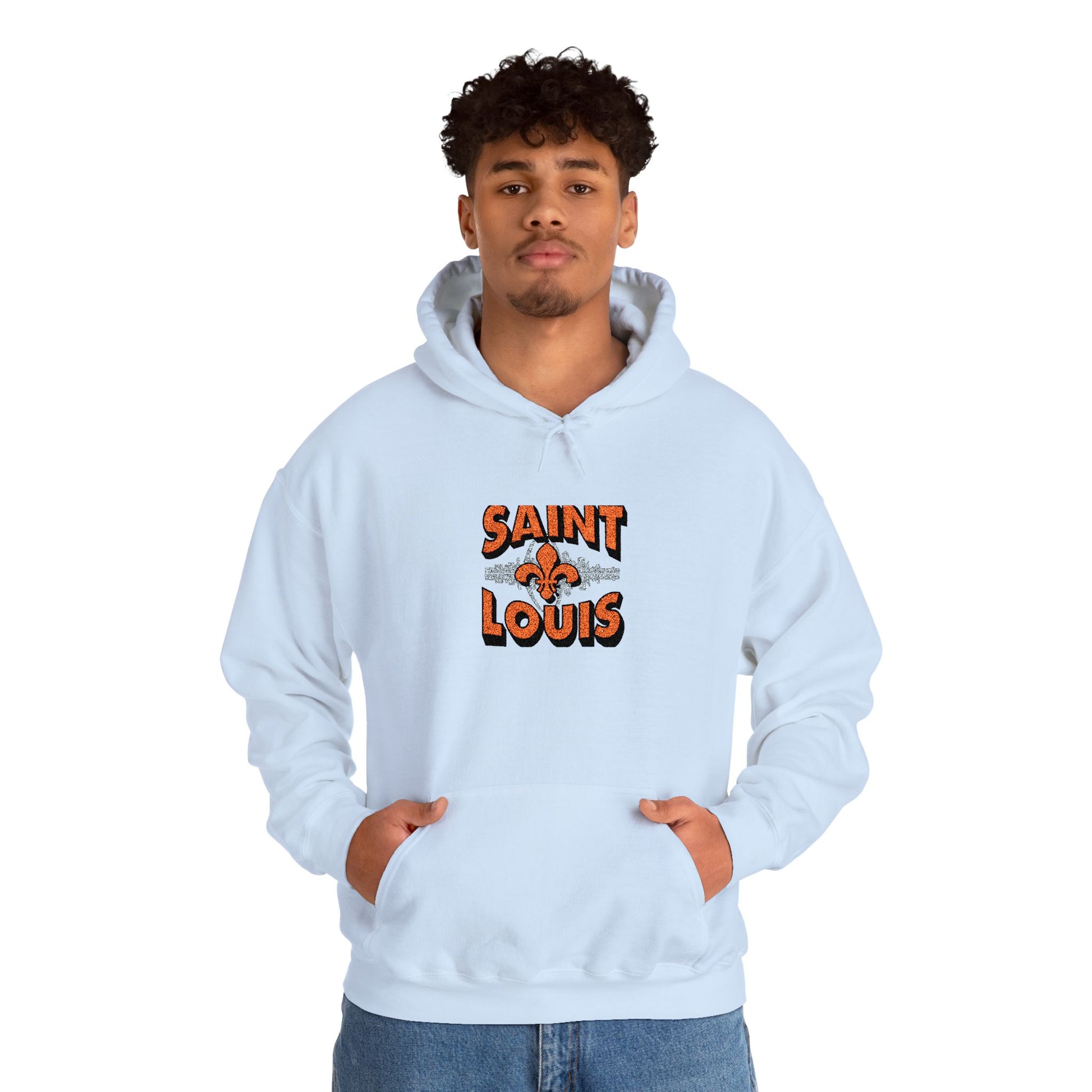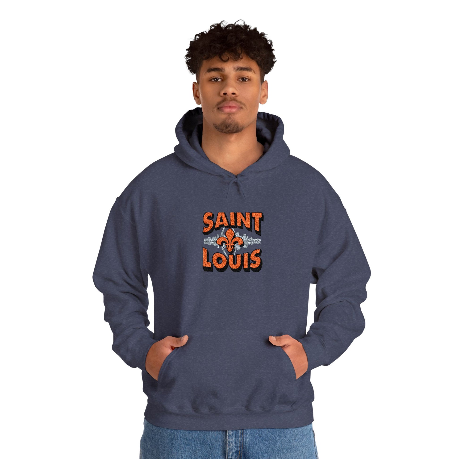 This embroidered hoodie carries a quiet hometown pride — the Saint Louis skyline stitched with careful detail across soft, midweight fabric. Slip it on for cool evening walks along the river or for weekend coffee runs; the kangaroo pouch keeps hands warm while the double-lined hood tucks in the cold. The embroidered skyline sits clean and textured on the chest, aging gracefully with every wash. It feels familiar right away: roomy enough for layering, but still tailored enough to wear out to local shows or casual meetups. For anyone who remembers the arch at sunset or wants a subtle, wearable nod to Saint Louis, this hoodie blends comfort and craft in one everyday piece.