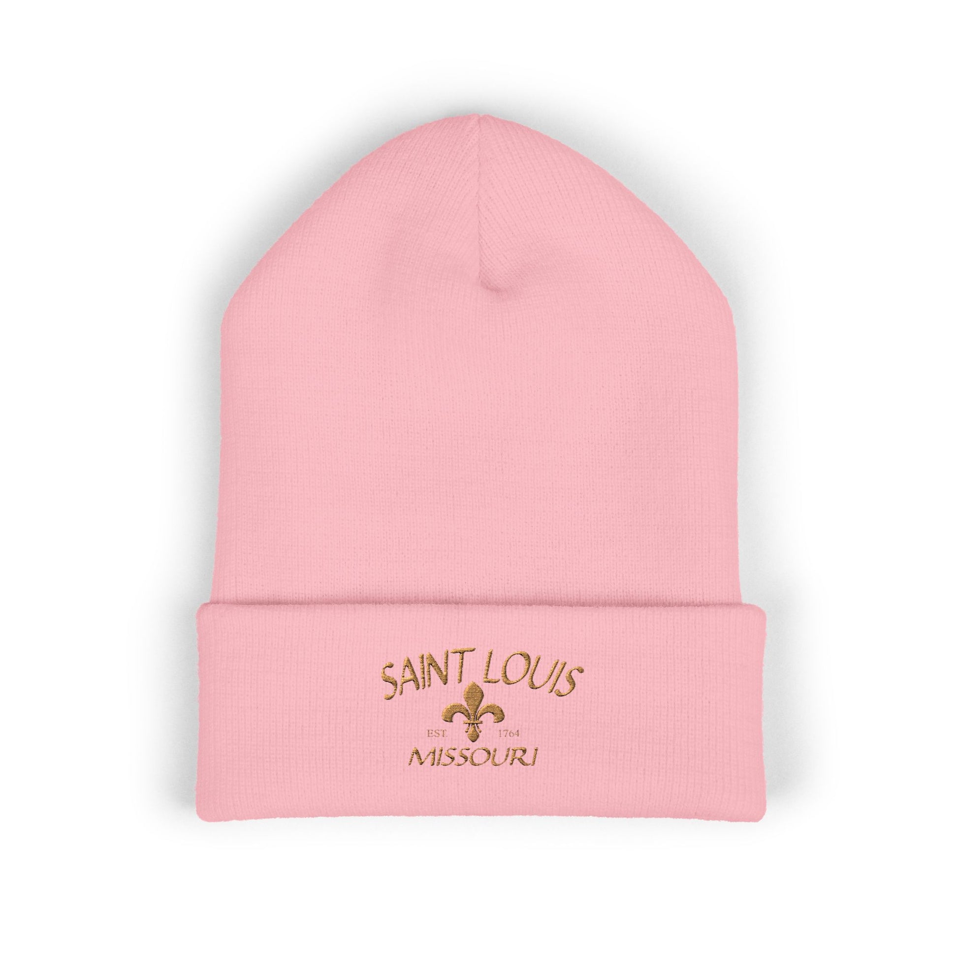 This embroidered cuffed beanie carries a quiet hometown pride — Saint Louis stitched in clean lines across a deep, cozy cuff. It slips on with a soft, stretchy hug and settles into the rhythm of brisk walks along the river, late-night coffee runs, and weekend market trips. The knit holds its shape, the embroidery adds a tactile, crafted detail, and the muted silhouette layers easily under a hood or over a wool coat. Built for adults who want a subtle nod to place without shouting, it keeps ears warm while letting the embroidered name do the talking at winter festivals, game nights, or just commuting through cool, damp mornings.