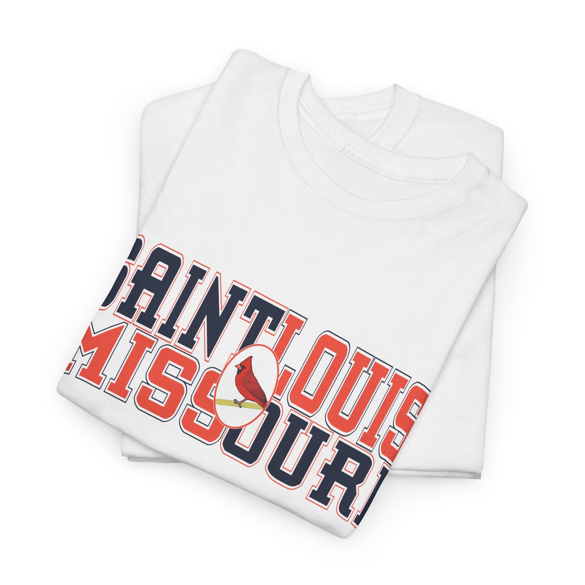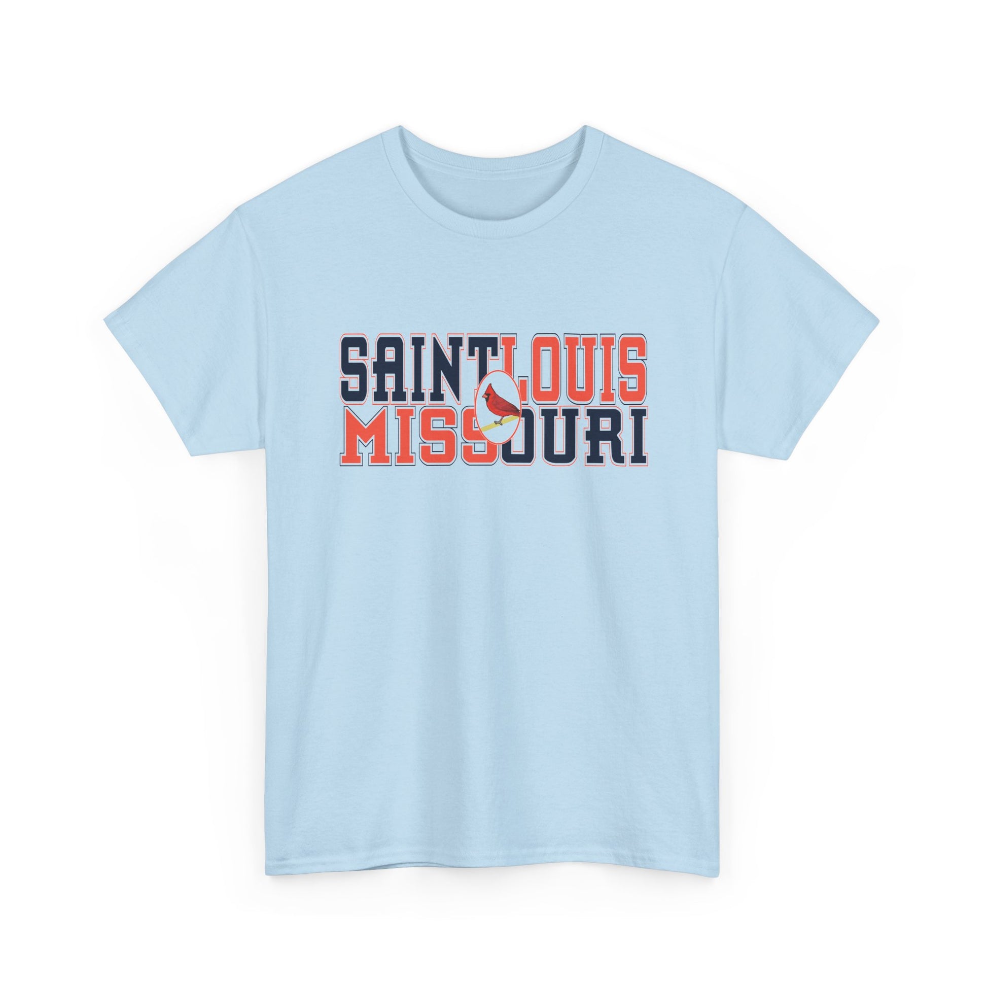 The Saint Louis Tee in Red & Blue Lettering is a classic, comfortable unisex tee perfect for adding a patriotic touch to any outfit. Ideal for those looking to show their love for Saint Louis or celebrate American holidays and events.