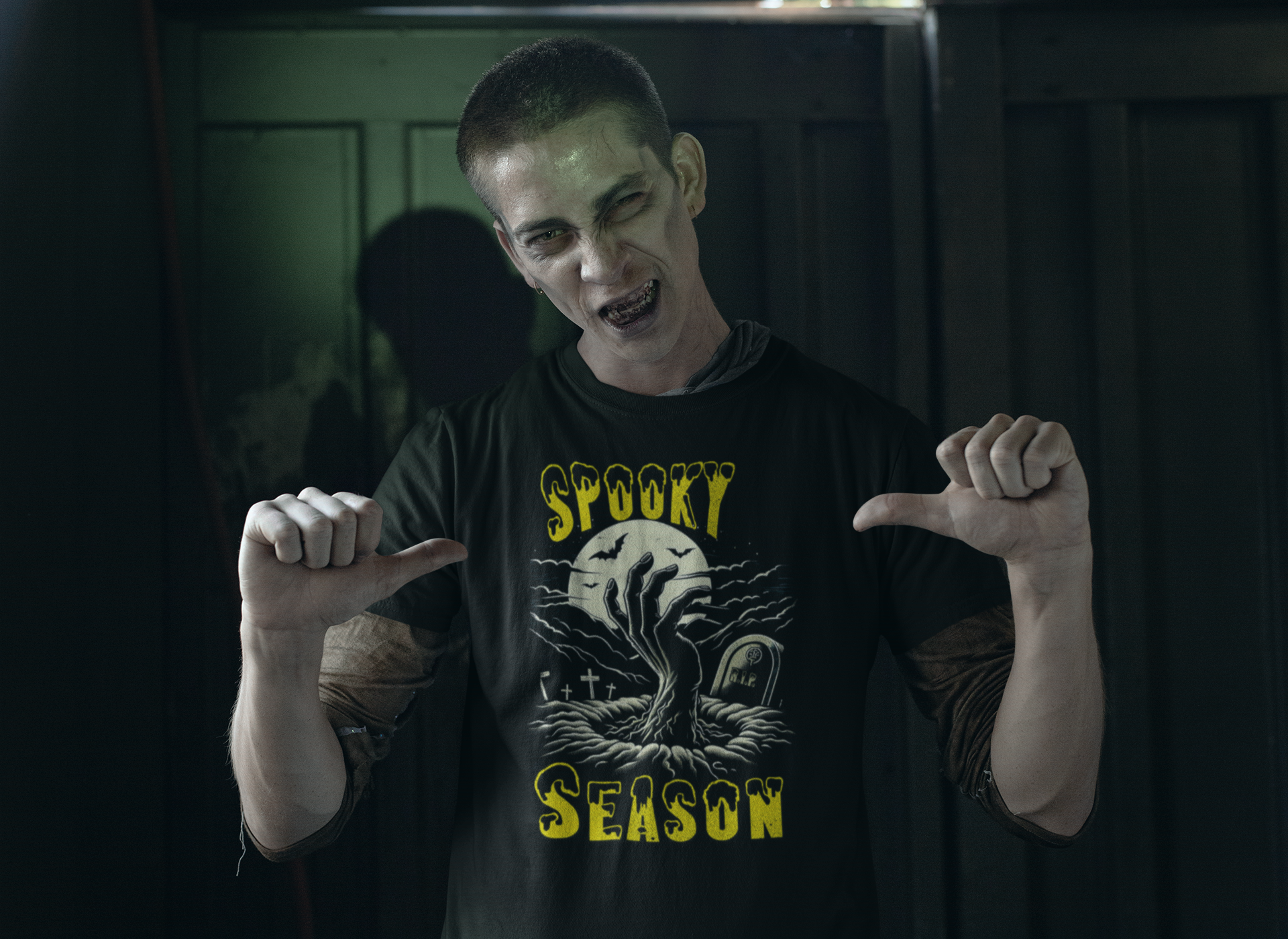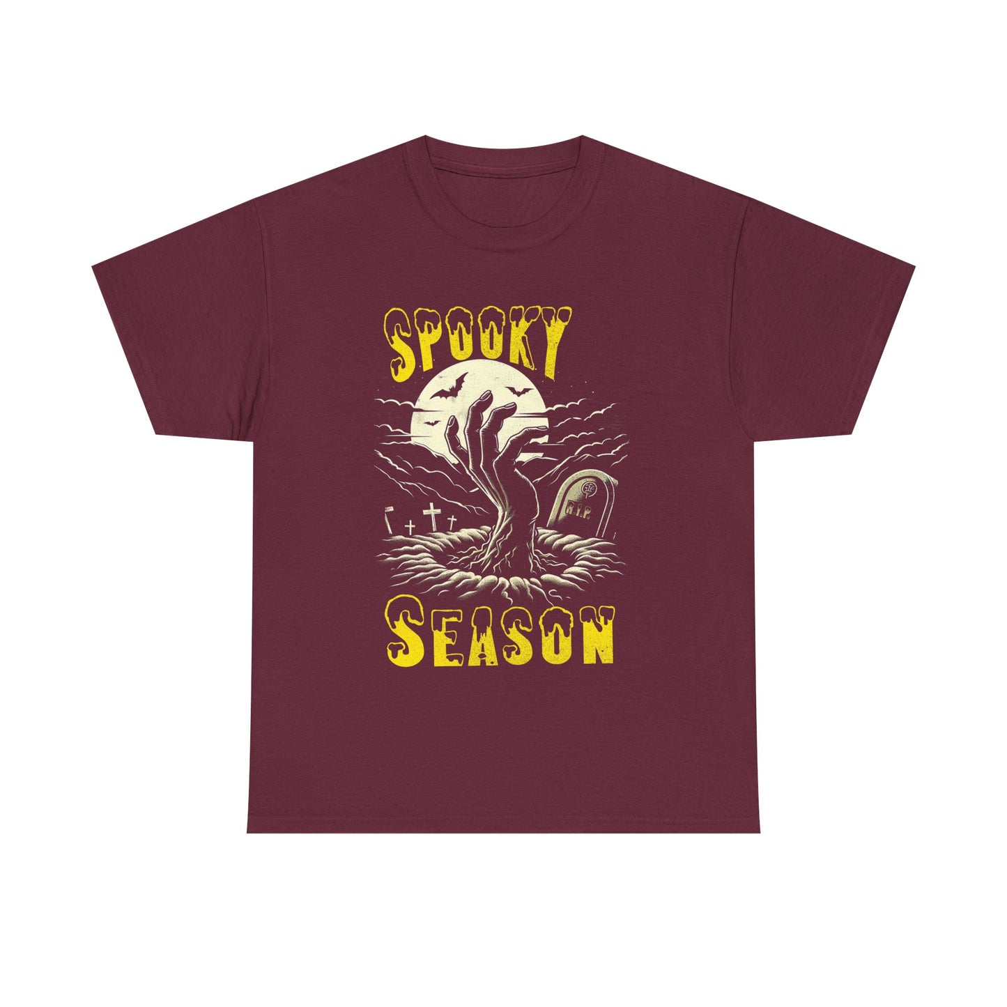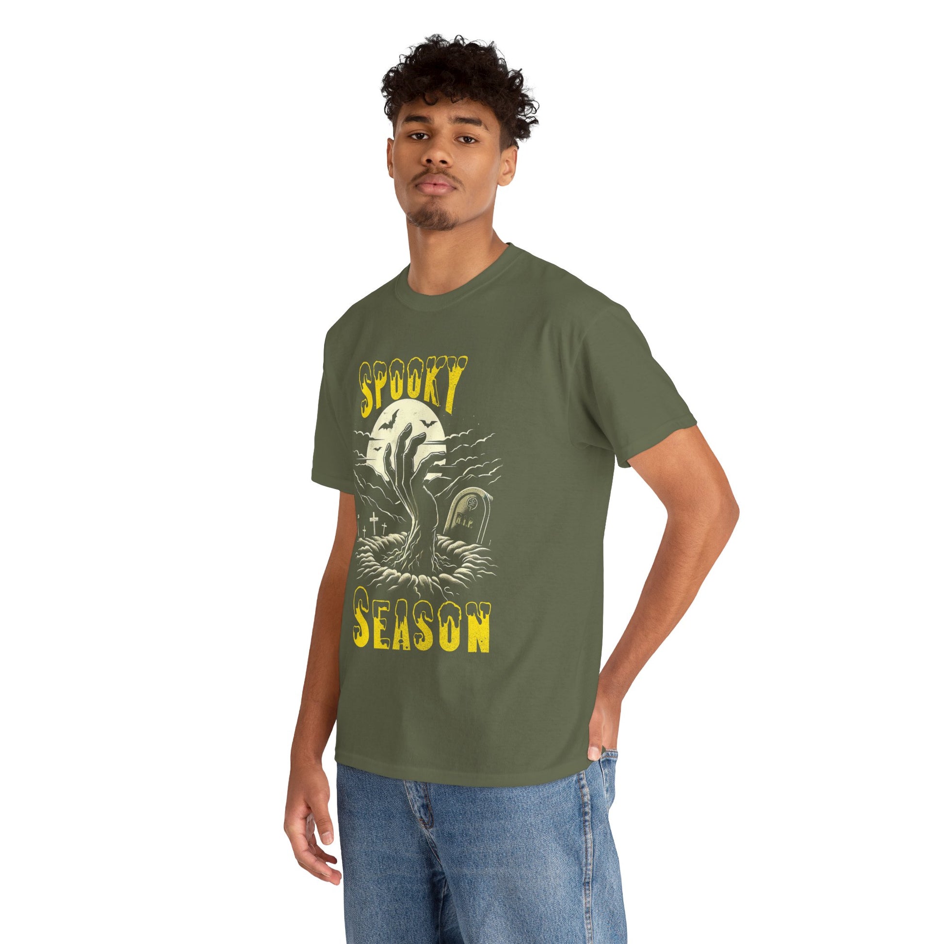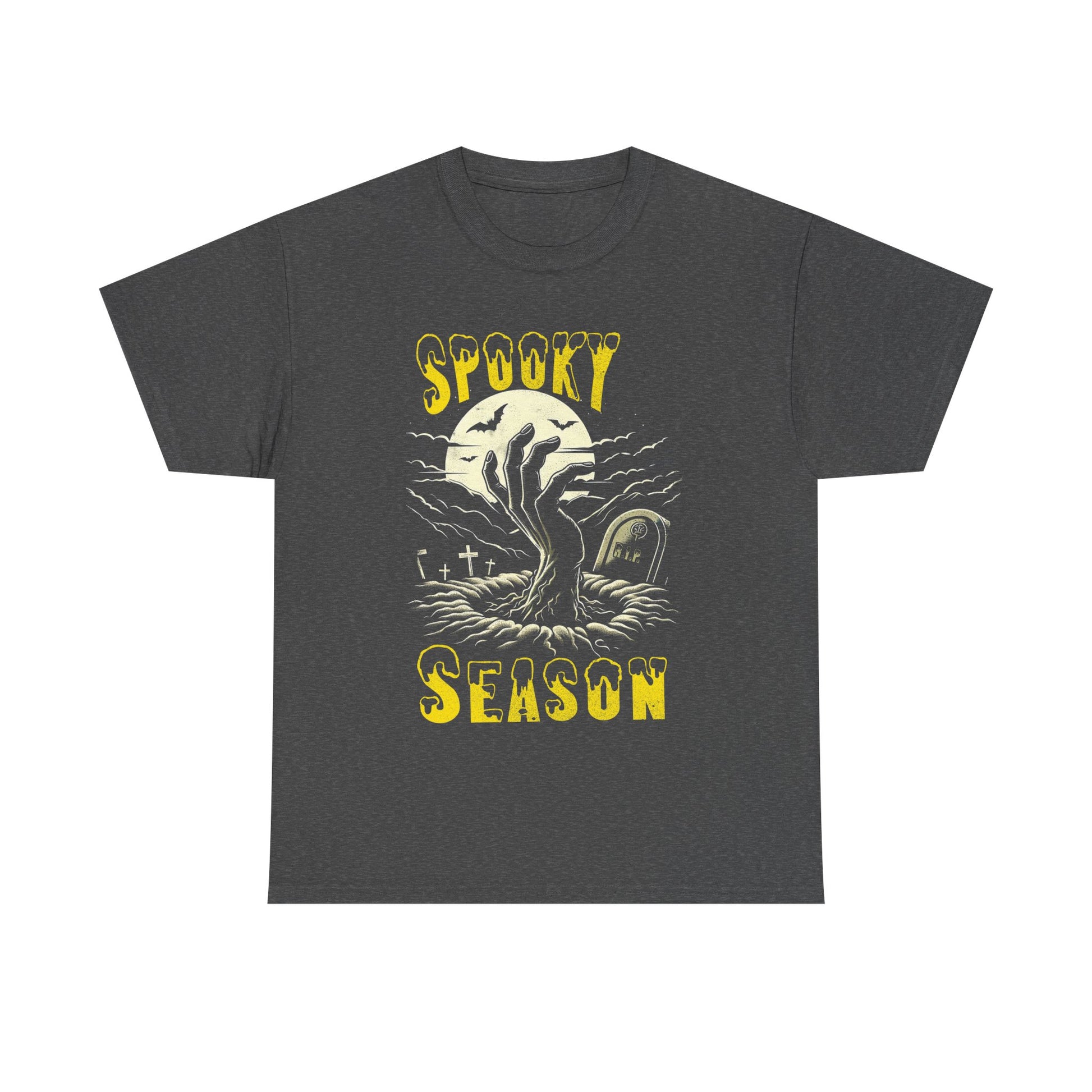 Get in the Halloween spirit with this Spooky Season Halloween Tee! Made from a strong and smooth fabric, this tee features a ribbed knit collar and is designed without side seams for a more attractive look. Perfect for adults looking to embrace the Halloween season with a comfy and timeless tee.