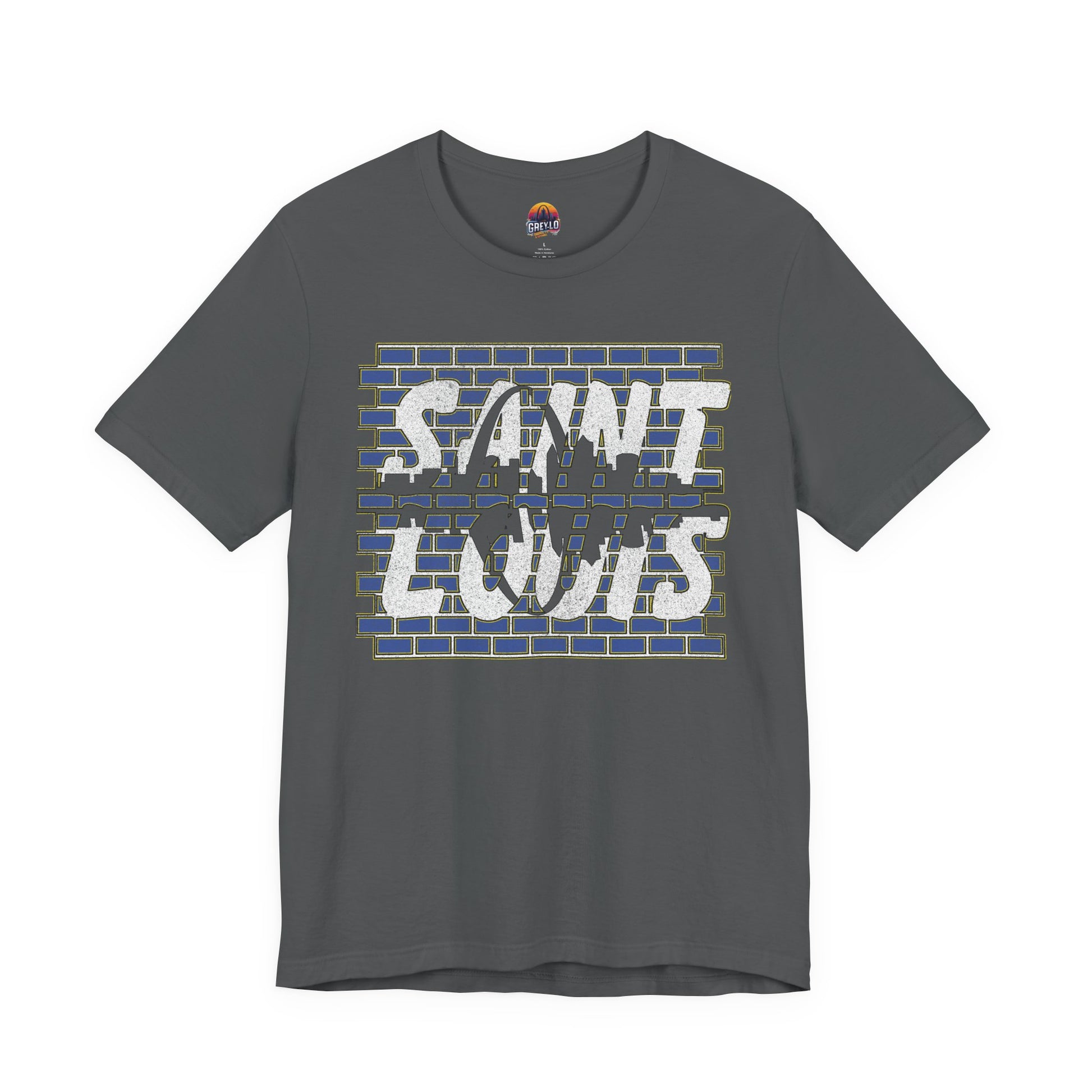 This St Louis themed T-Shirt features a text design with the St Louis skyline on a brick background. It gives off a casual and urban vibe, perfect for daily wear or as a souvenir for fans of St Louis. Ideal for adults looking for a comfortable and stylish tee to wear during vacations, casual outings, or special events in St Louis.