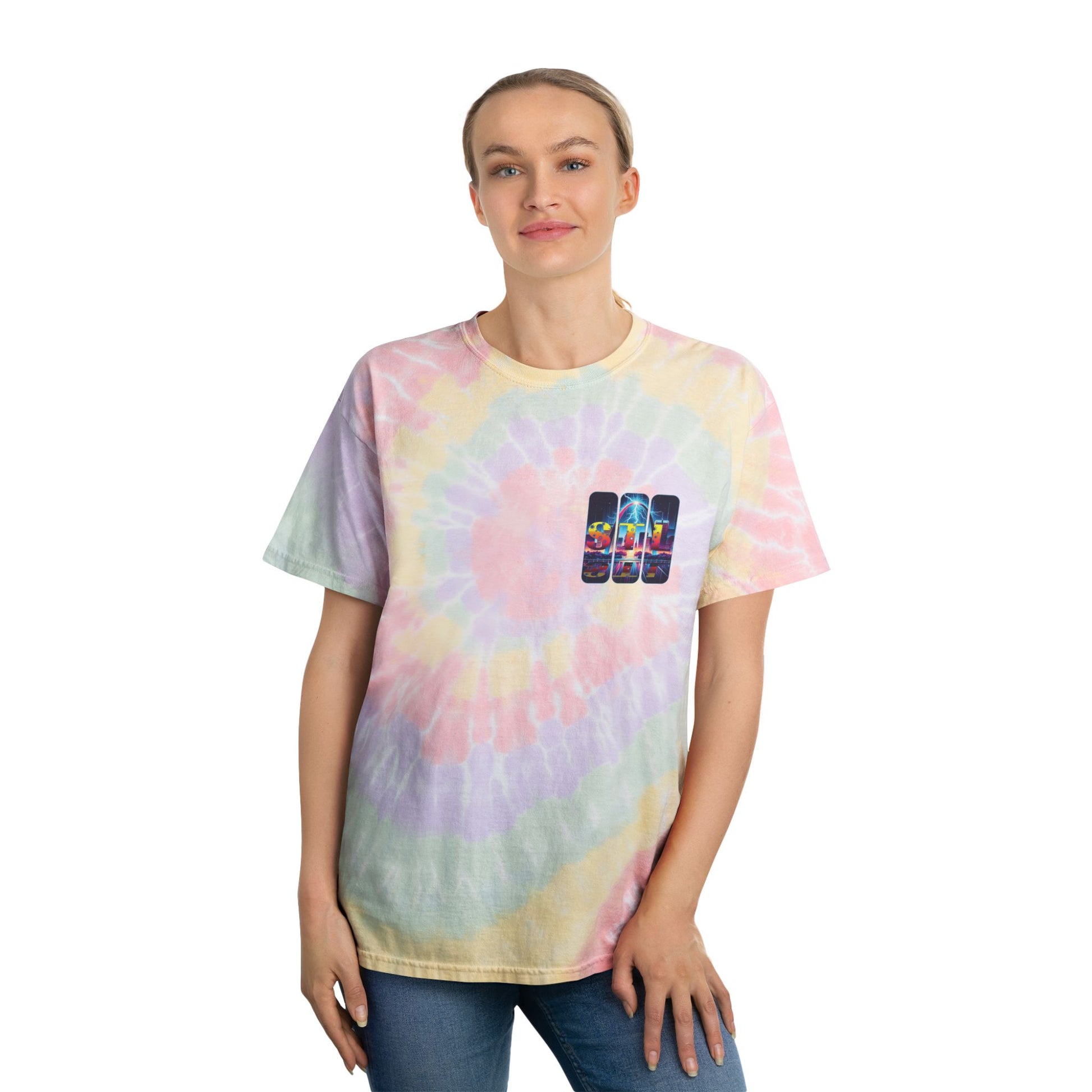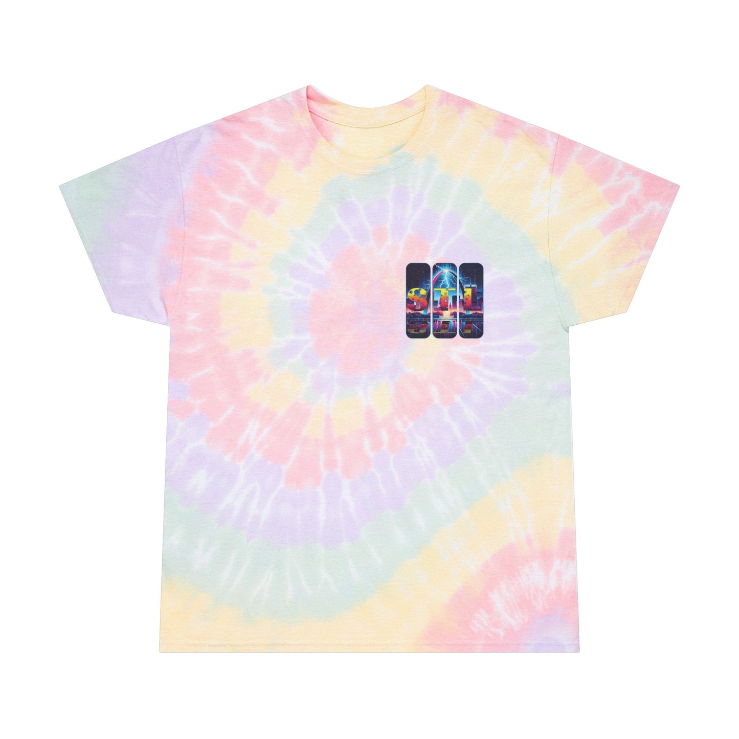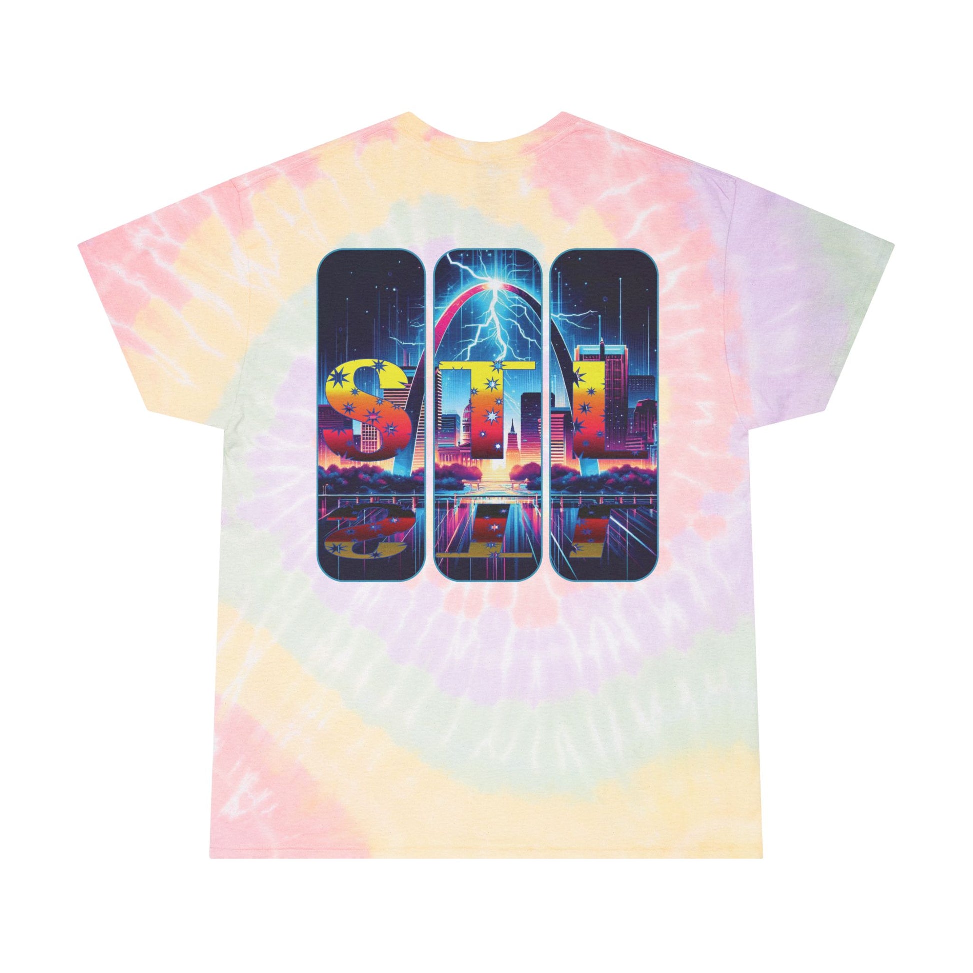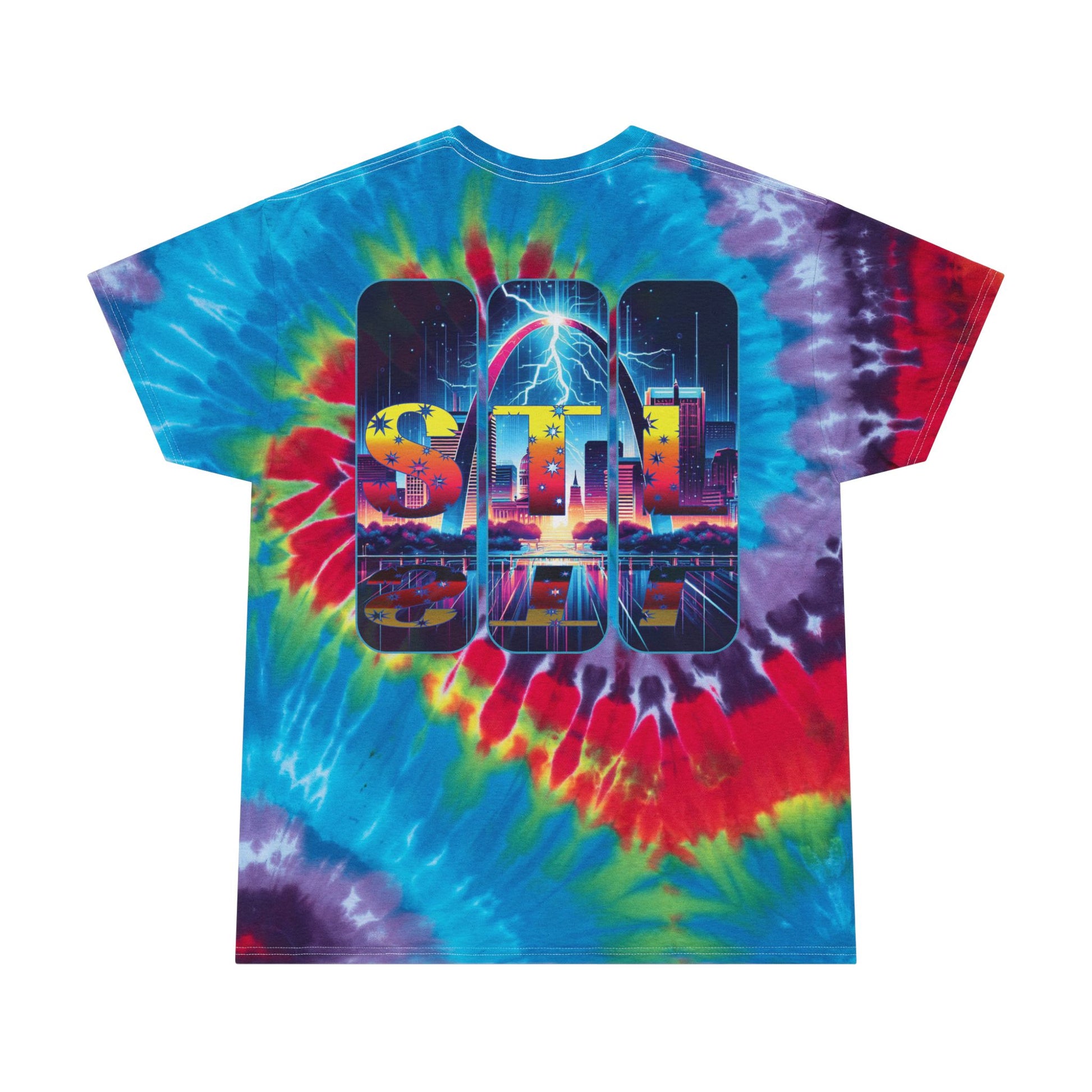 The STL Tie-Dye Graphic Tee is offered on a Spiral Tie-Dye Gildan 5000 shirt. It isa colorful and vibrant graphic tee of the St Louis skyline, perfect for those who love unique and eye-catching designs. This tee is perfect for casual wear, festivals, and fun outings with friends.