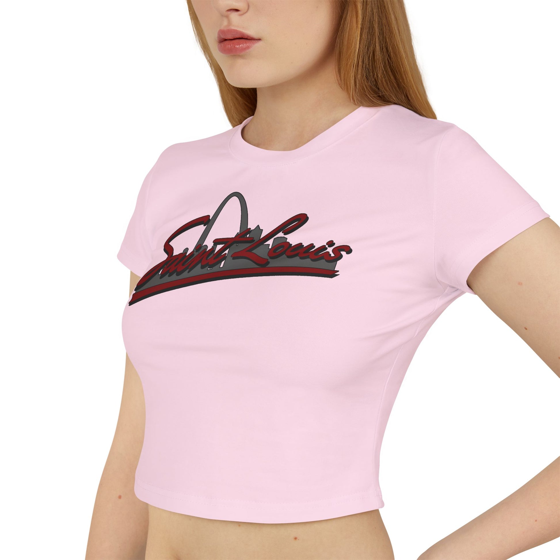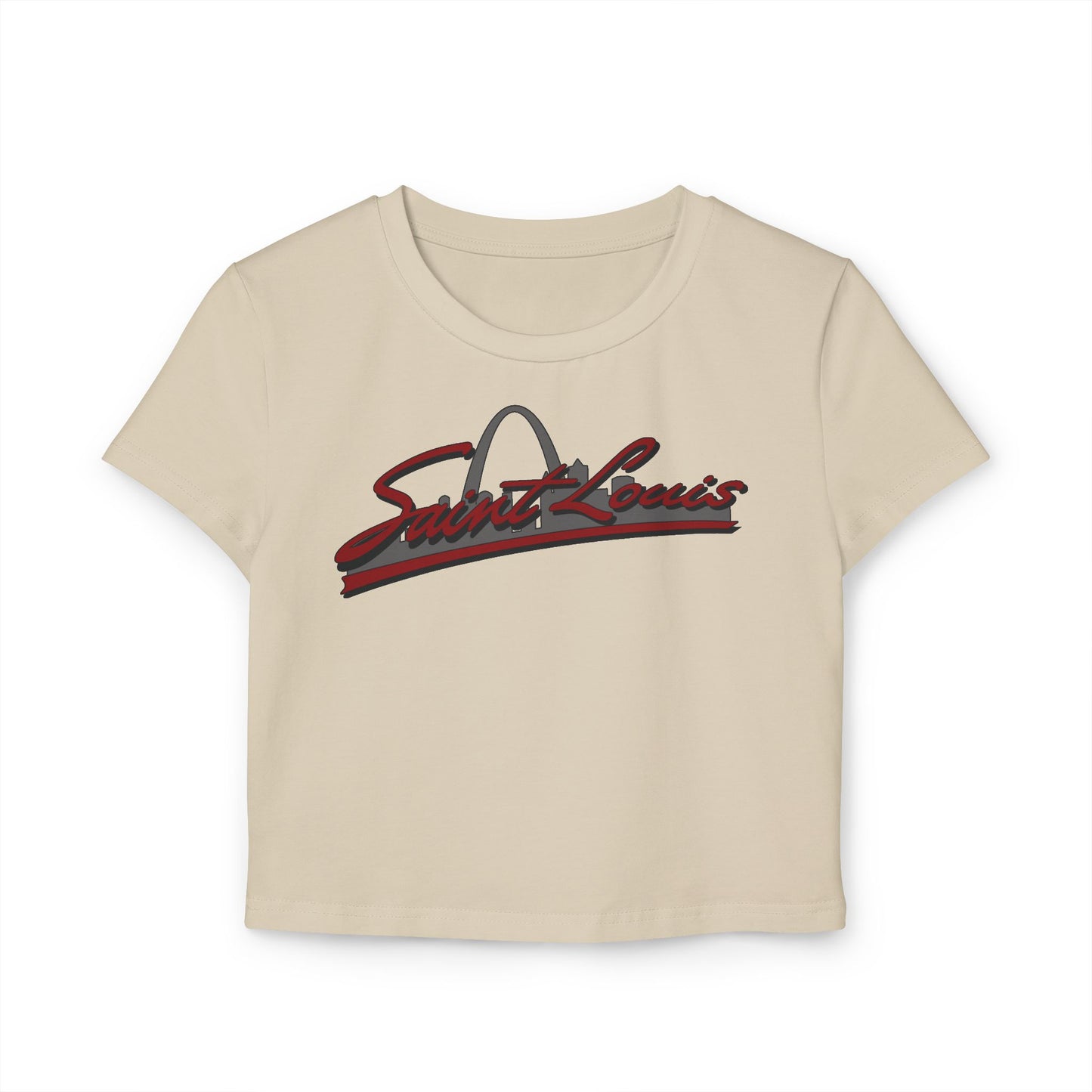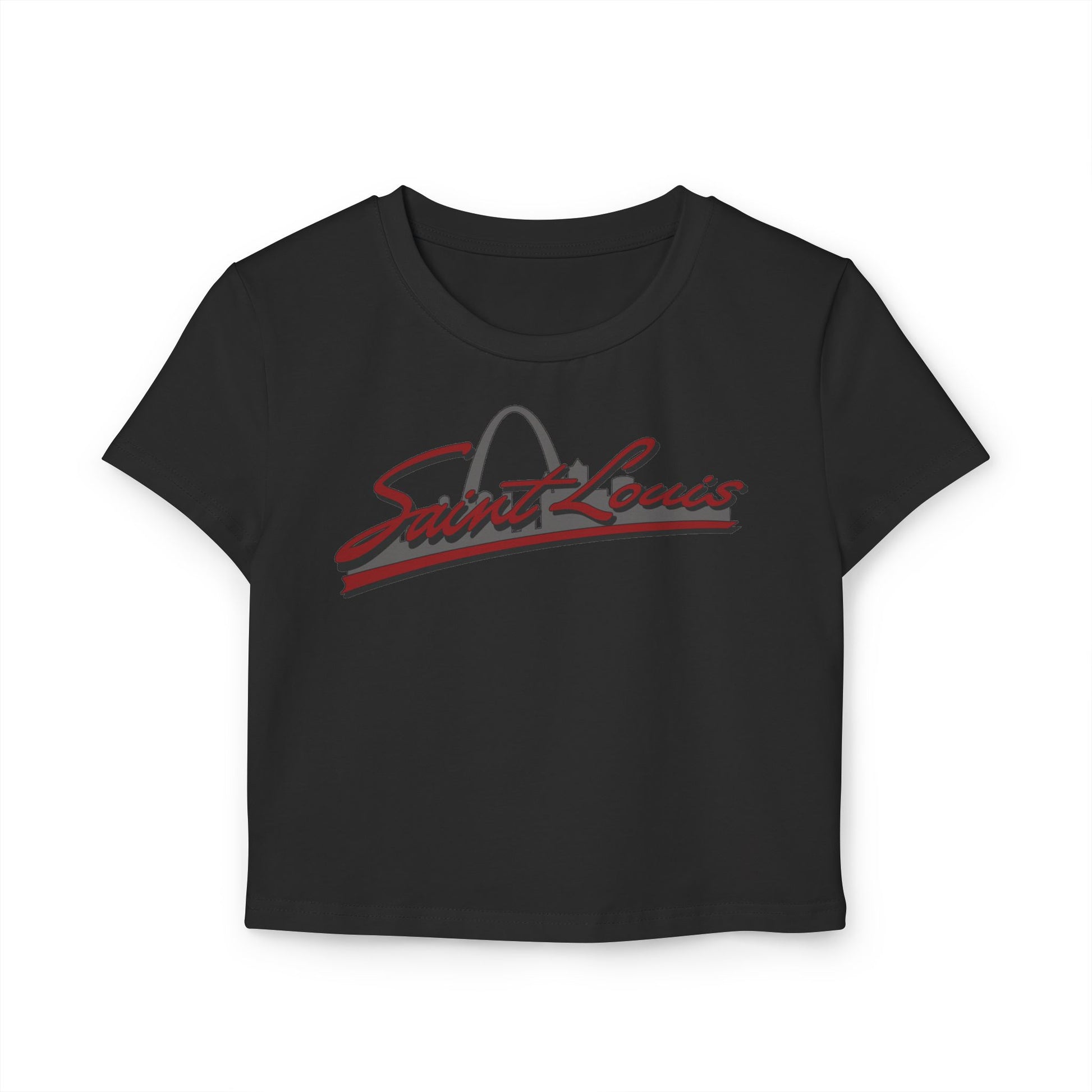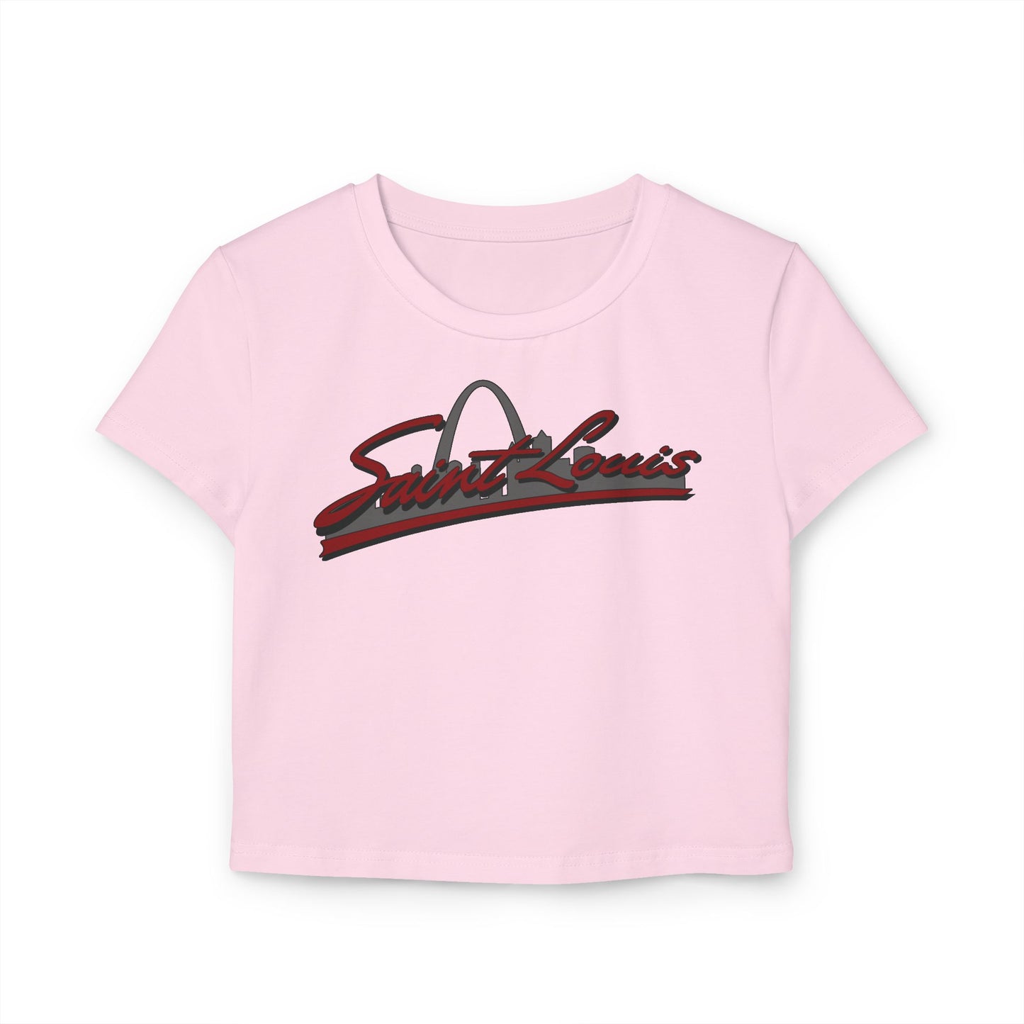Women's Saint Louis Graphic Baby Tee-Red Lettering