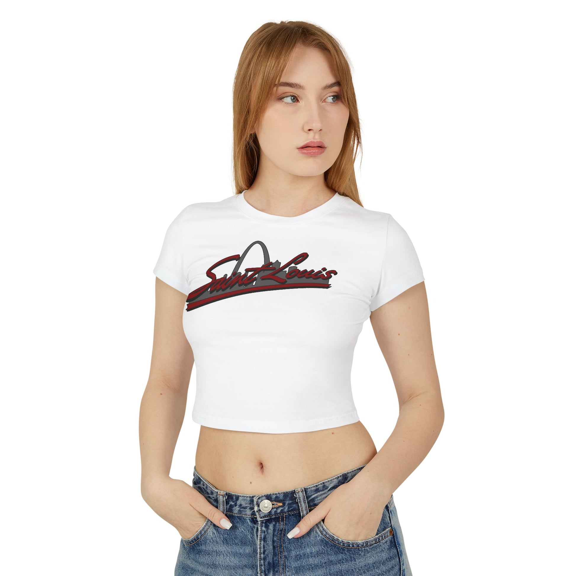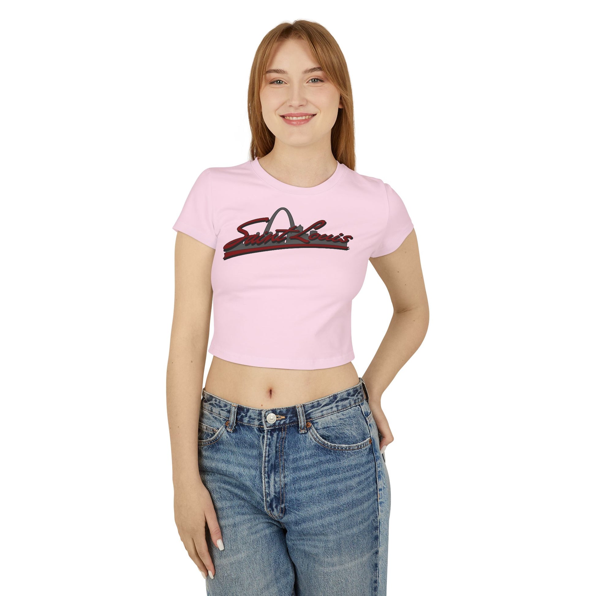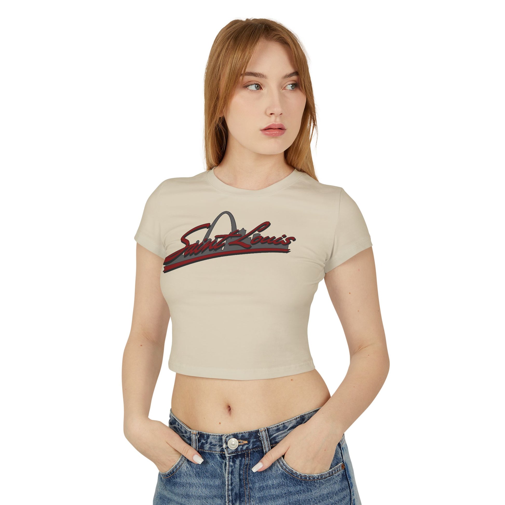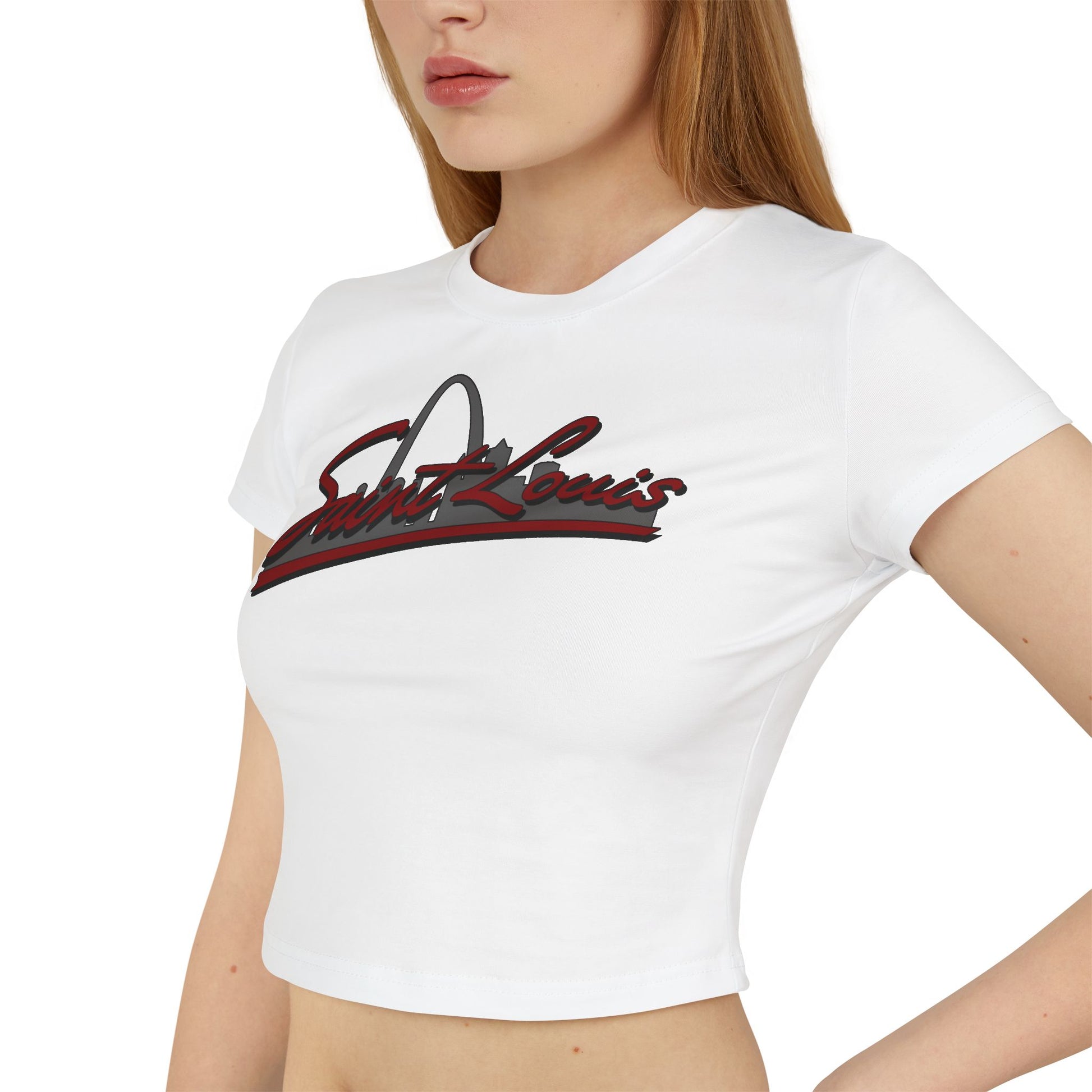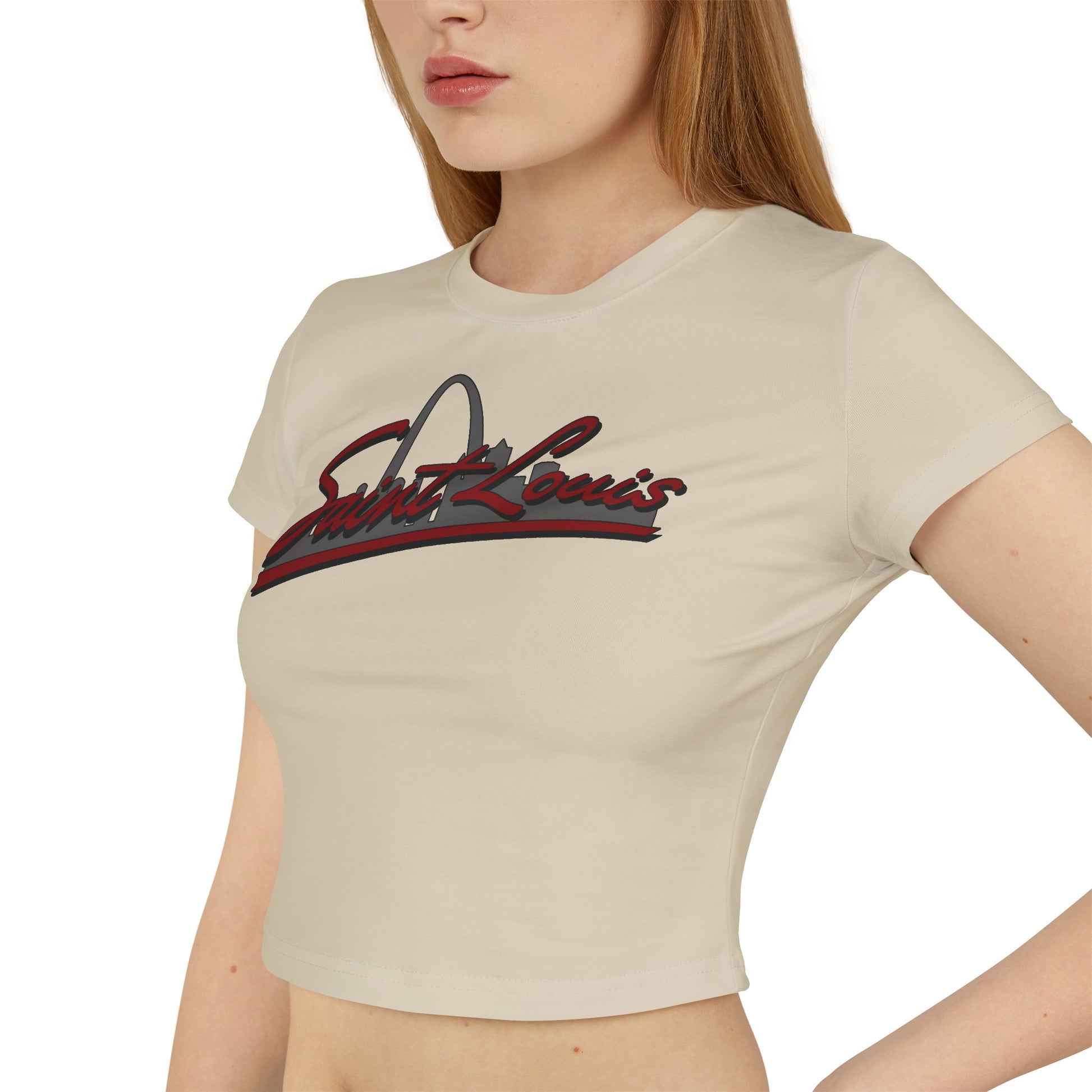 Women's Saint Louis Graphic Baby Tee-Red Lettering